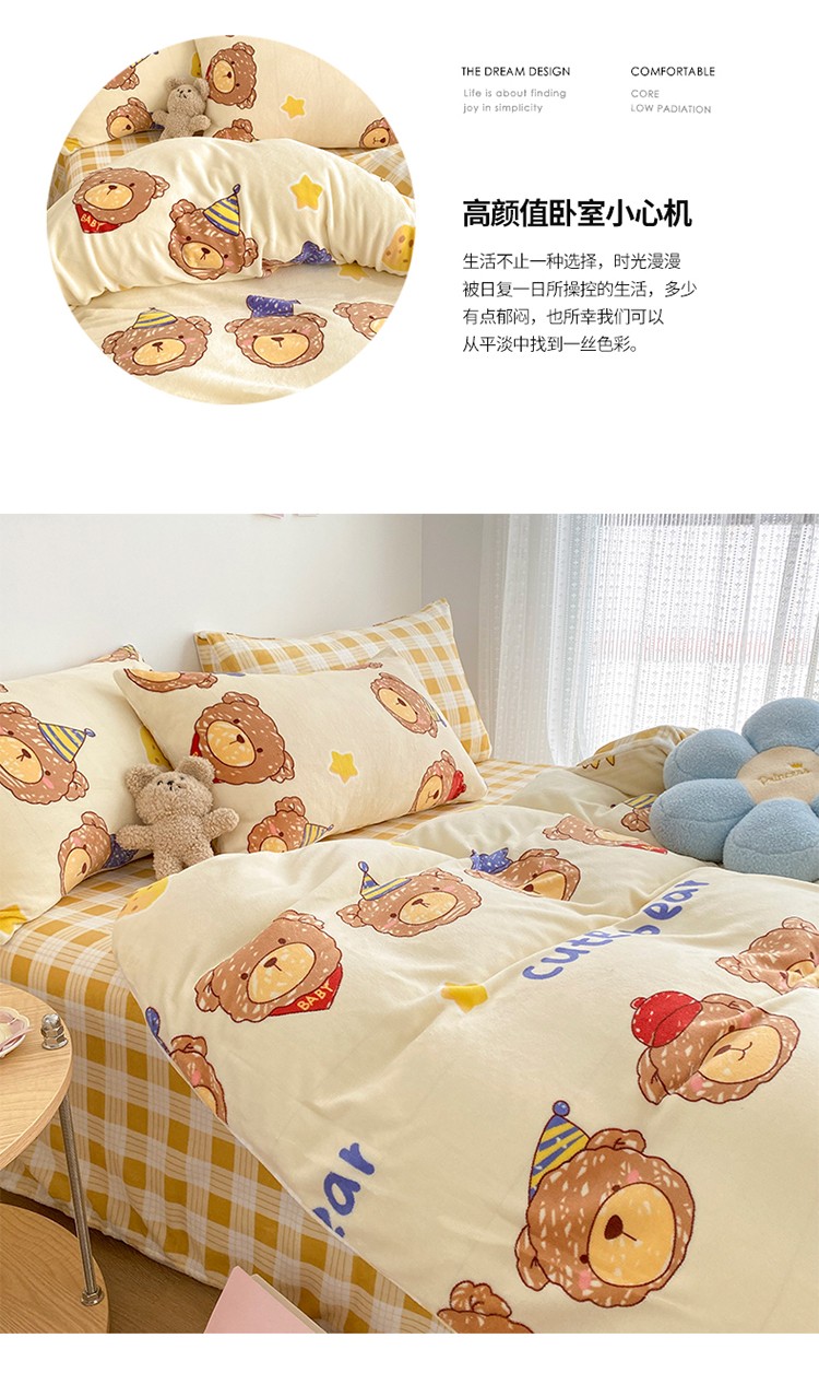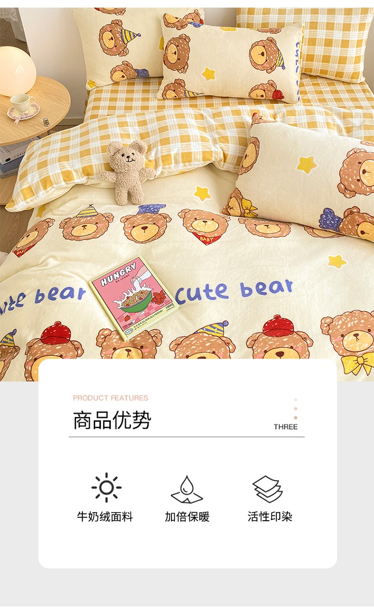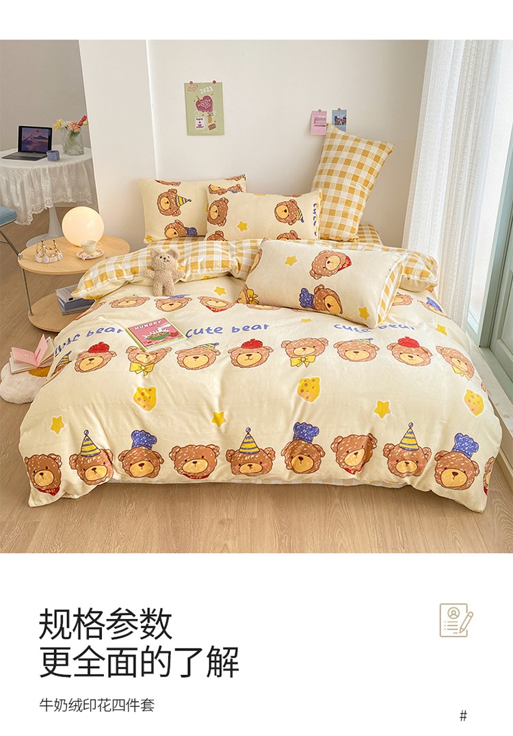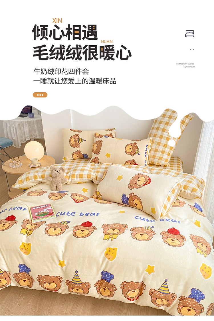 商品名称:雅居纺 2022新款印花牛奶绒四件套 奶酪熊
