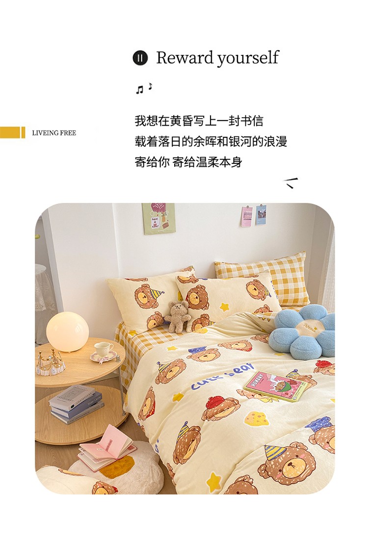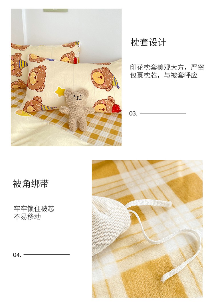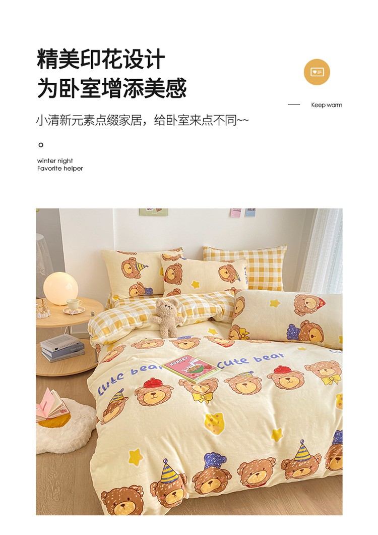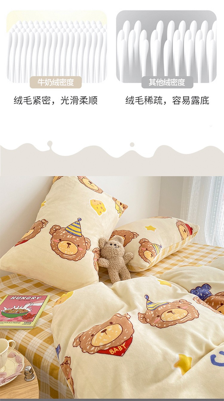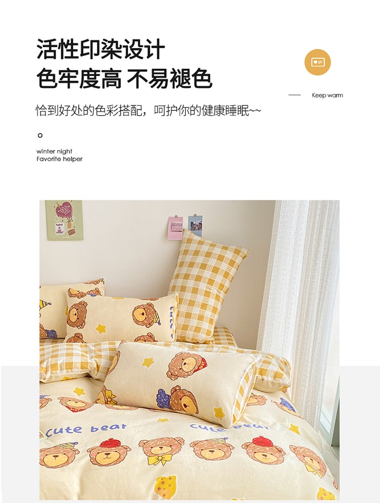 商品名称:雅居纺 2022新款印花牛奶绒四件套 奶酪熊