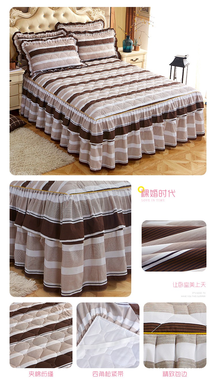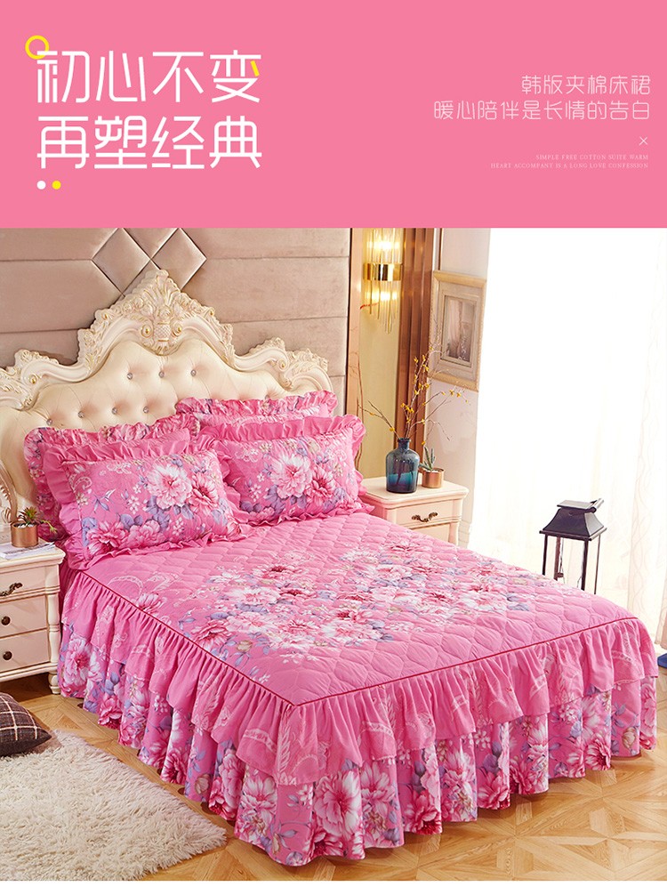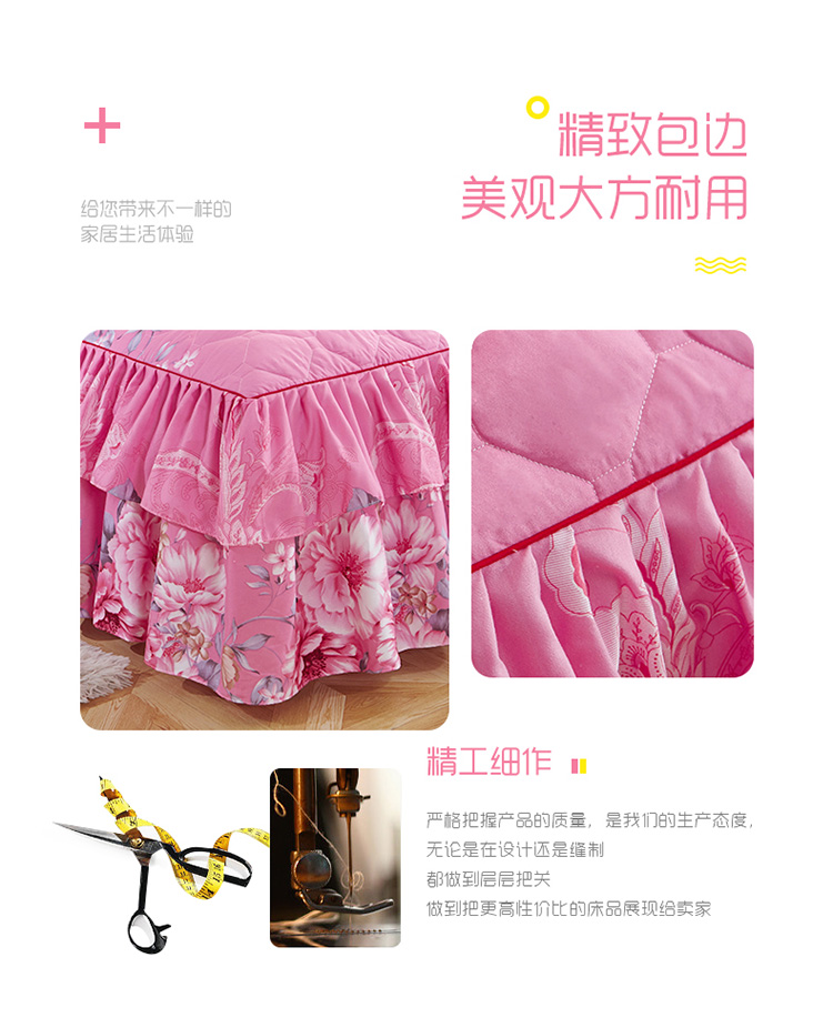 (总)艾裙海 2025新款90克磨毛夹棉绗缝床裙,粉色,大红色,米白色,深灰色,紫色,藏青色,宝蓝色,浅灰色,粉玉色,豆沙红