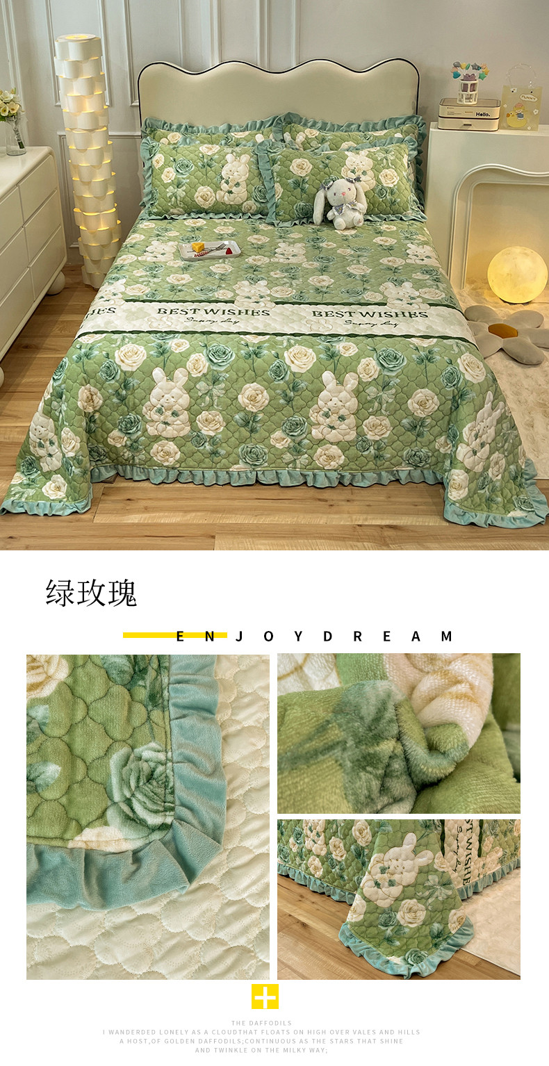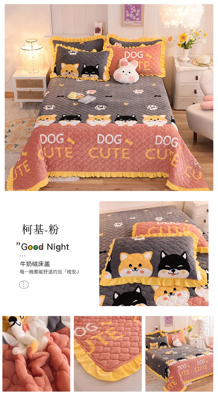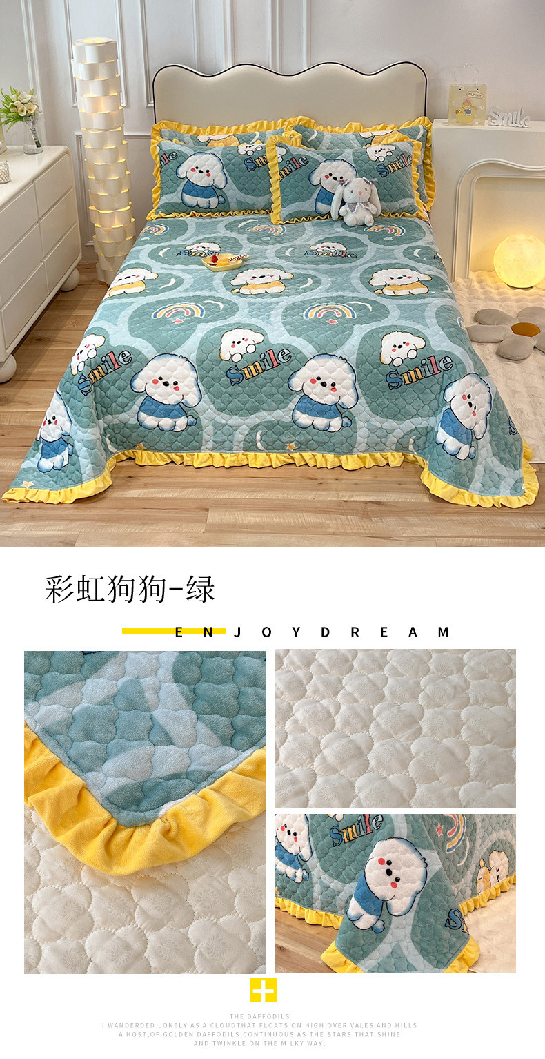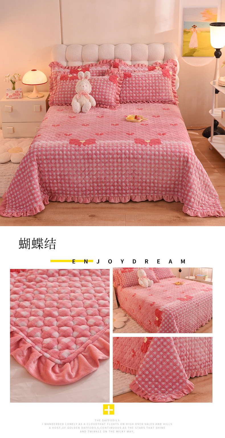 (总)美达家纺 2025新款高克重牛奶绒花边款夹棉床盖三件套,巴拉巴拉,格子萌熊,恐龙星球,梦蝶,时来运转,甜蜜奶吧,微笑熊,针织熊