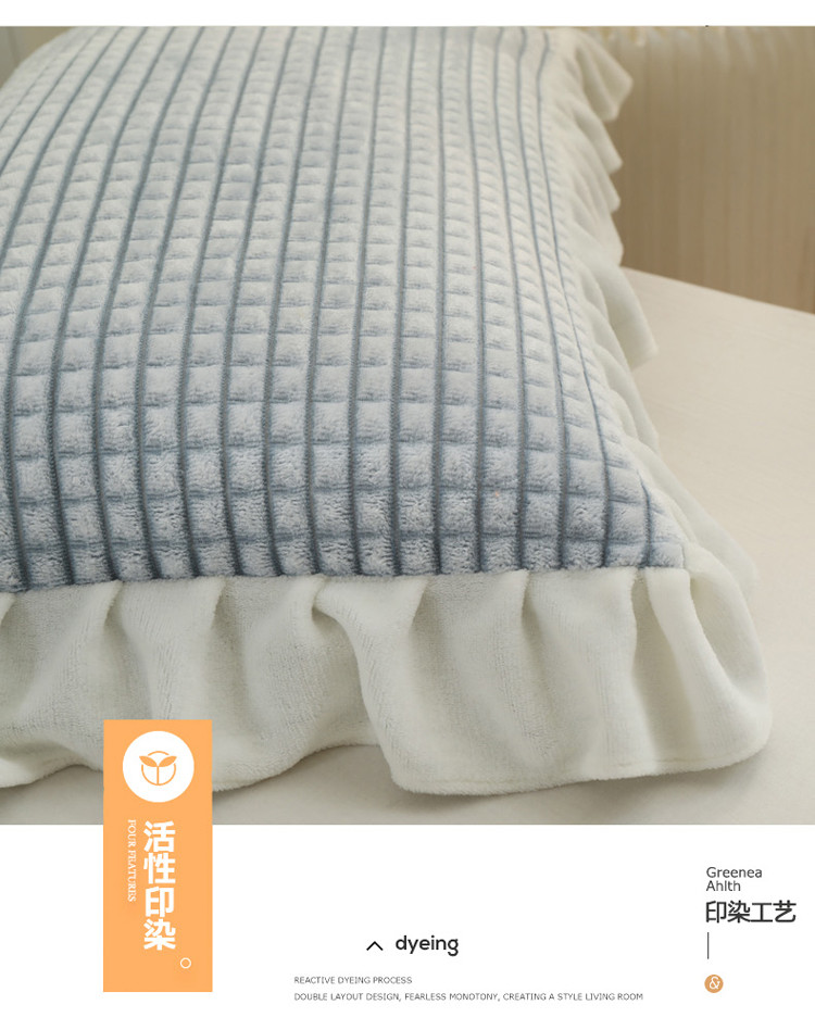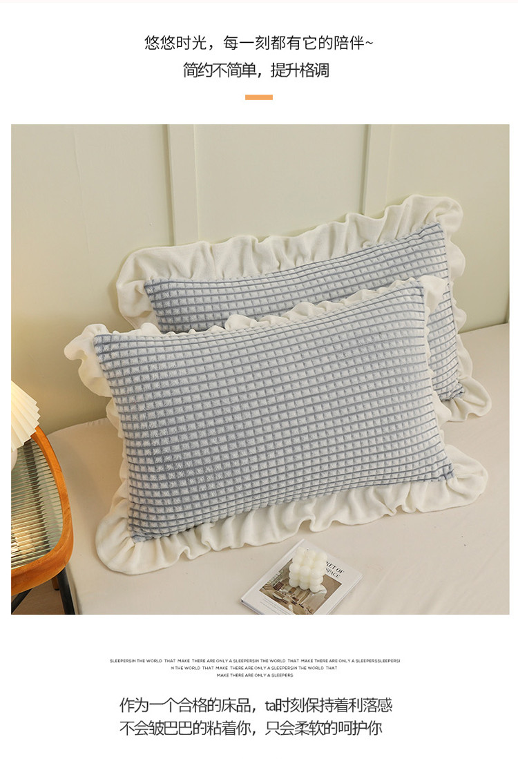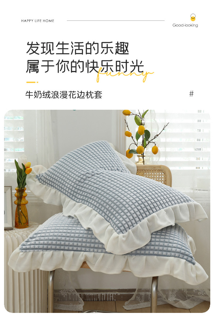 商品名称:慕澄 2022新款牛奶绒花边枕套48*74一对 可可蓝
