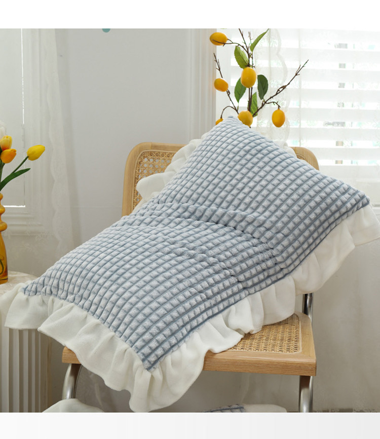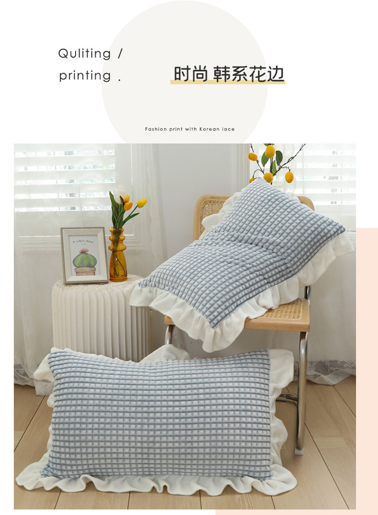 慕澄 2022新款牛奶绒花边枕套48*74一对 可可蓝
