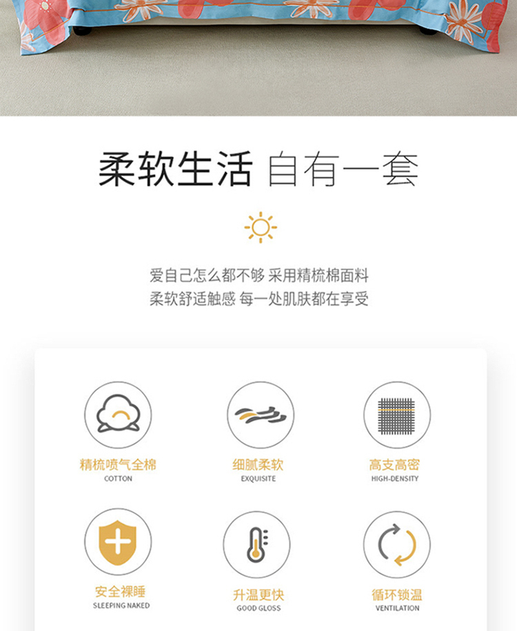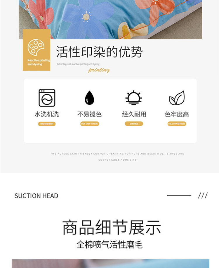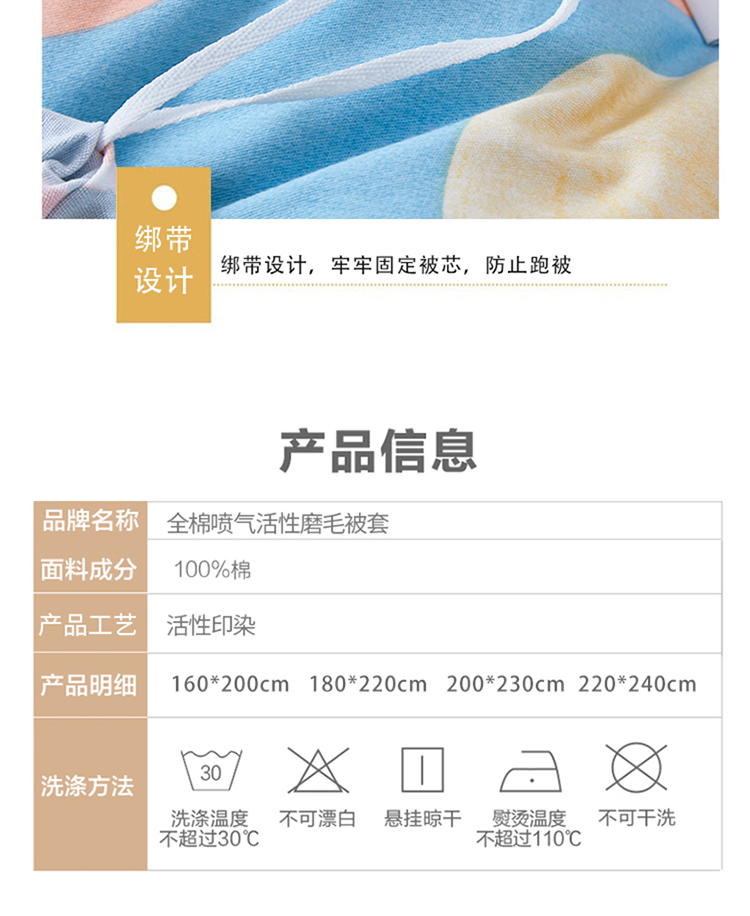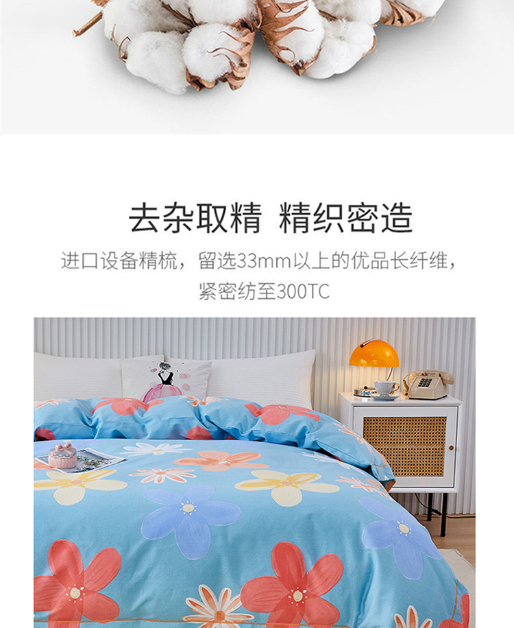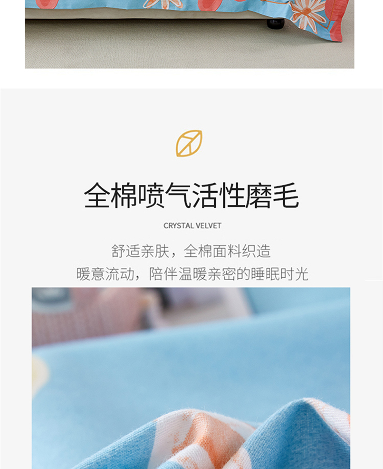 商品名称:杜先生 2023新款全棉加厚喷气活性磨毛单被套 花语时光-蓝