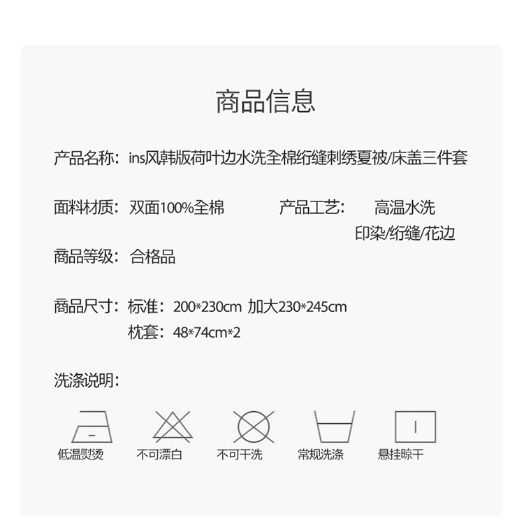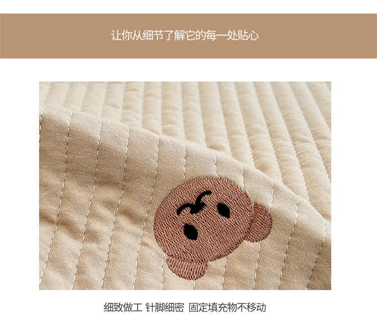 商品名称:漫调ins风韩版荷叶边水洗全棉绗缝刺绣夏被床盖三件套小熊卡其