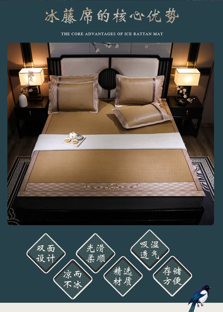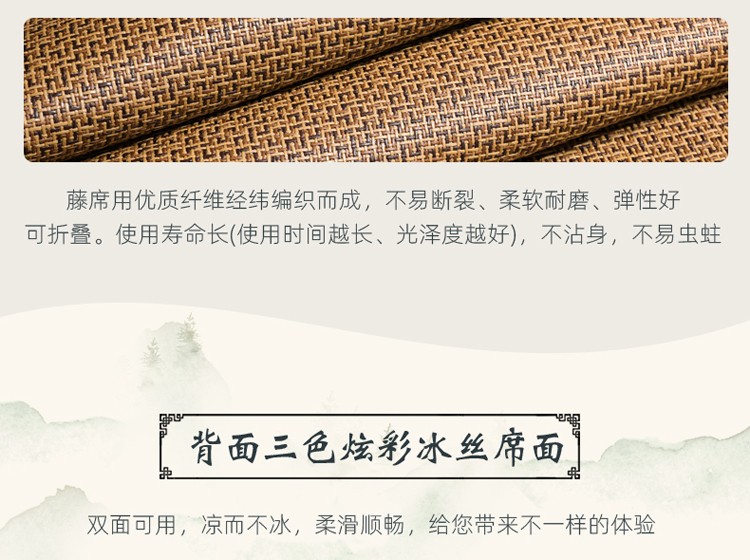 2023新款夏日冰点-冰藤双面席凉席藤席竹席冰丝席乳胶席,咖色,蓝色,绿色,香槟