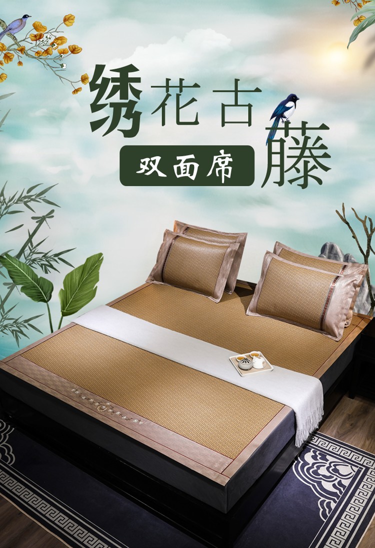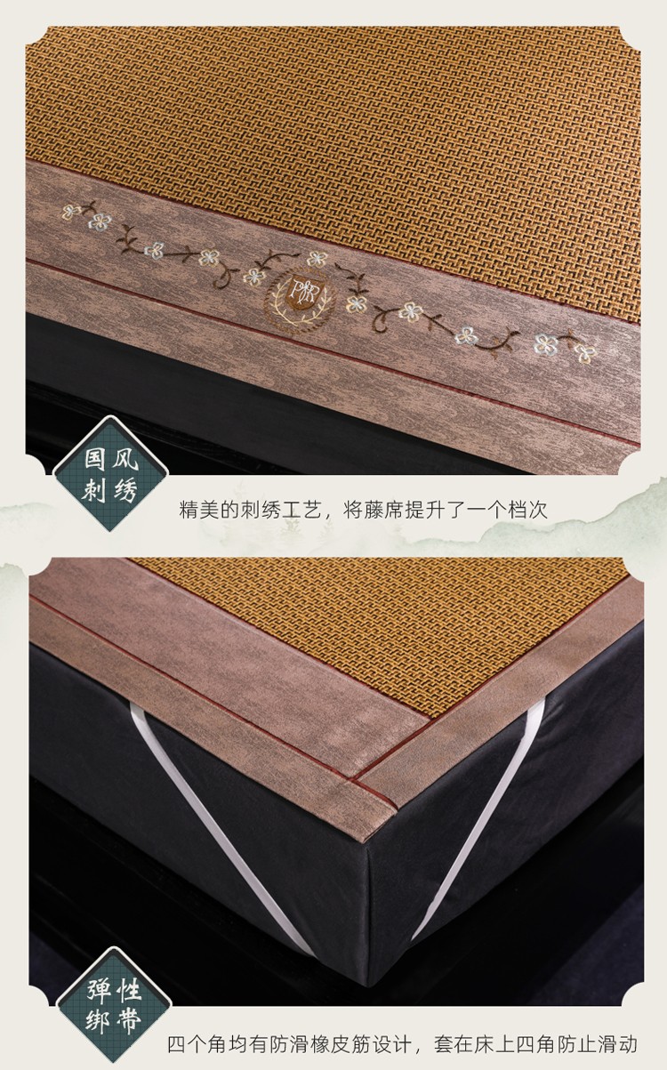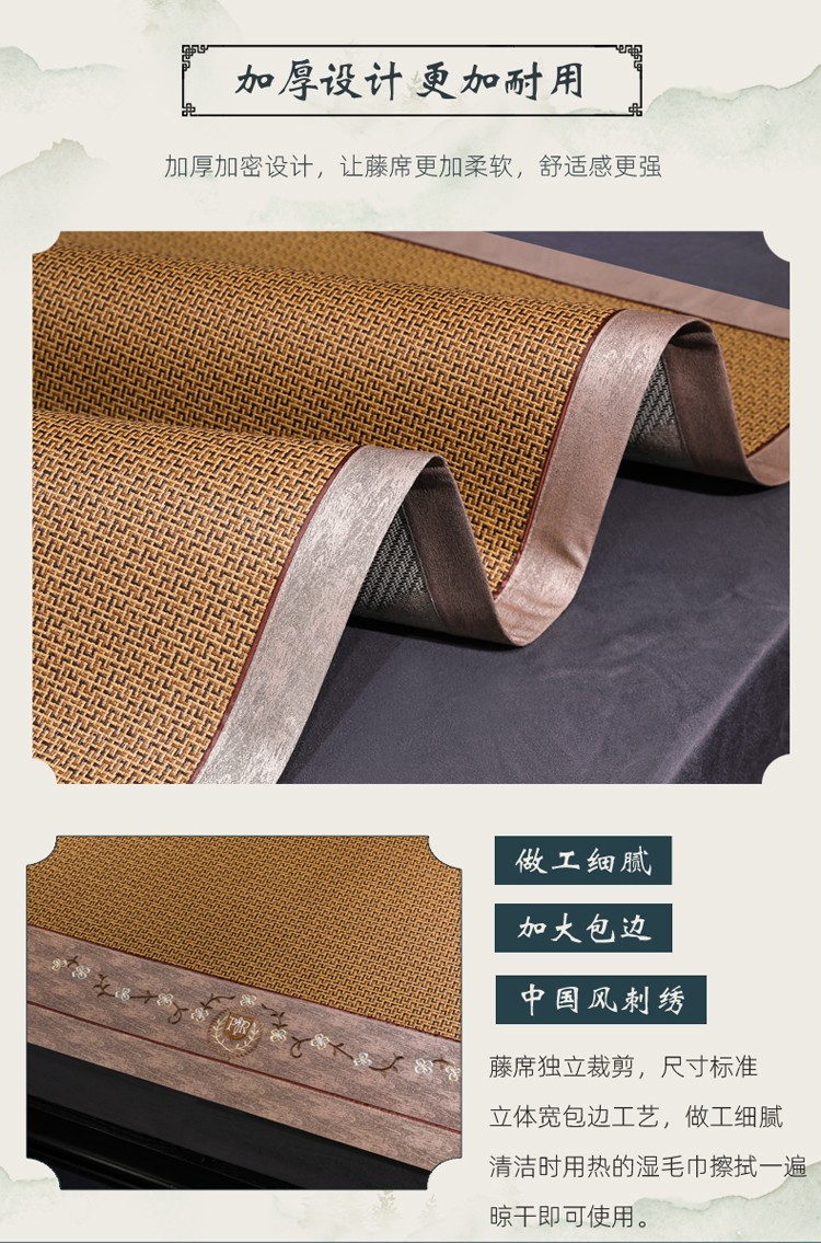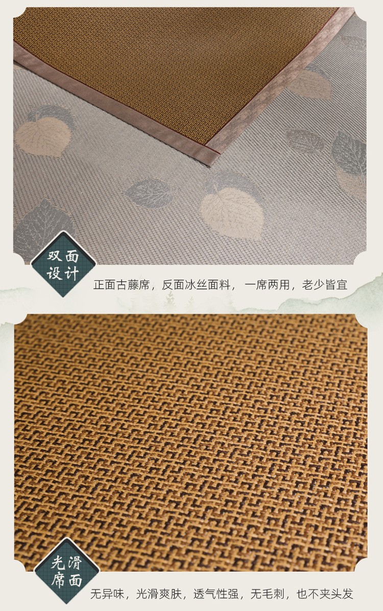 商品名称:小牛席业 2022新款绣花古藤凉席【双面席】 黄古藤席双面席