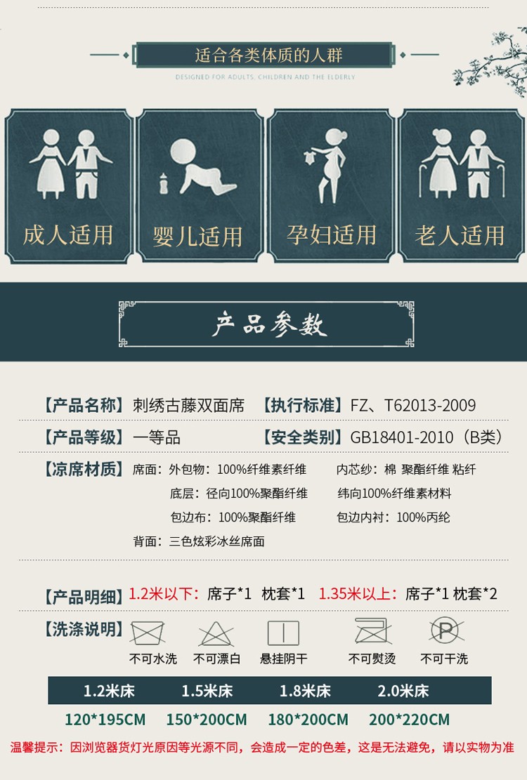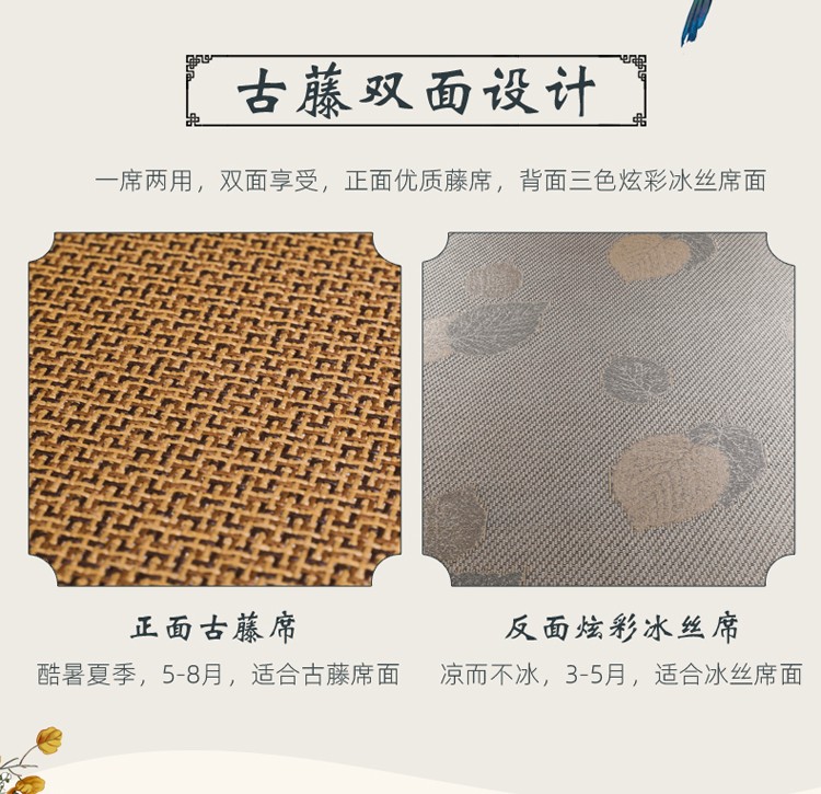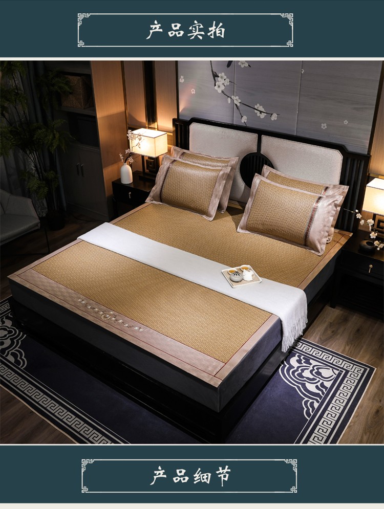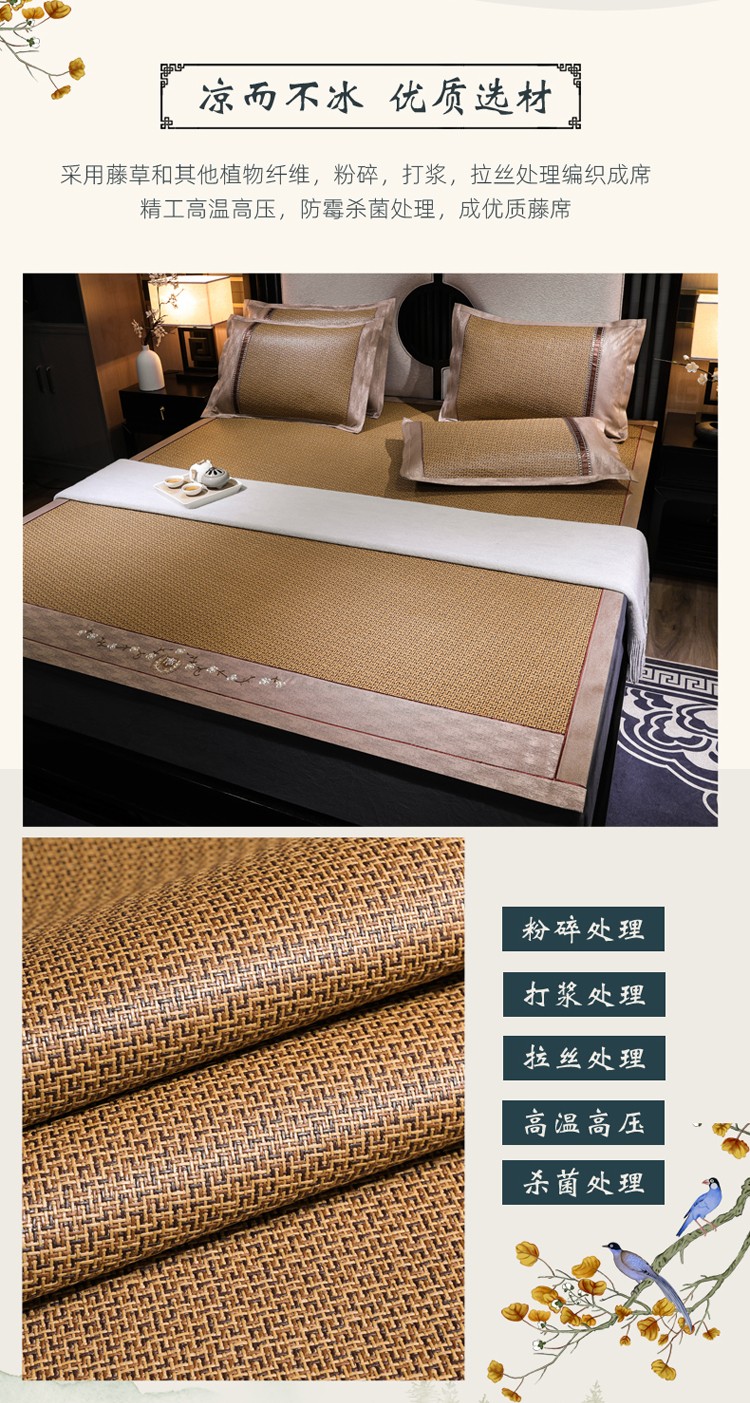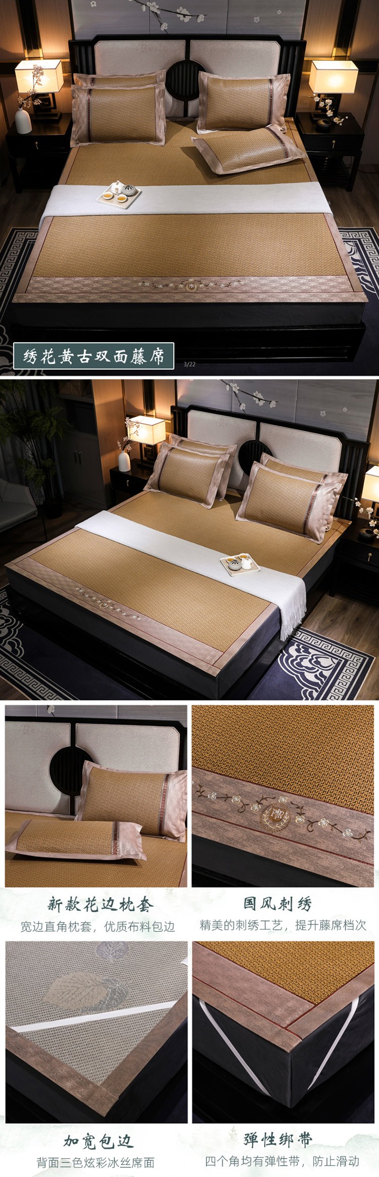 商品名称:小牛席业 2022新款绣花古藤凉席【双面席】 黄古藤席双面席