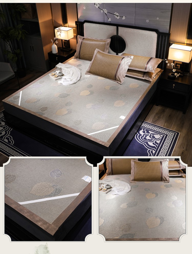 小牛席业 2022新款绣花古藤凉席【双面席】 黄古藤席双面席
