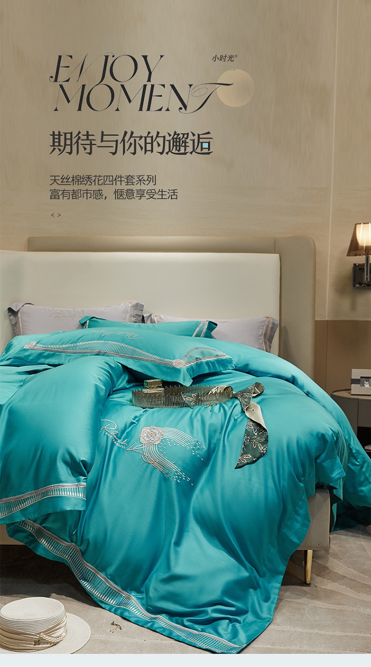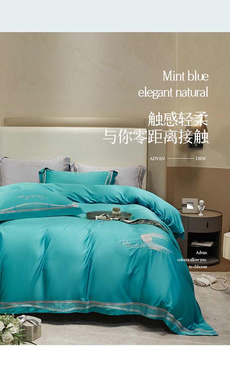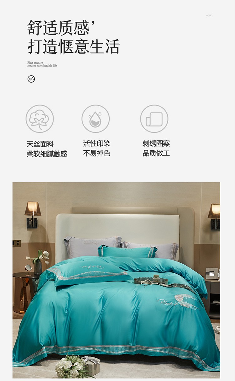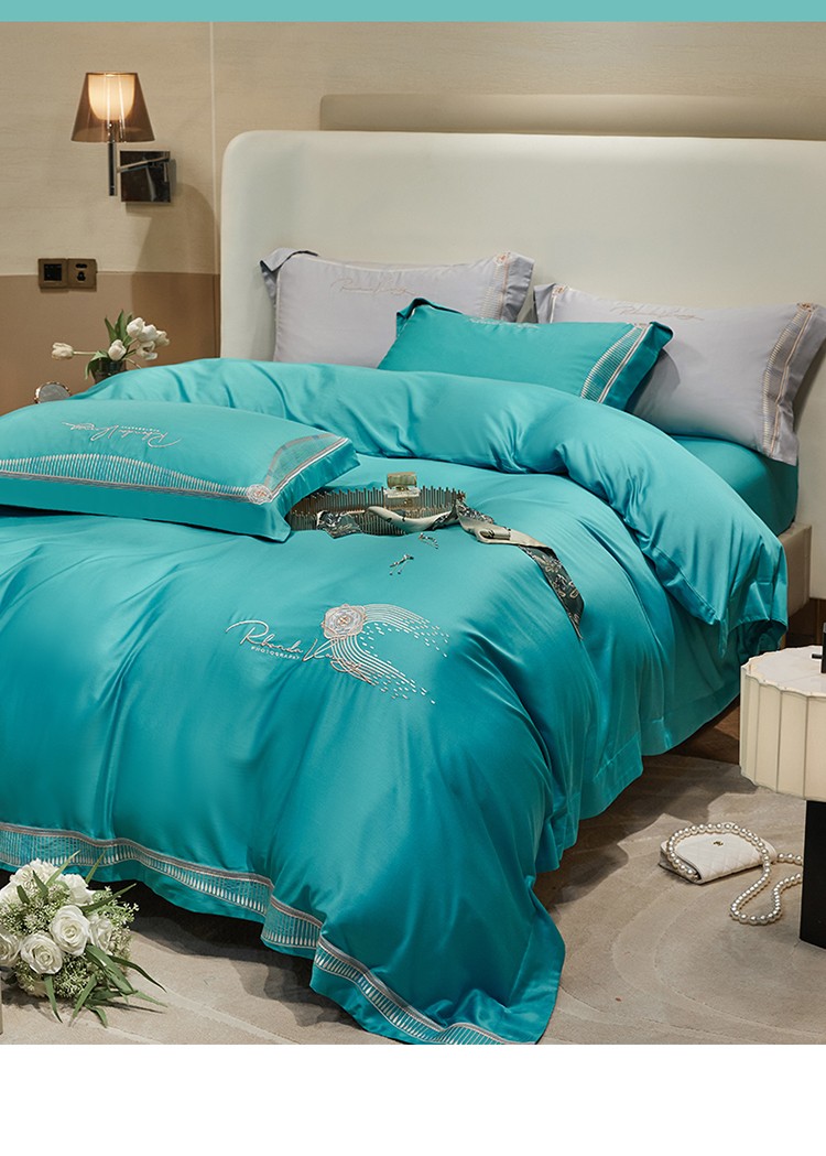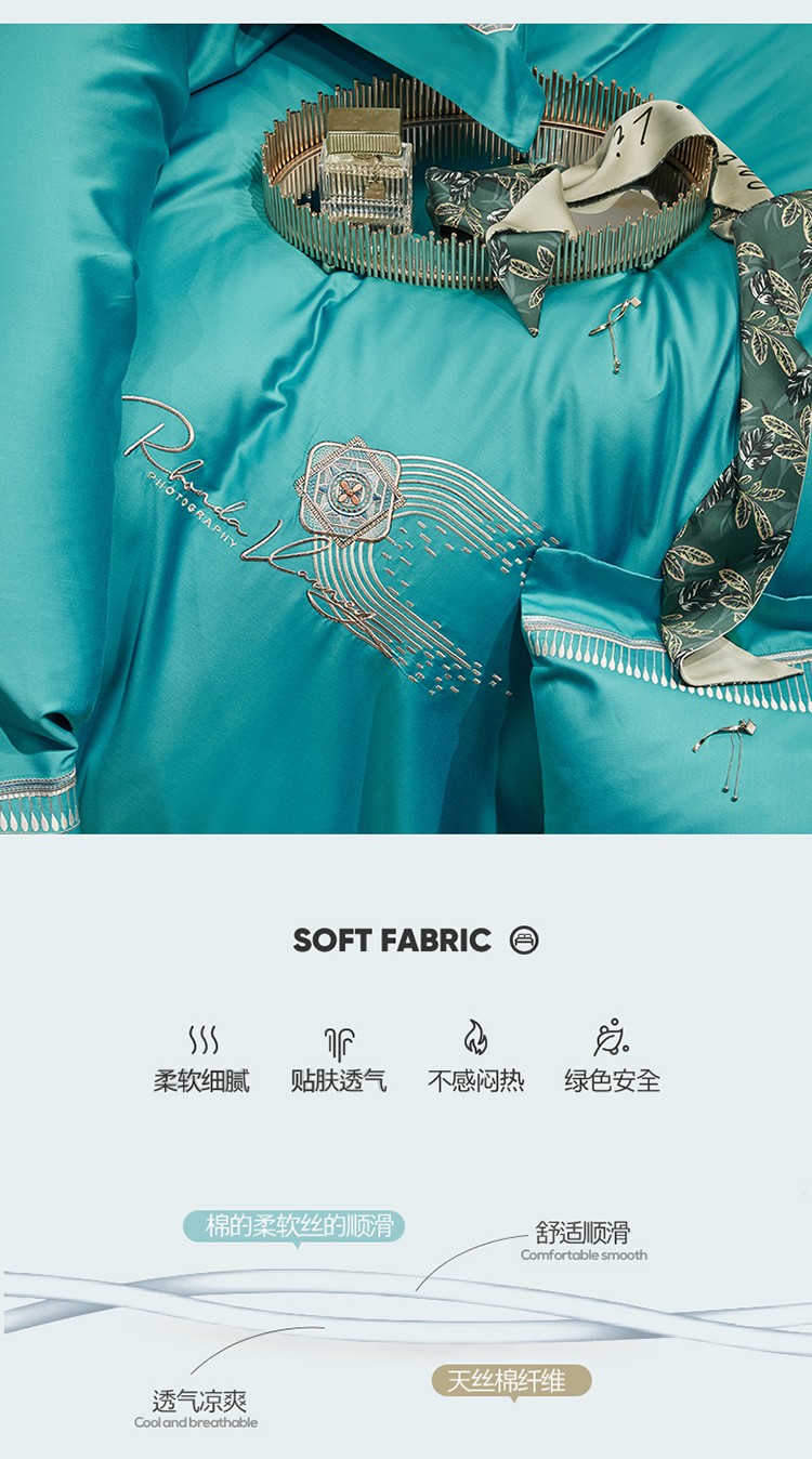 商品名称:2023名品优仓春夏直播爆款天丝棉四件套 慕尚-蓝绿