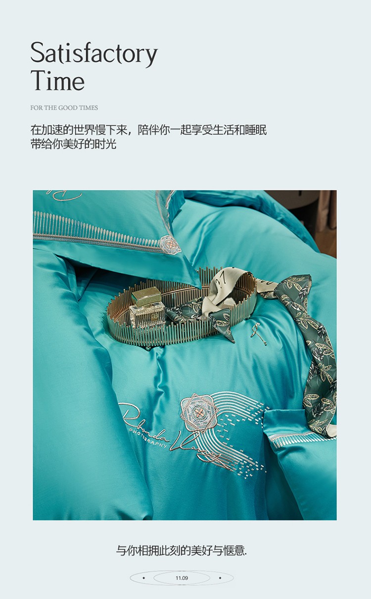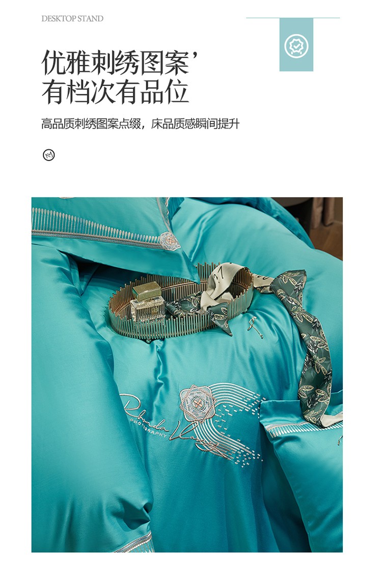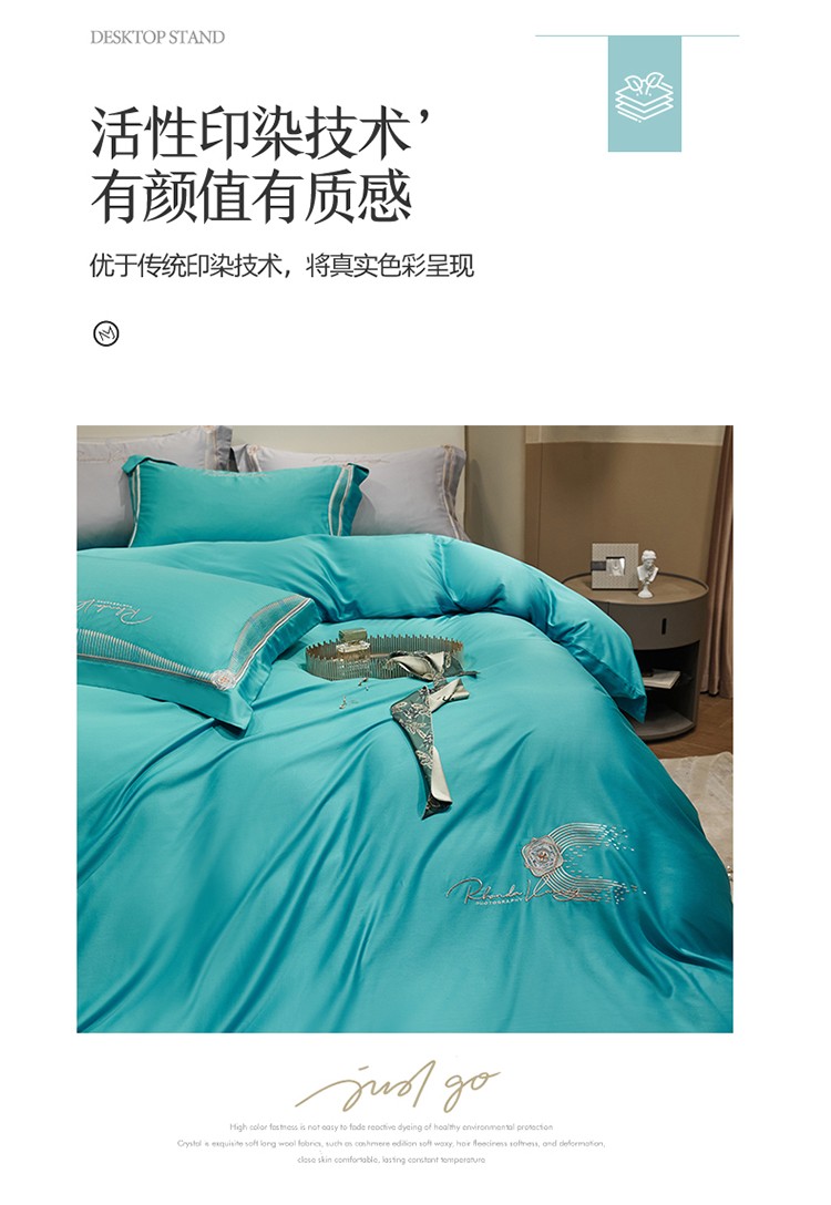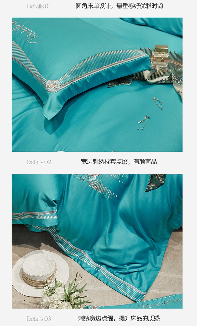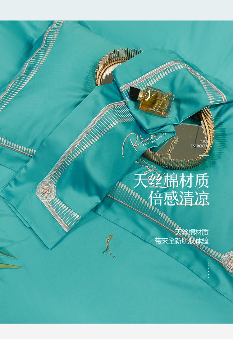商品名称:2023名品优仓春夏直播爆款天丝棉四件套 慕尚-蓝绿