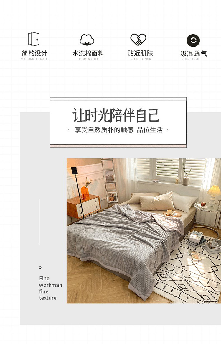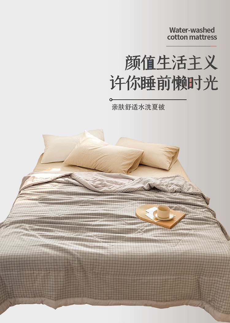 商品名称:慕尚家纺 2025新款日式简约无印风夏被夏凉被风格一 小灰格