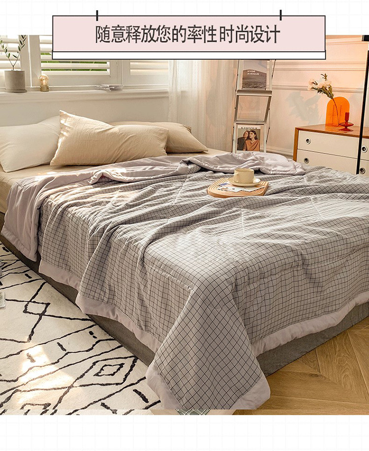 慕尚家纺 2025新款日式简约无印风夏被夏凉被风格一 小灰格