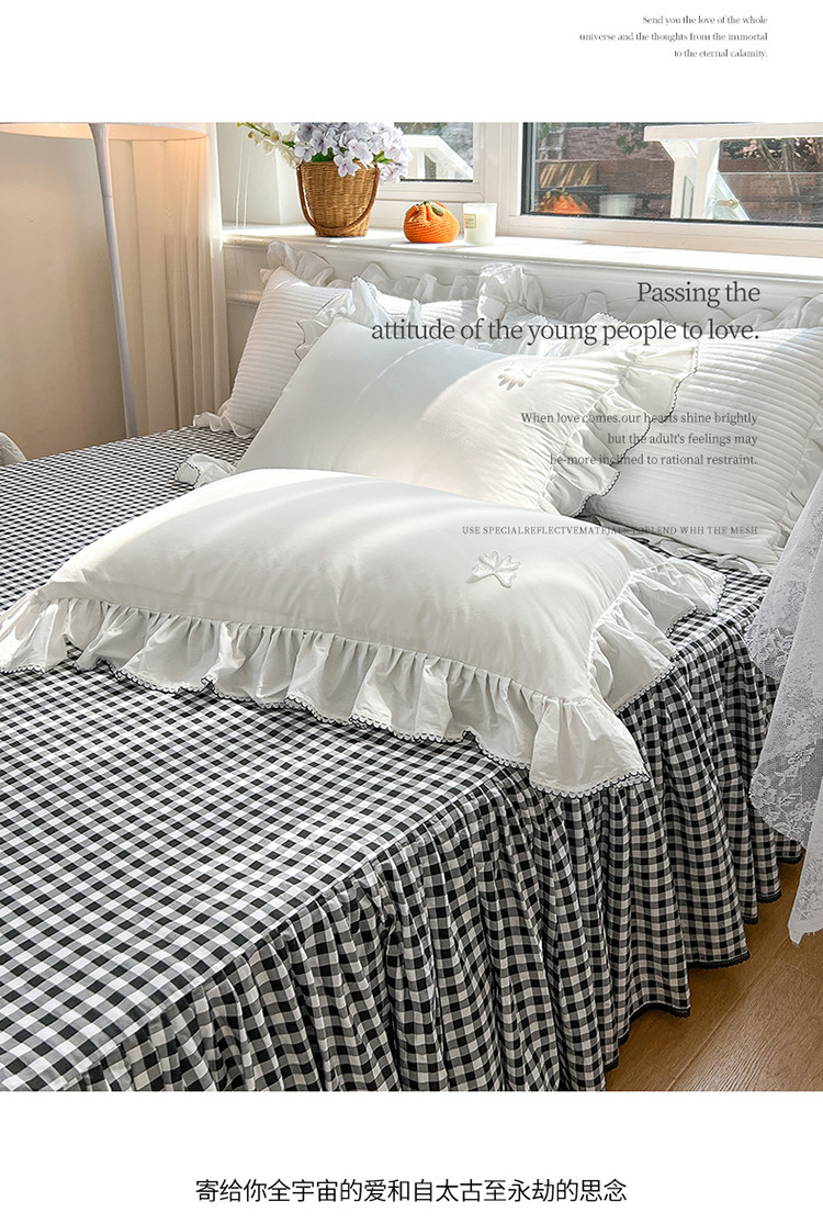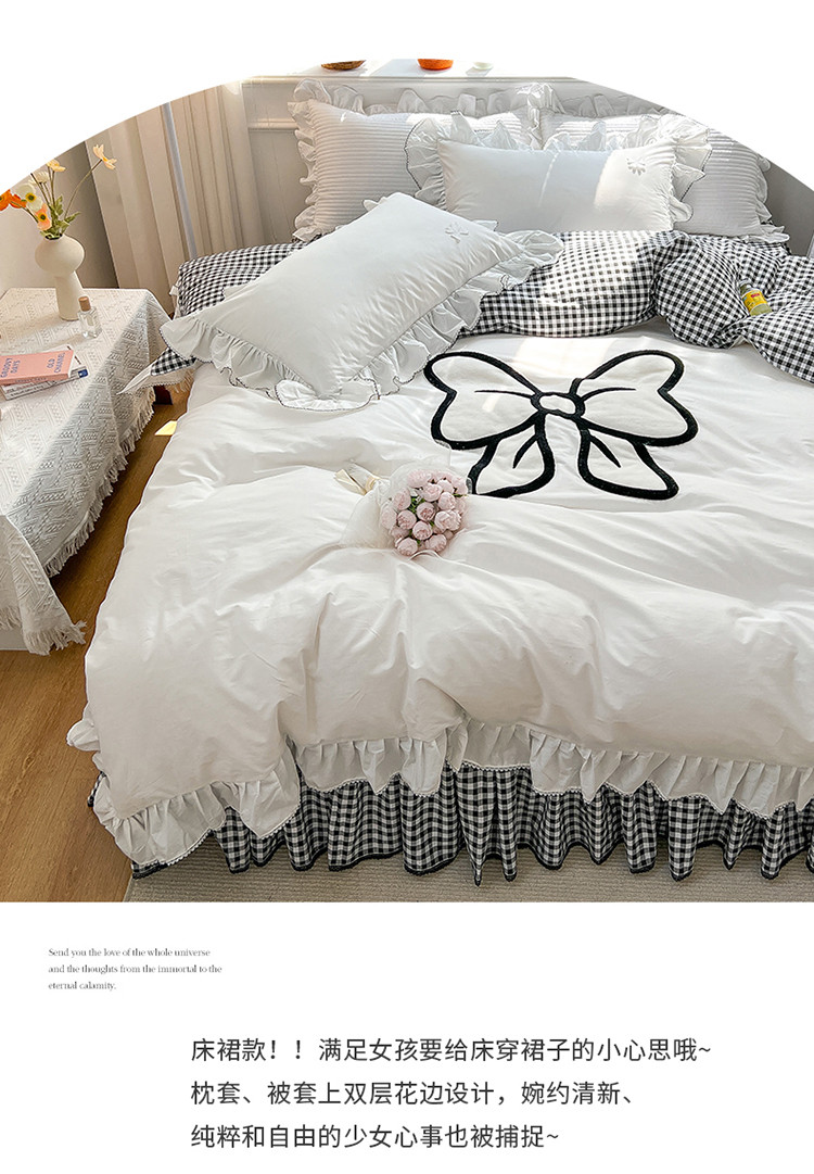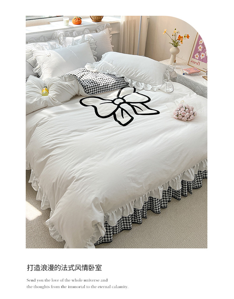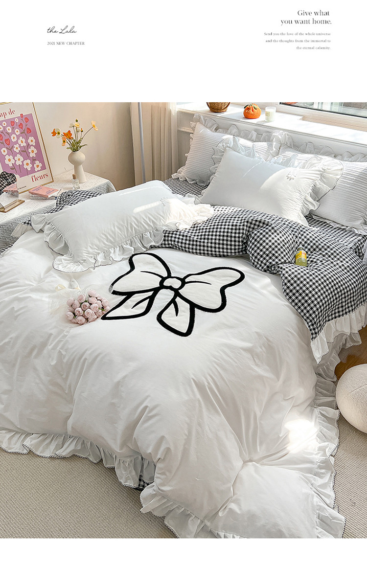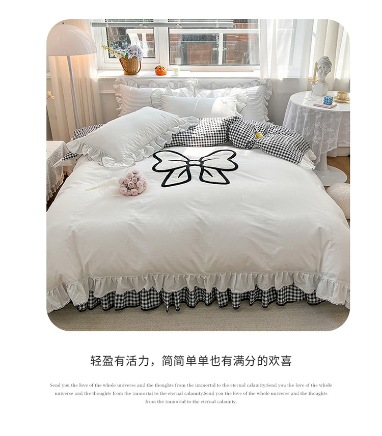婳庭家居 2023新款全棉13376贴布绣蝴蝶结四件套 蝴蝶结黑白格