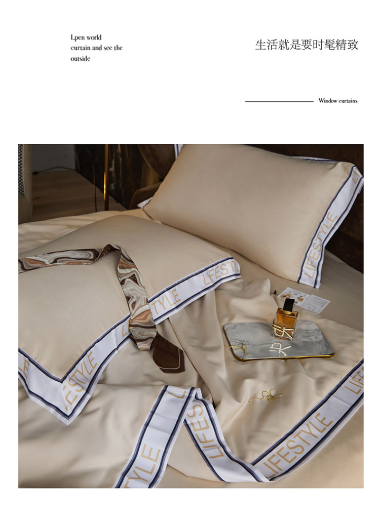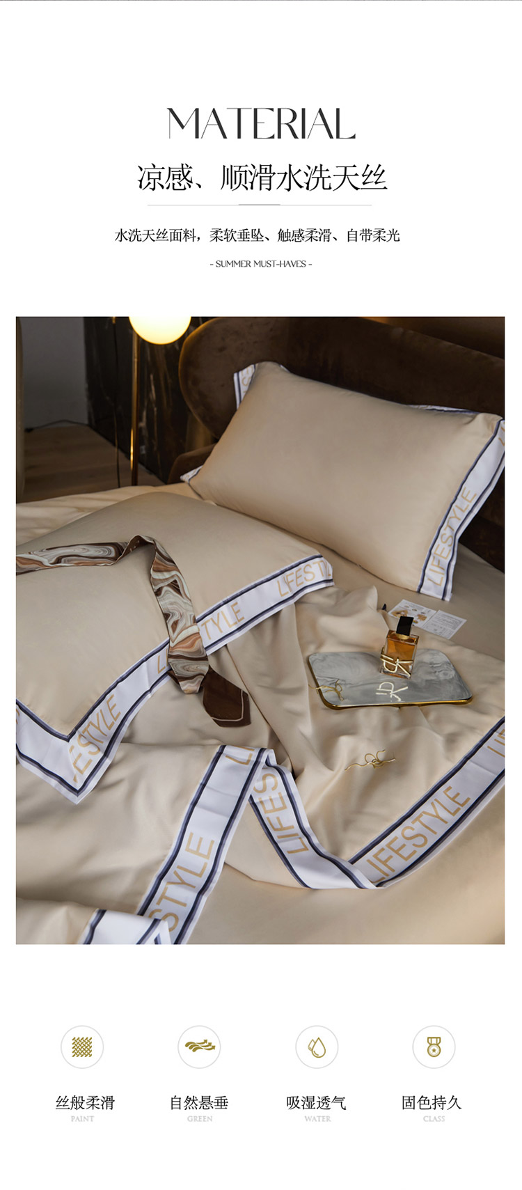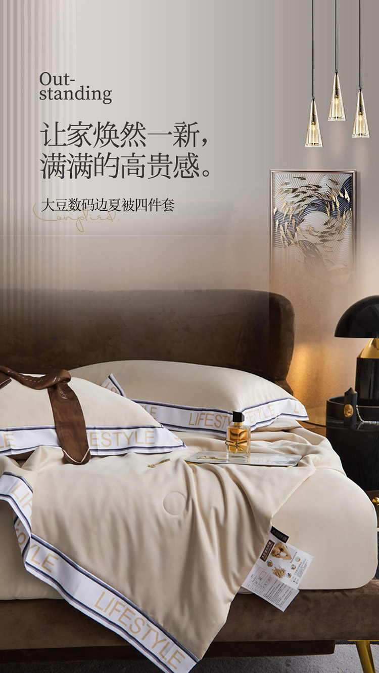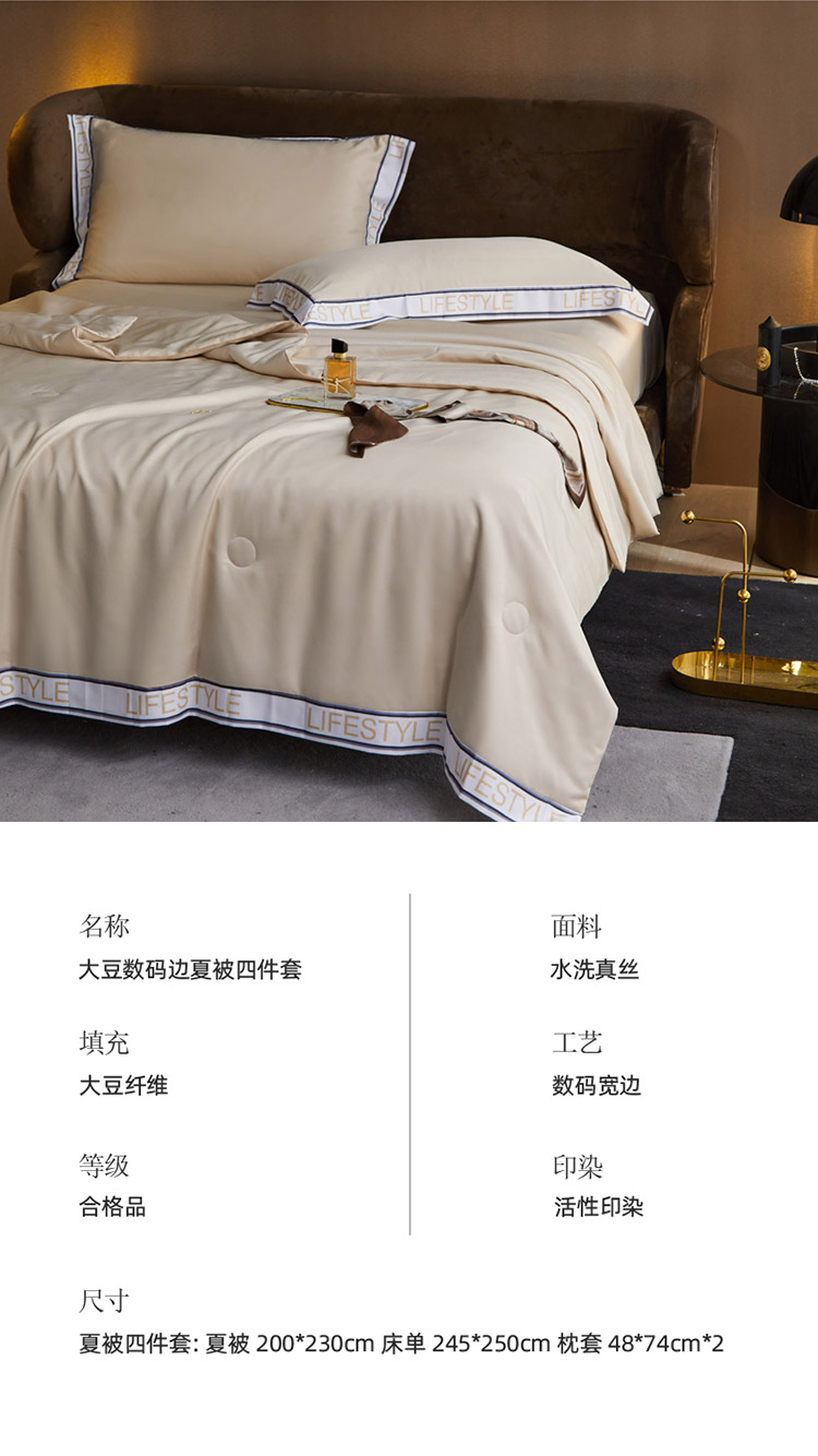 商品名称:凡客2022水洗天丝大豆纤维数码宽边莫奈夏被四件套莫奈-卡其