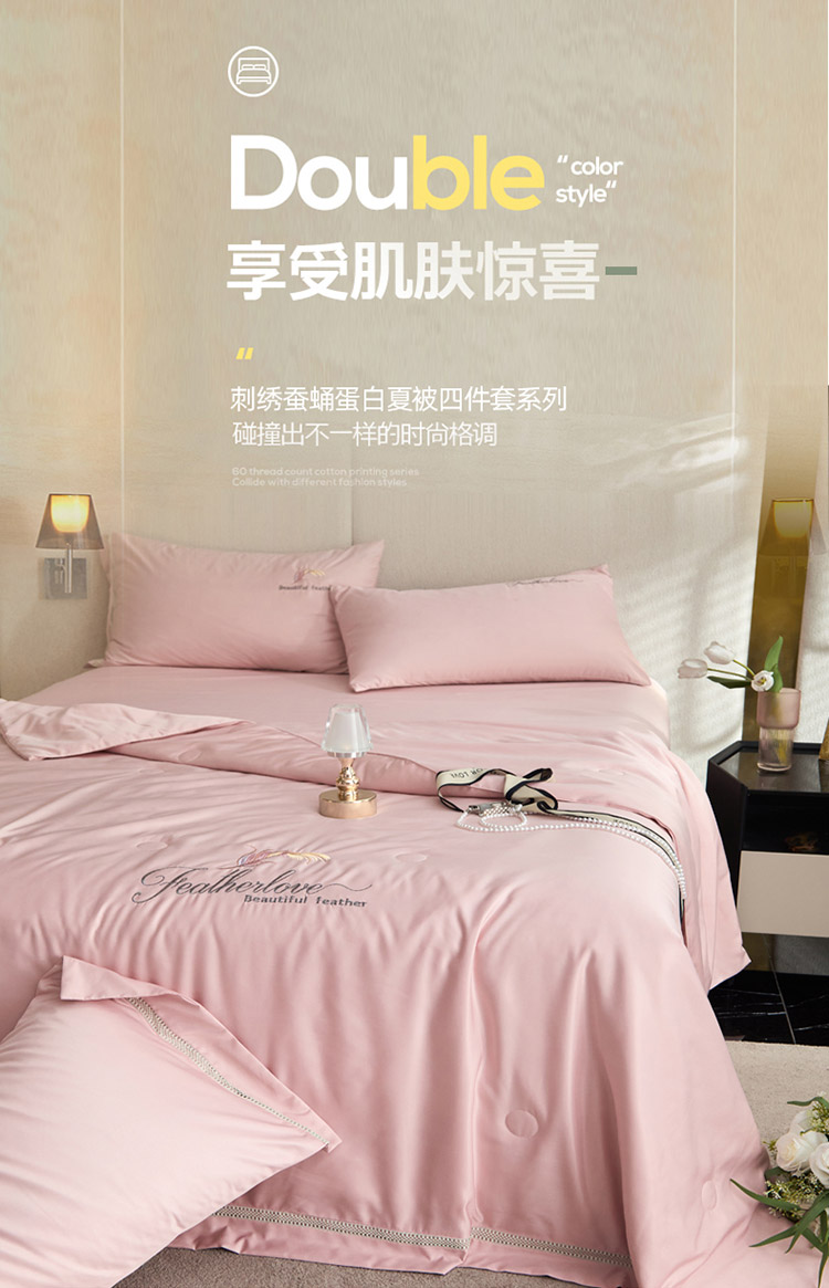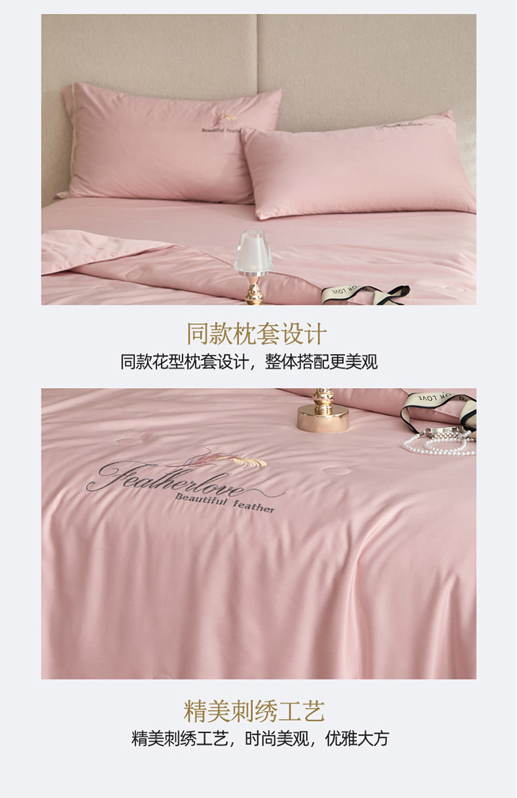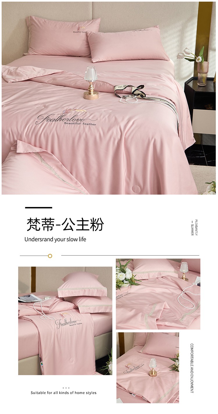 凡客2022水洗天丝刺绣蚕蛹蛋白梵蒂夏被四件套梵蒂-公主粉