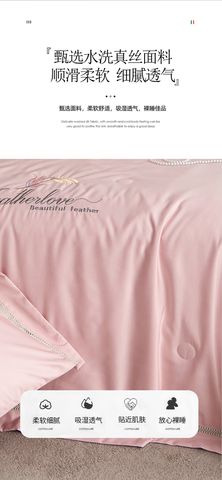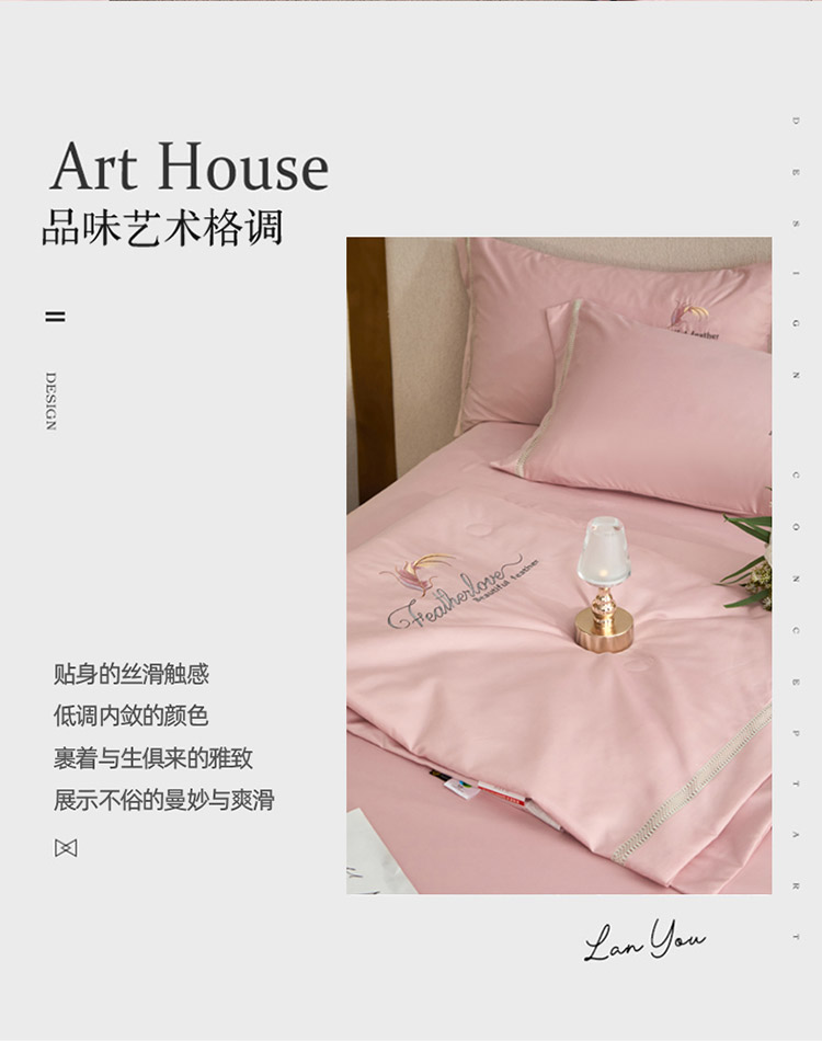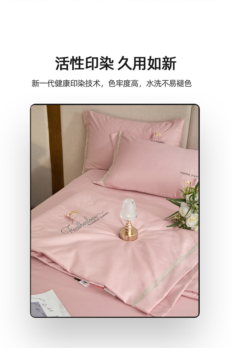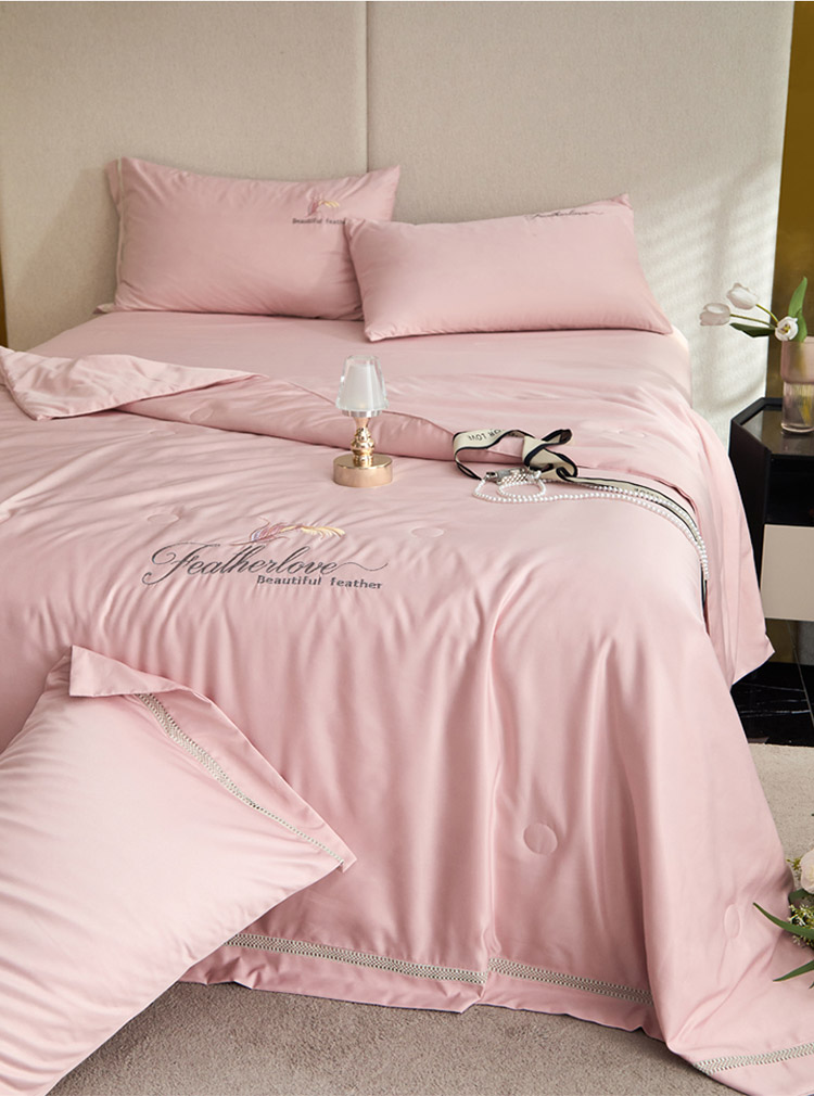 凡客2022水洗天丝刺绣蚕蛹蛋白梵蒂夏被四件套梵蒂-公主粉