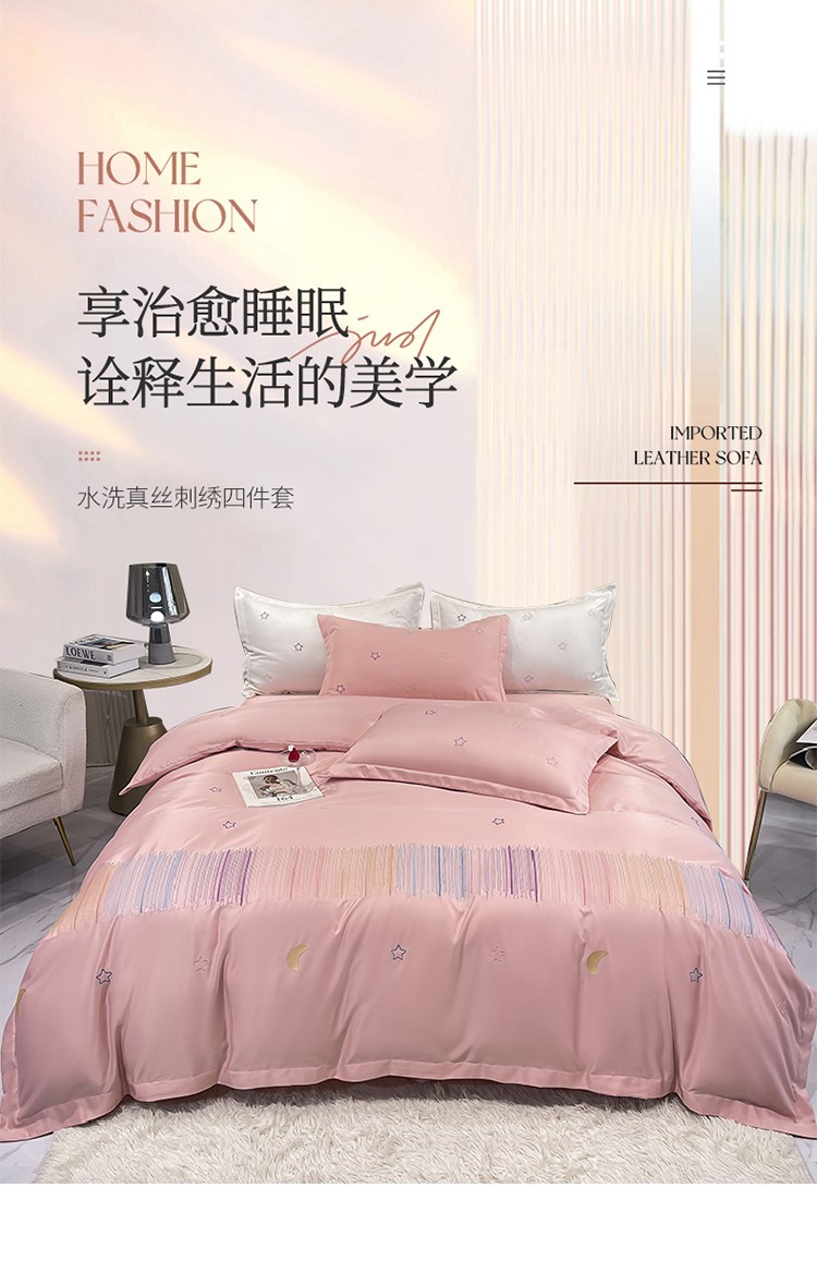 (总)艾米 2025新款春夏水洗真丝四件套-星月,薄荷绿,豆沙,鹅黄,粉玉,奶白,天蓝