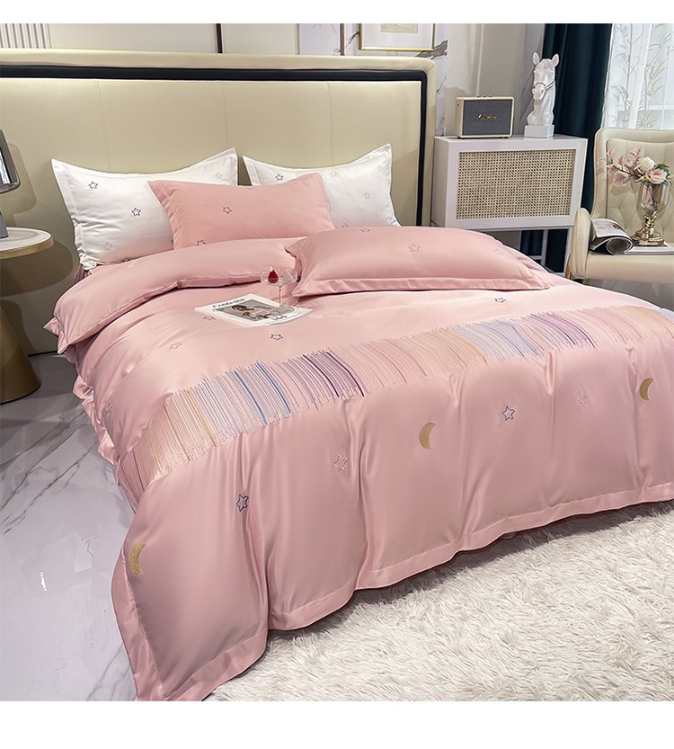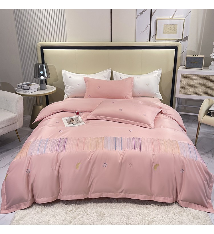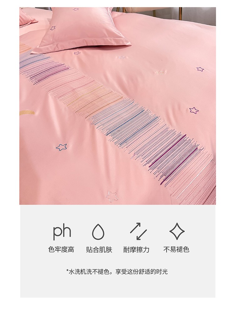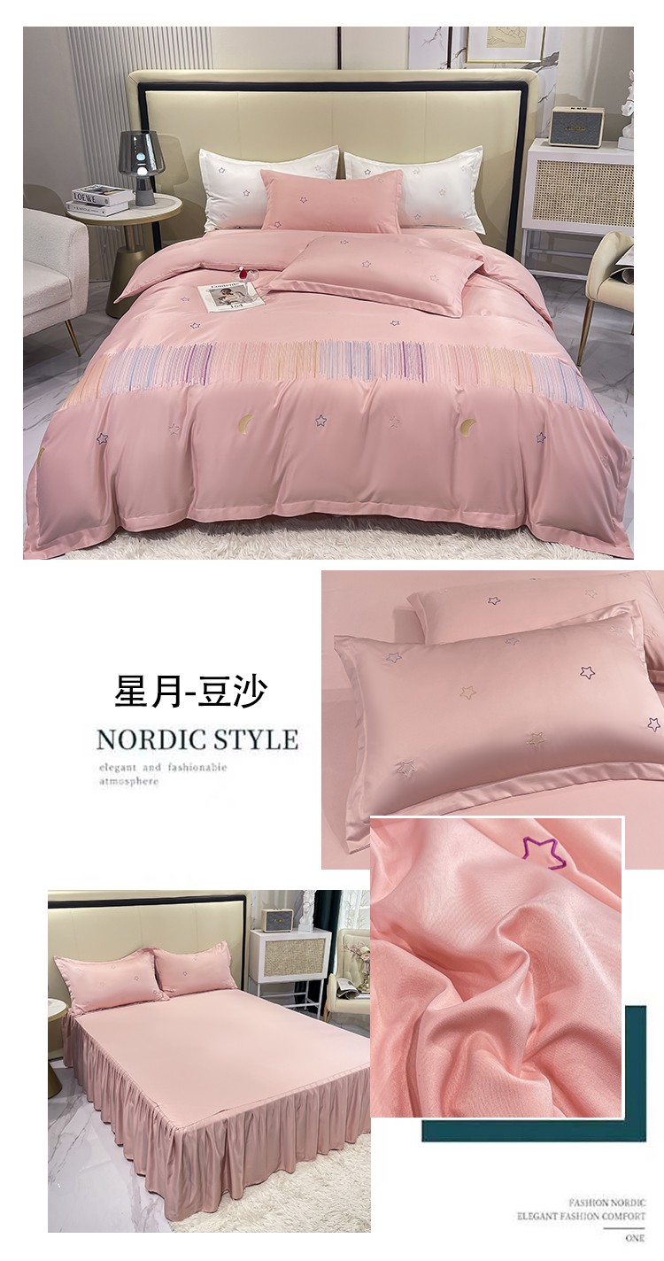 商品名称:艾米 2025新款春夏水洗真丝四件套-星月 豆沙