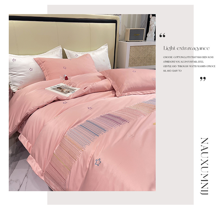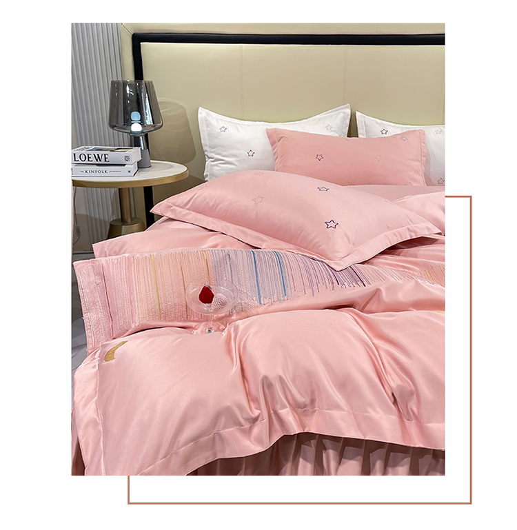 艾米 2025新款春夏水洗真丝四件套-星月 豆沙
