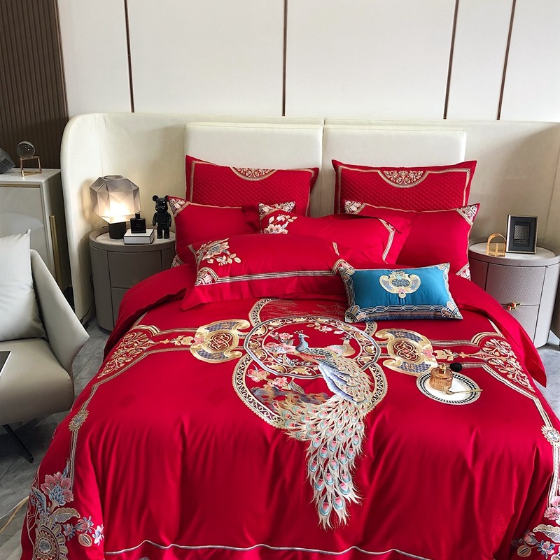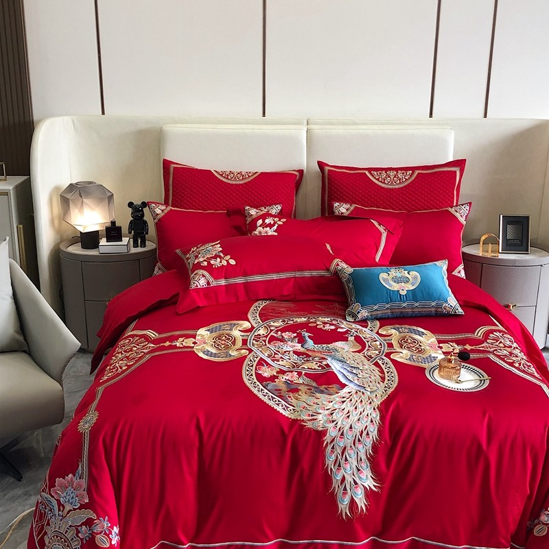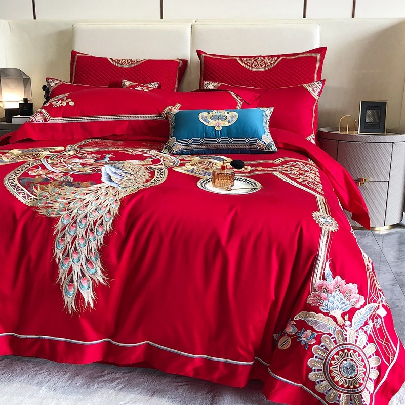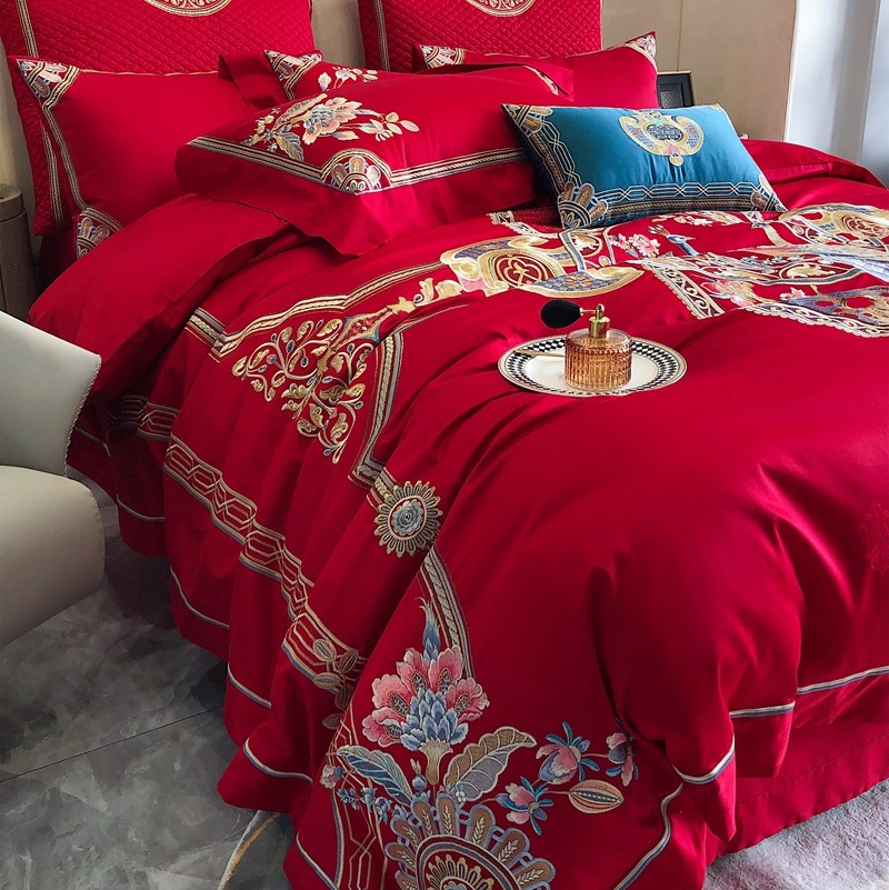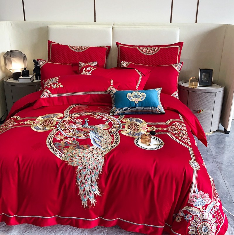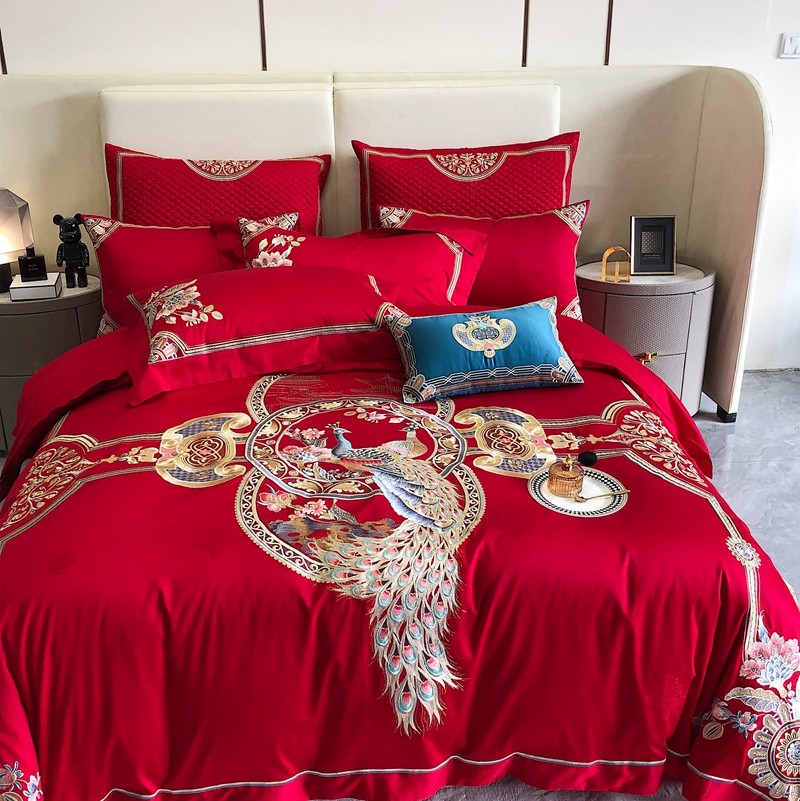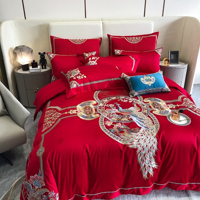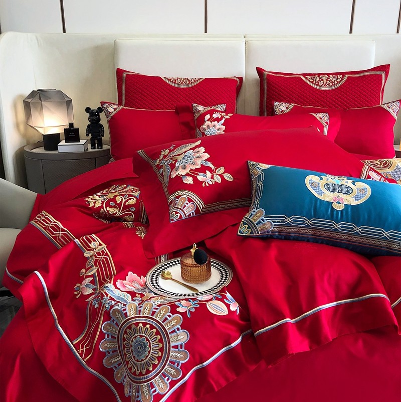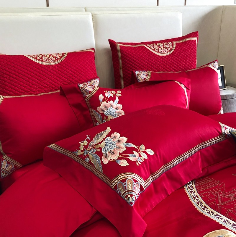 商品名称:馨蕊家居2022新款140S全棉长绒棉刺绣婚庆四件套琴瑟和鸣