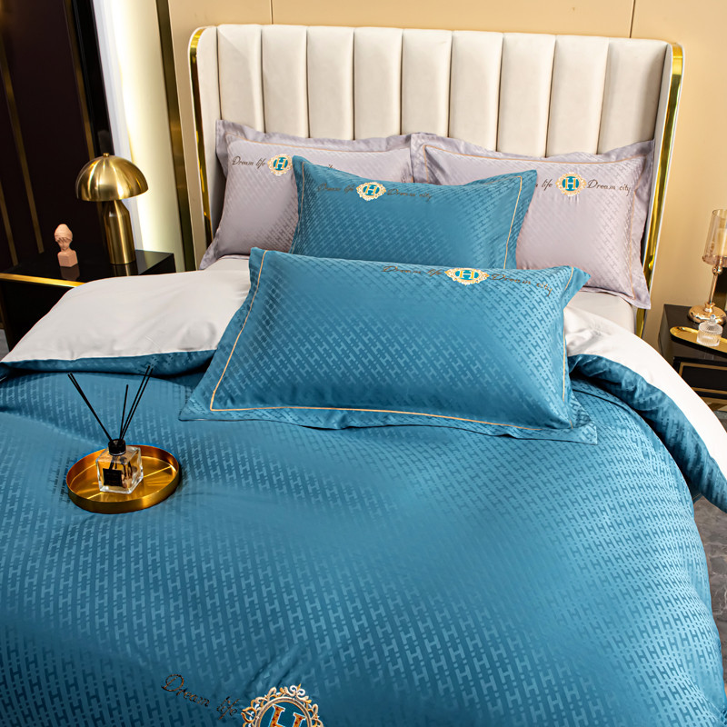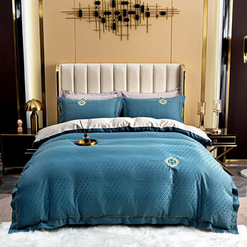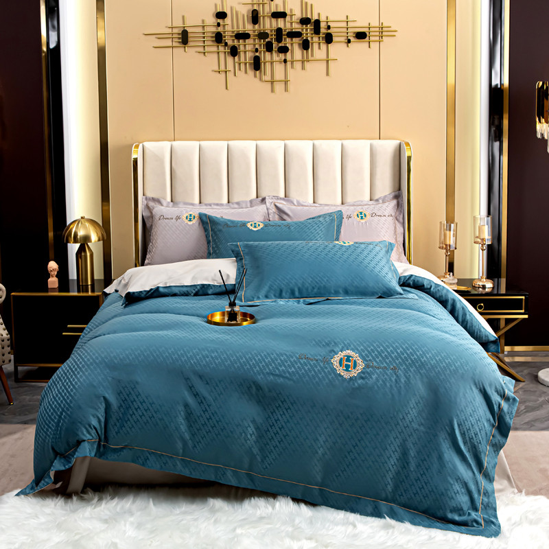 商品名称:凡客 2022新款全棉提花轻奢风刺绣款四件套 雾蓝
