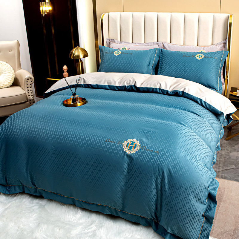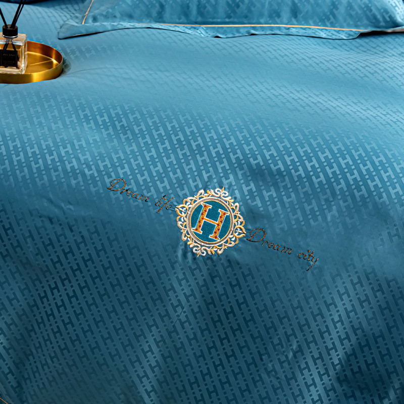 凡客 2022新款全棉提花轻奢风刺绣款四件套 雾蓝