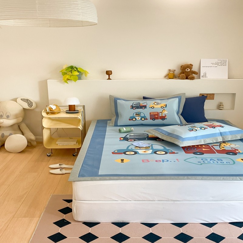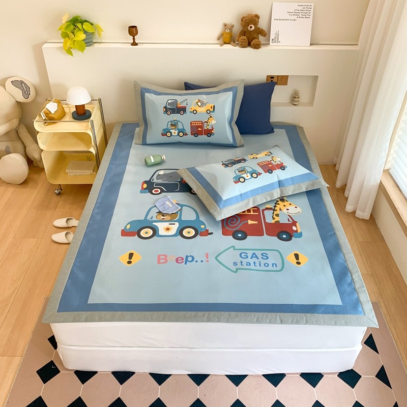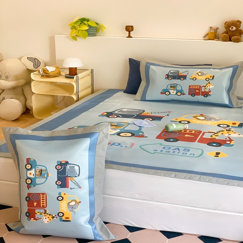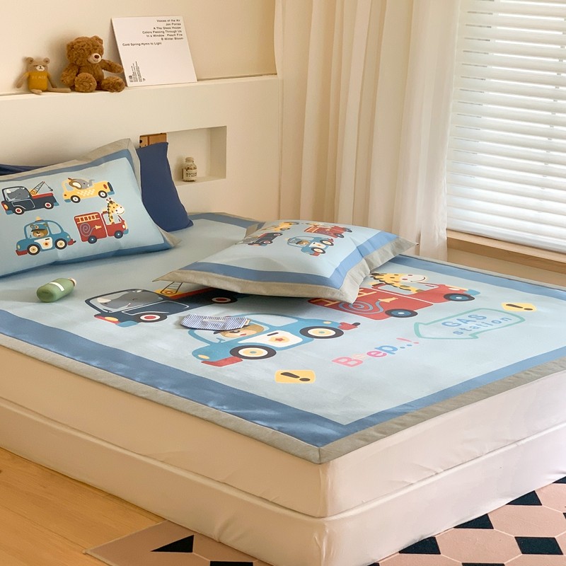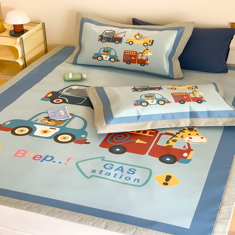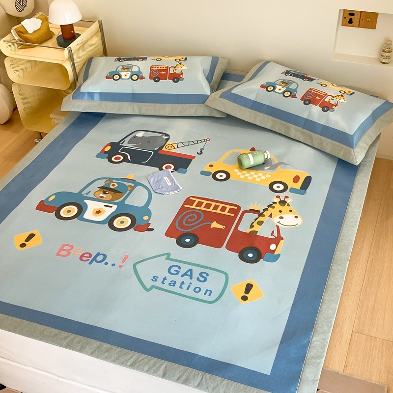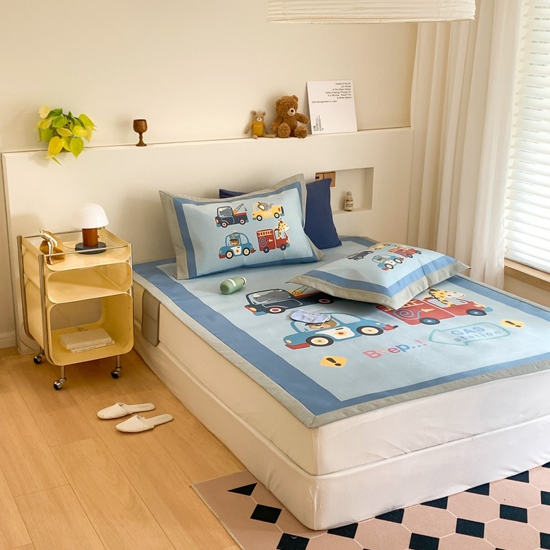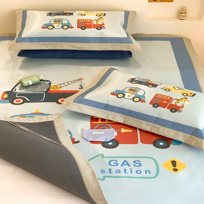 三味舒屋 2025新款抗菌数码印花冰丝席套件 汽车队