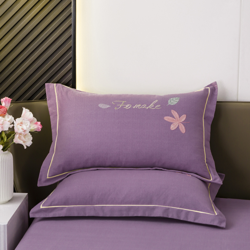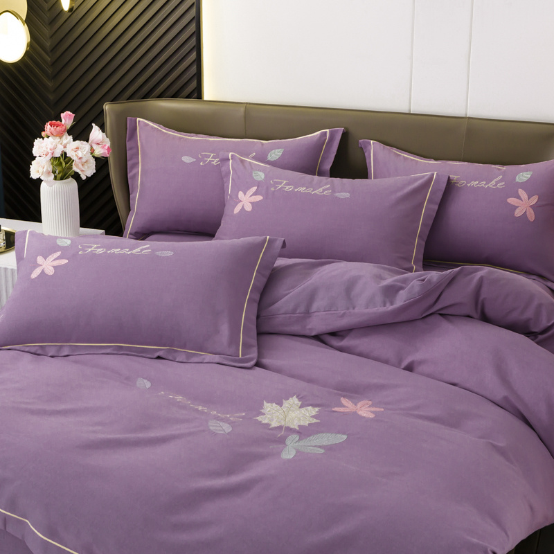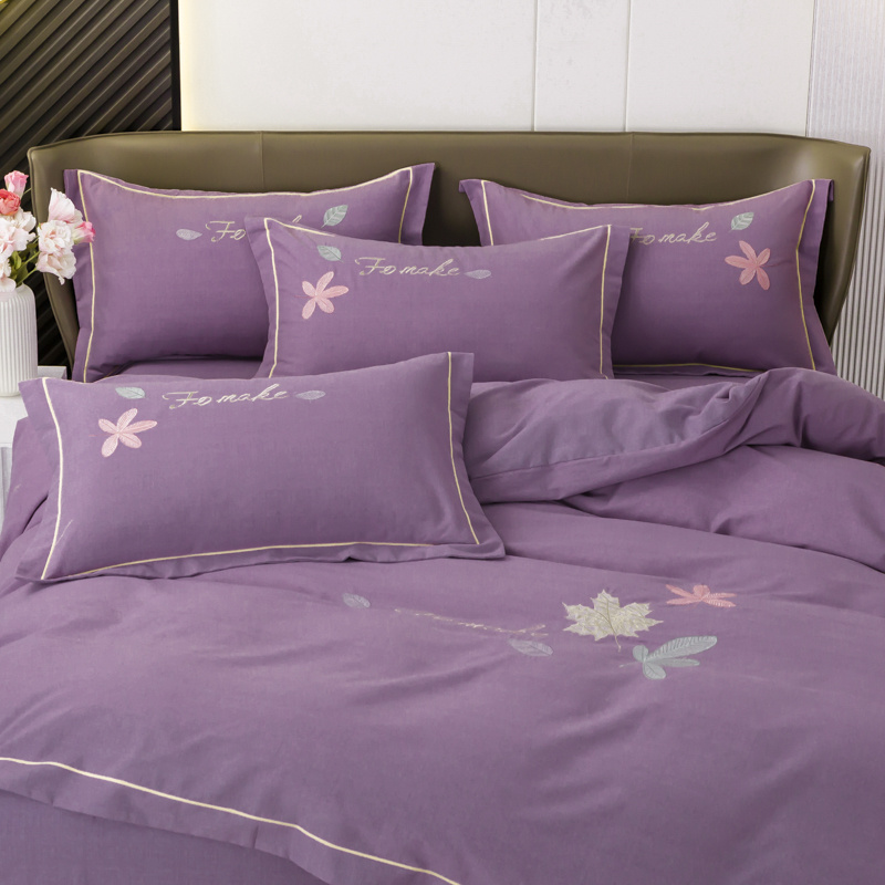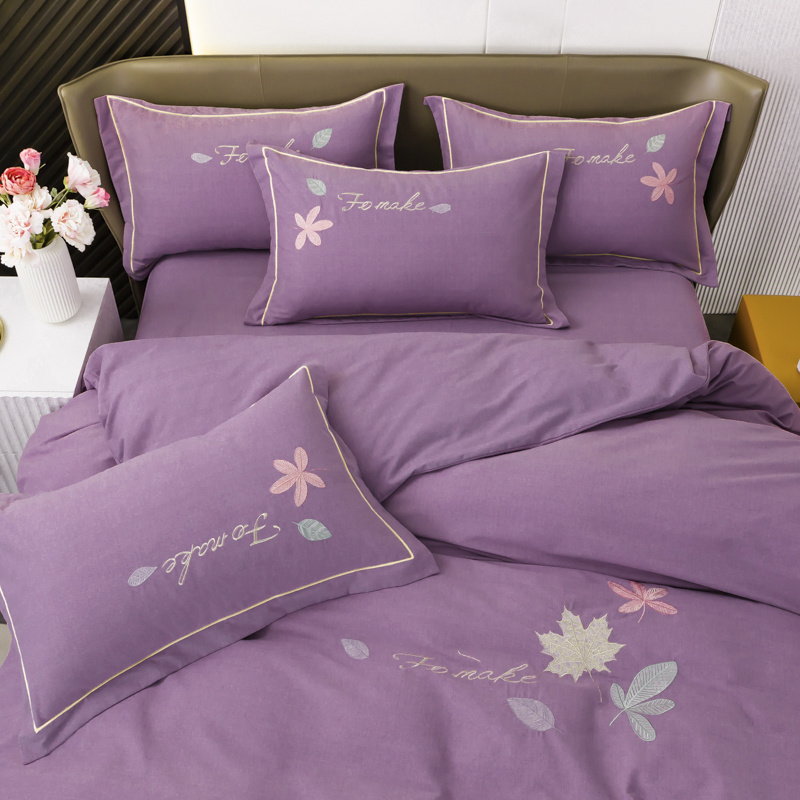 优姿家纺 2022新款全棉磨毛绣花四件套 枫叶-豆沙紫