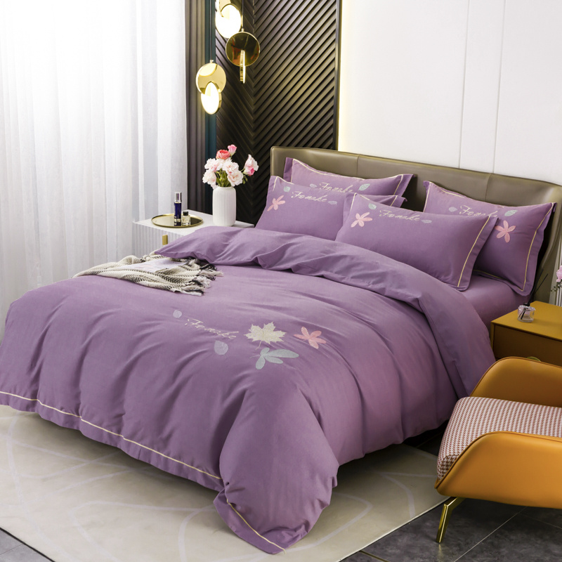 商品名称:优姿家纺 2022新款全棉磨毛绣花四件套 枫叶-豆沙紫