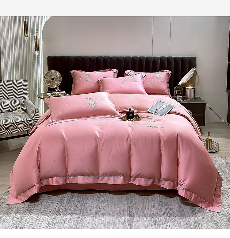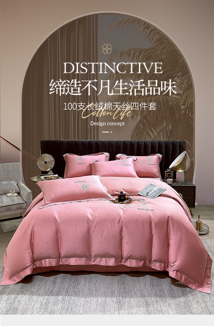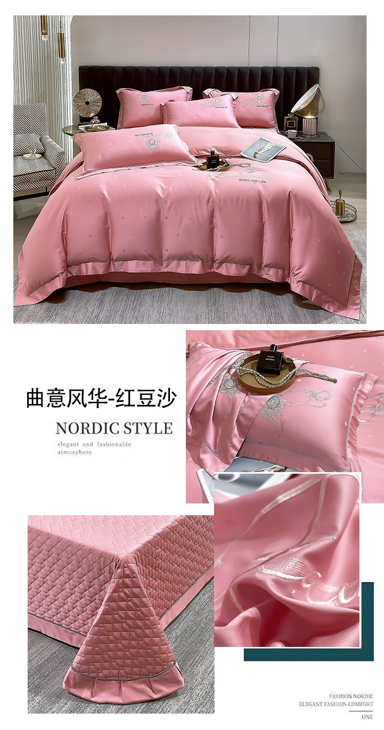 商品名称:小时代2022款100支长绒棉天丝床盖四件套曲意风华 红豆沙
