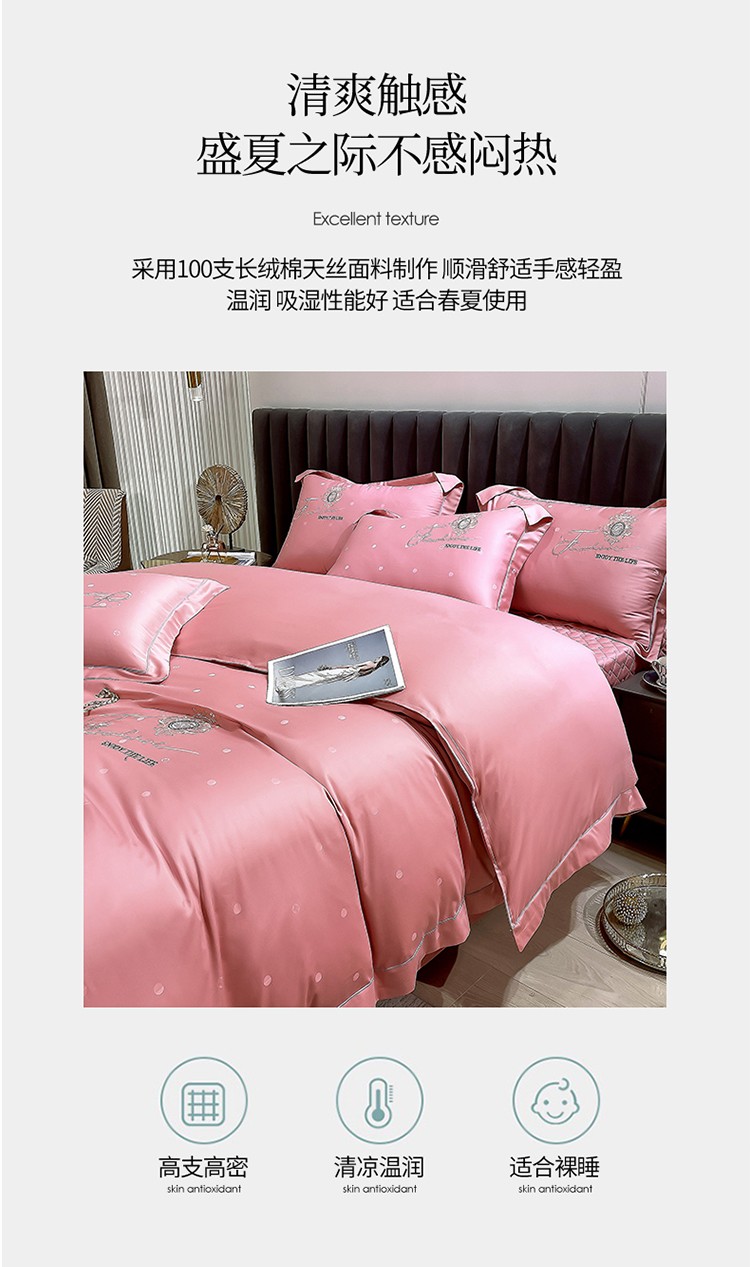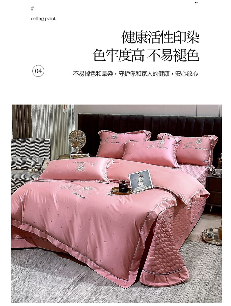 (总)小时代家纺 2025全棉活性喷气简约轻奢刺绣夹棉床盖款四件套-雅韵,雅韵-橙色,雅韵-灰兰,雅韵-青绿,雅韵-香槟,雅韵-胭粉,雅韵-紫色