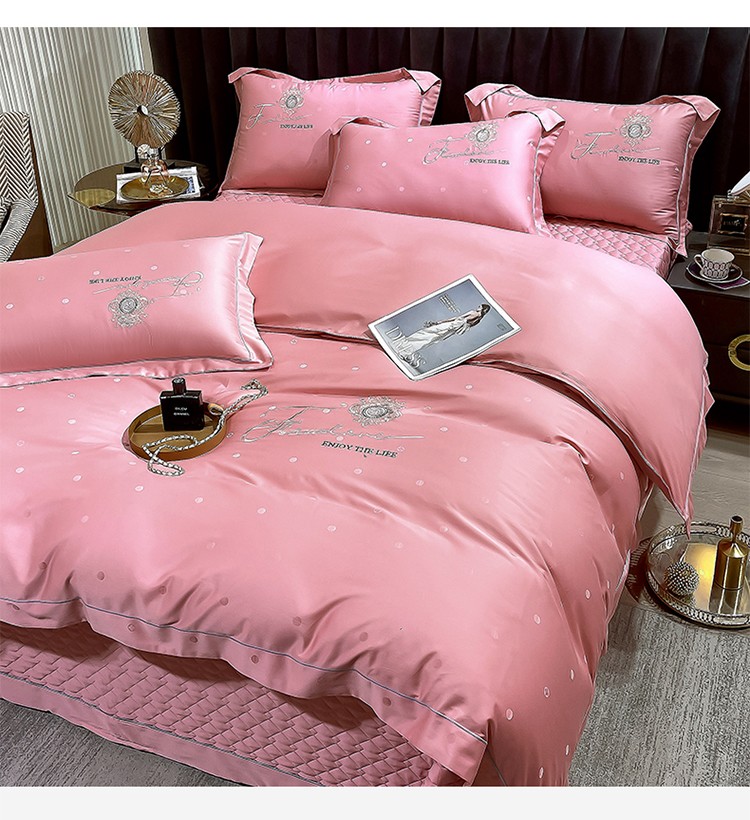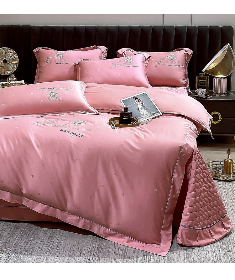 小时代2022款100支长绒棉天丝床盖四件套曲意风华 红豆沙