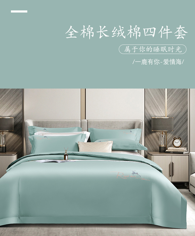 商品名称:芊寻家居 2024新款全棉长绒棉四件套 一鹿有你-爱情海