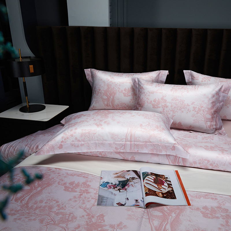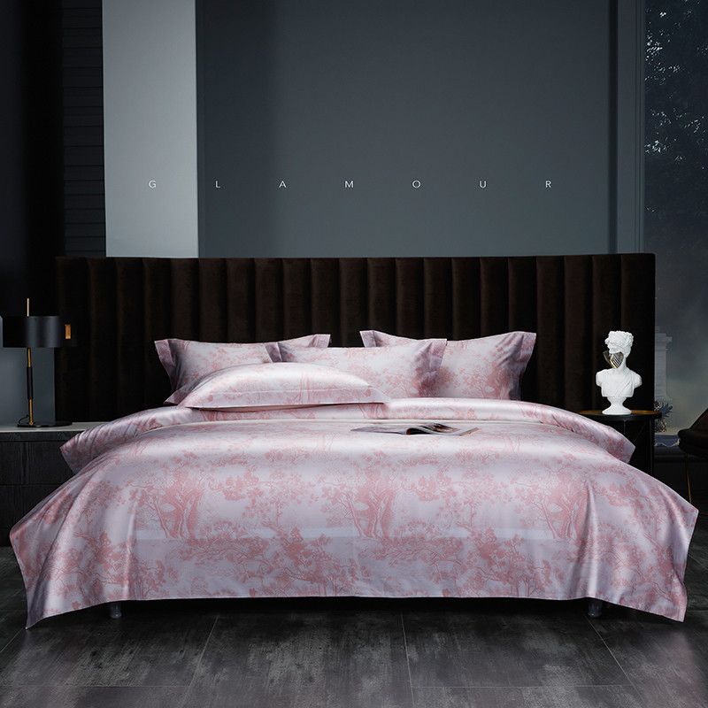 商品名称:缔缦 2022新款高端100s长绒棉数码印花系列四件套 图兰朵粉
