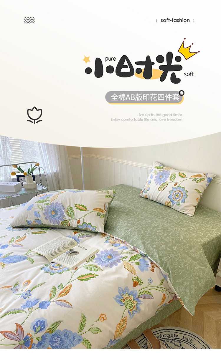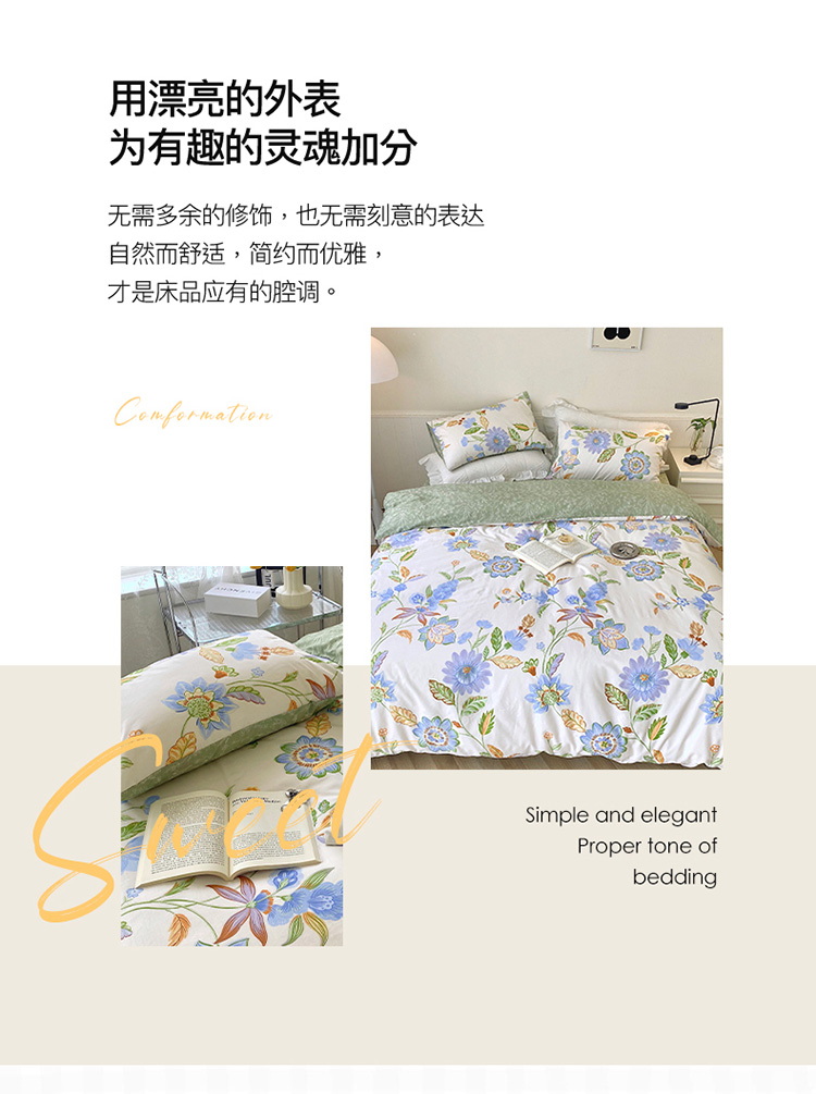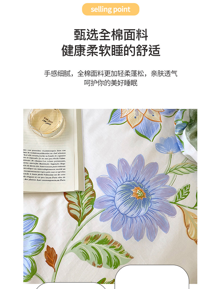 商品名称:卡巴伦 2023新款全棉花漾系列四件套 香雪兰