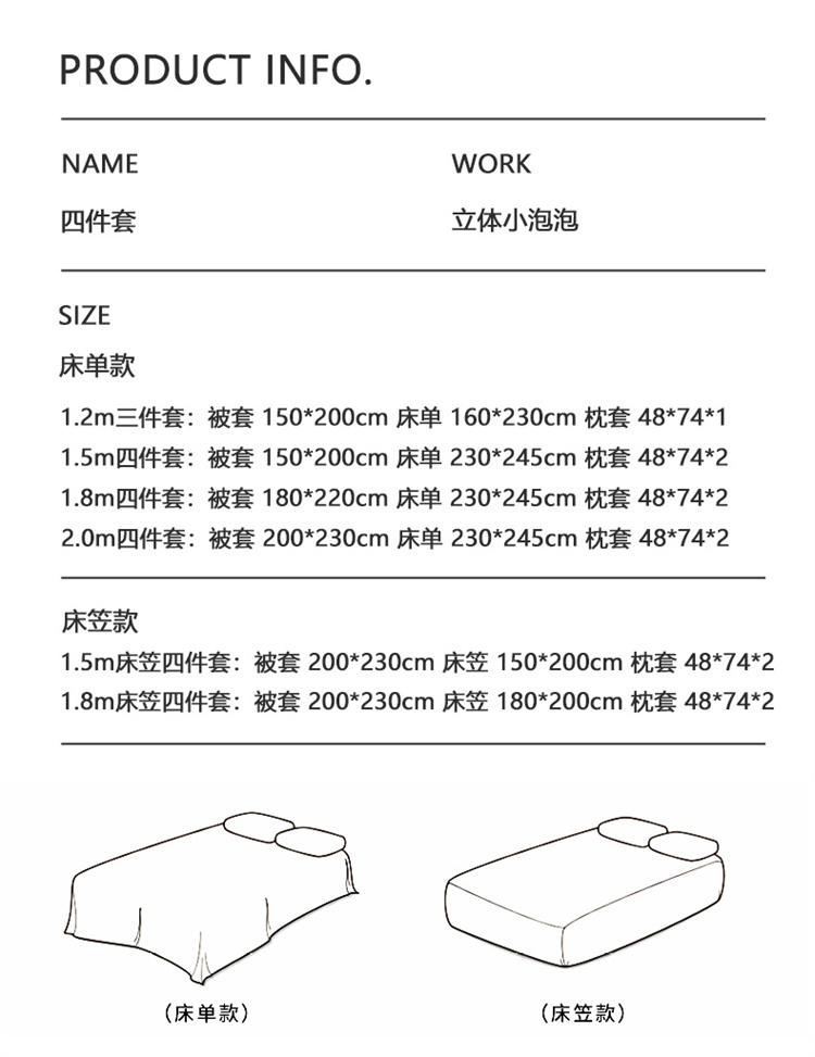 商品名称:(总)曼谷 新款泡泡四件套博主同款立体小泡芙四件套