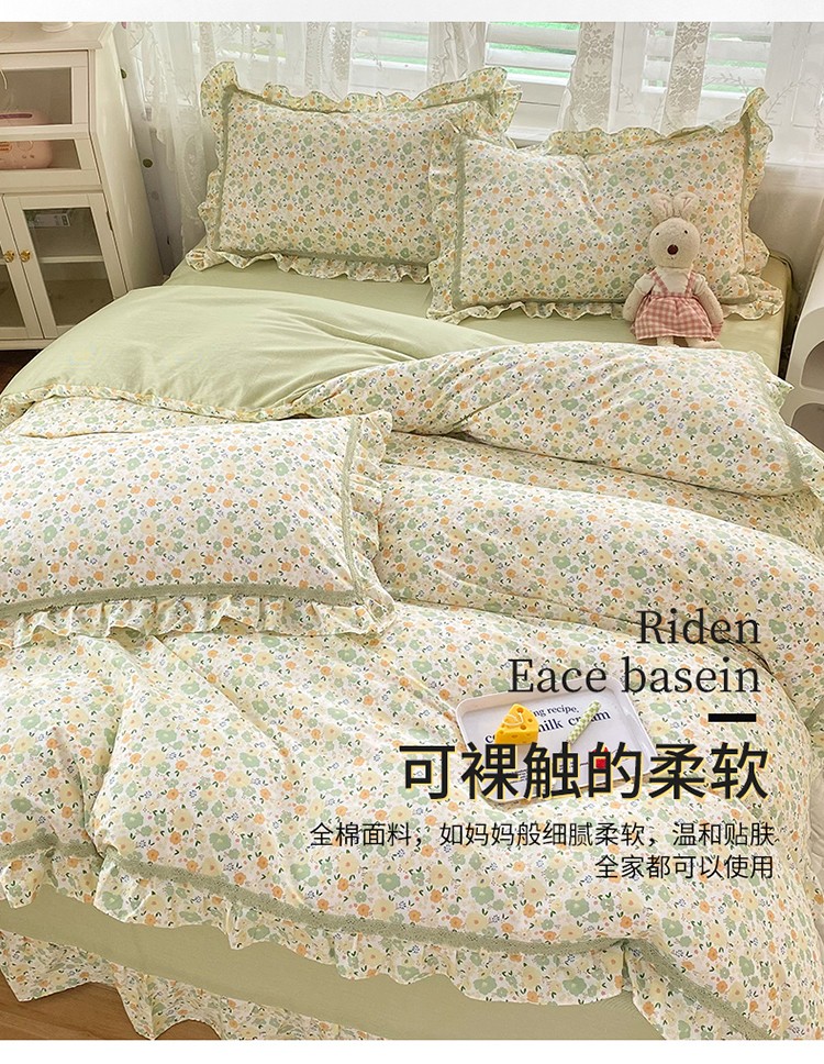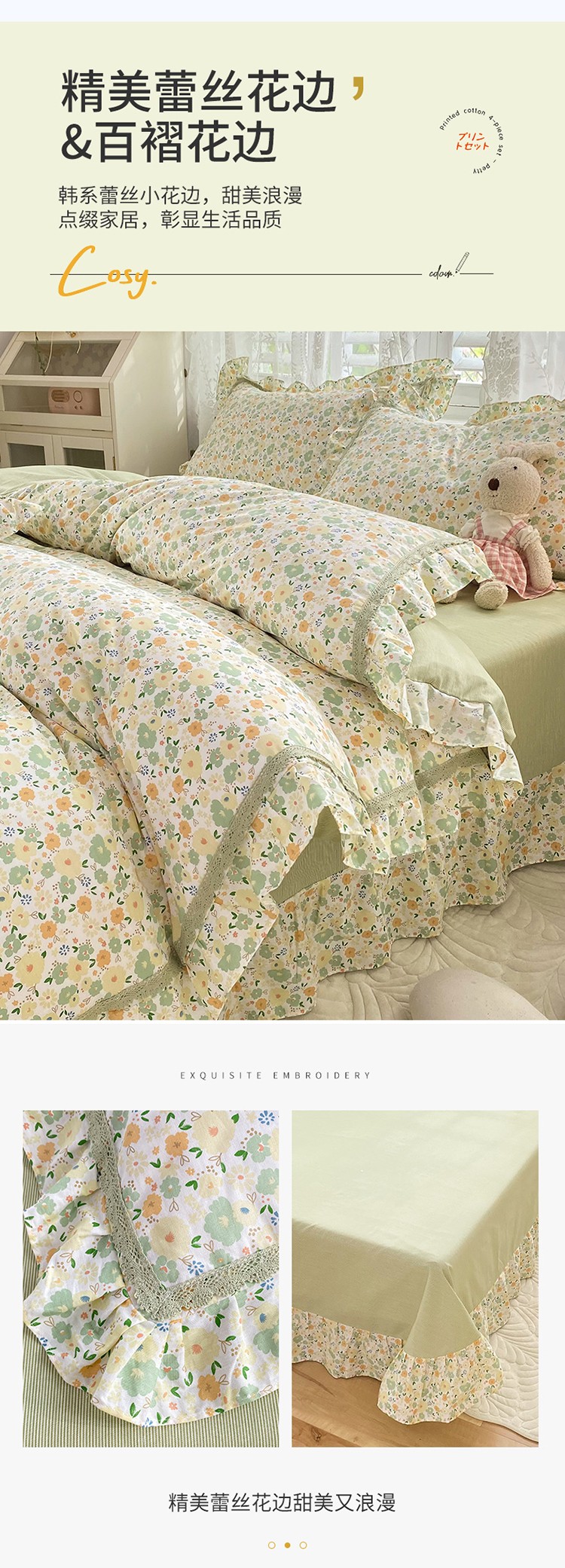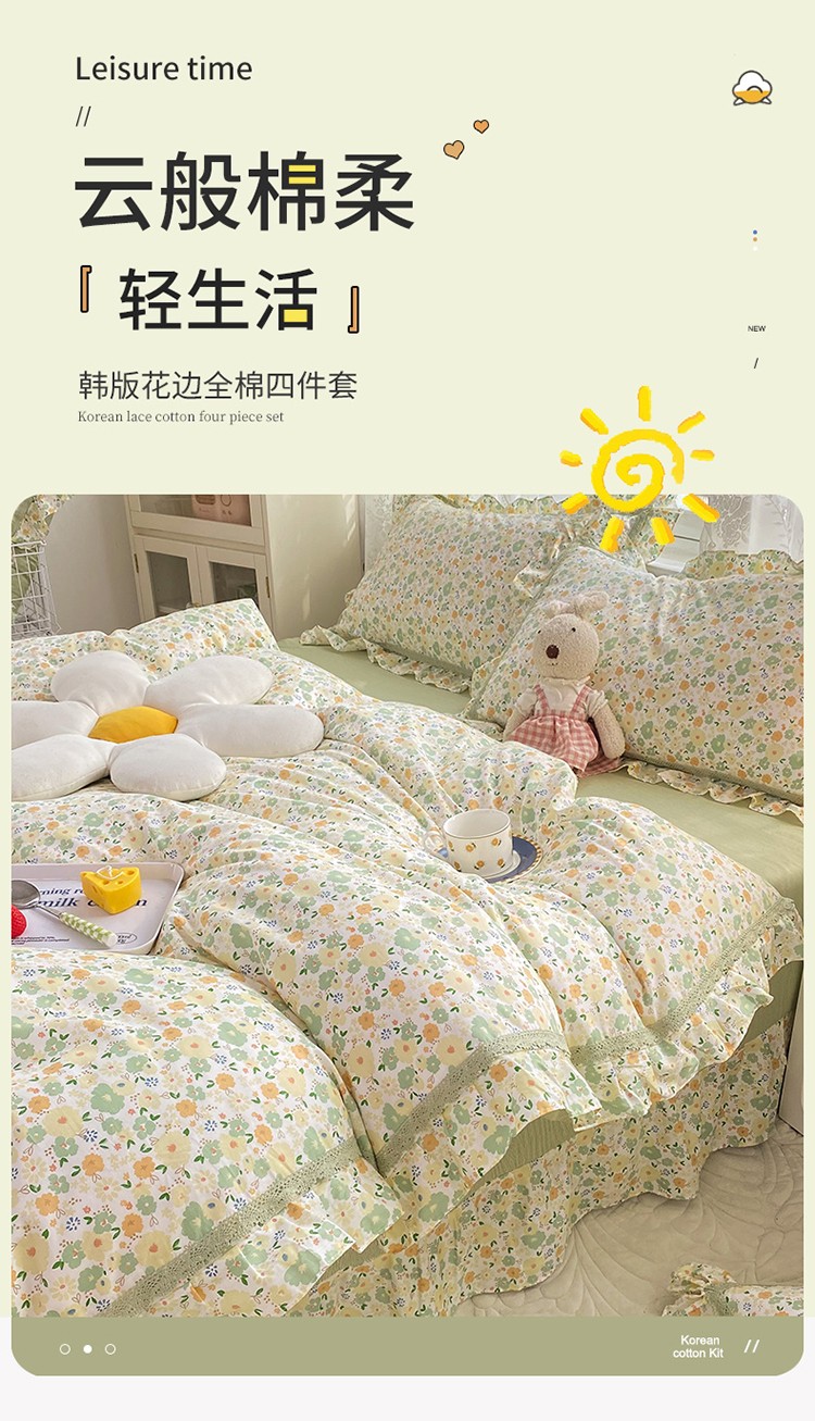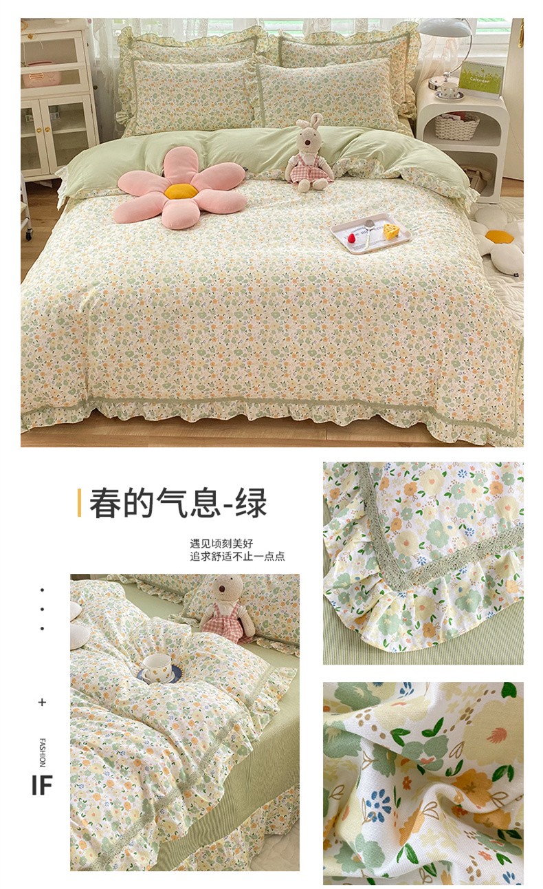 商品名称:艾唯希 2024新款法式花边全棉四件套 春的气息-绿