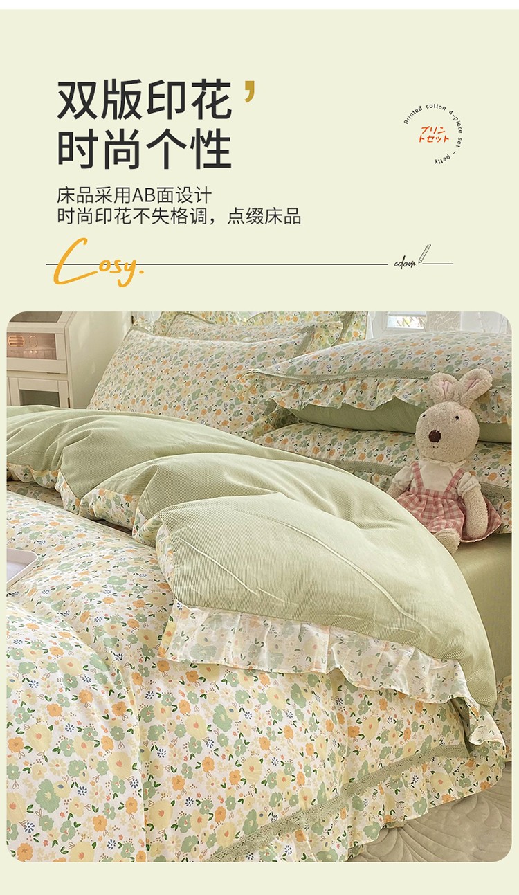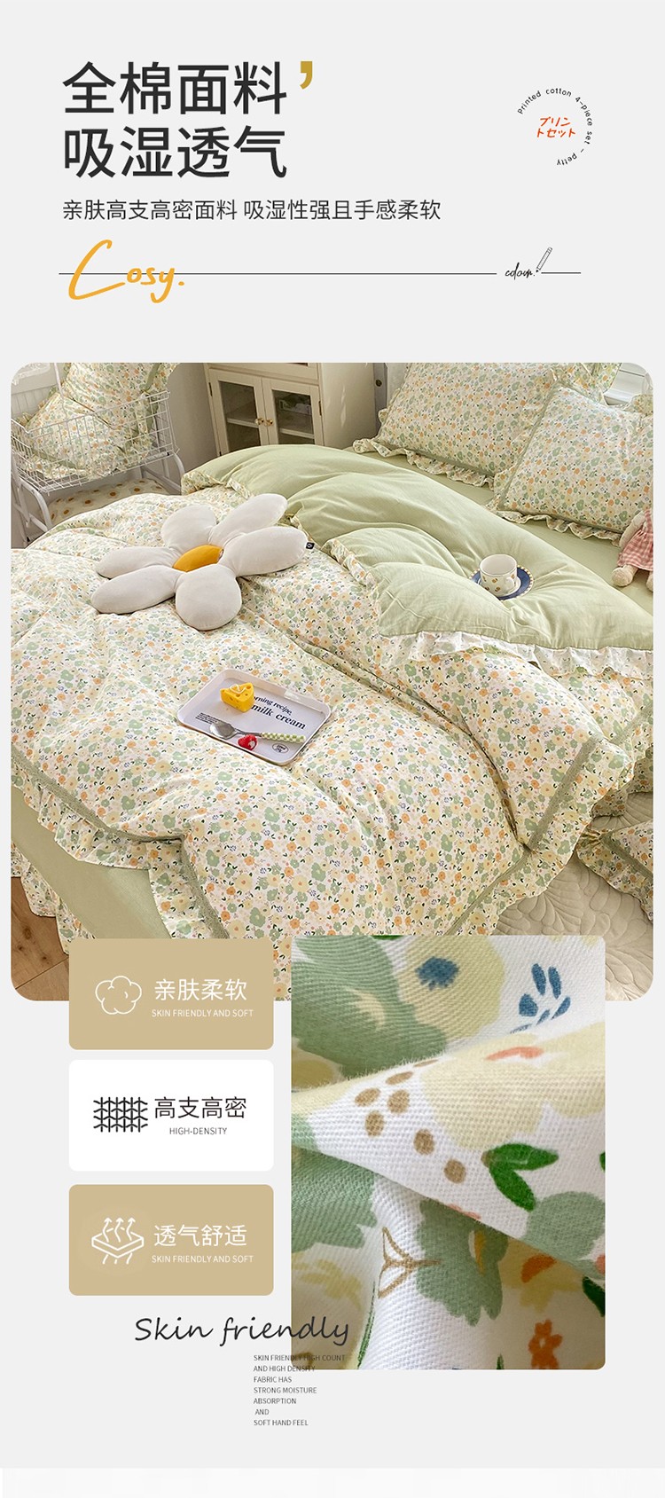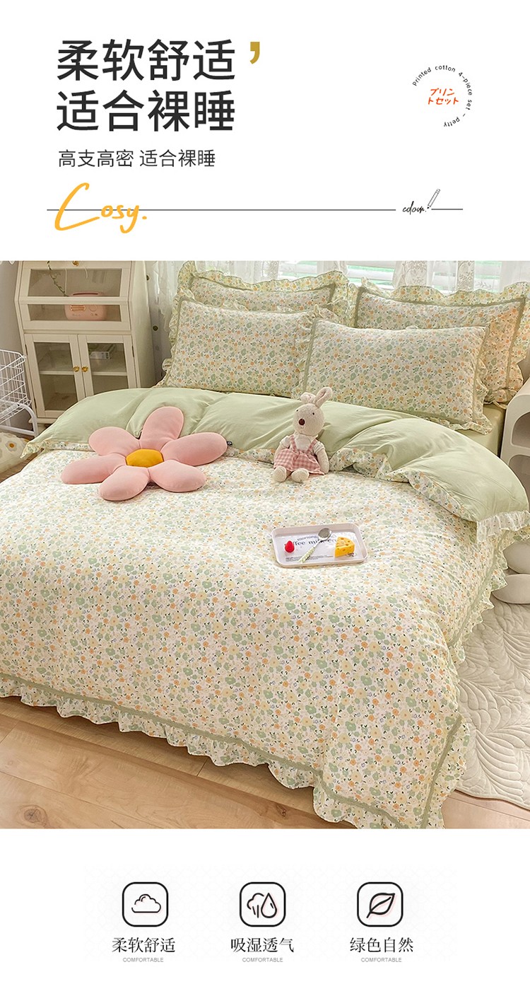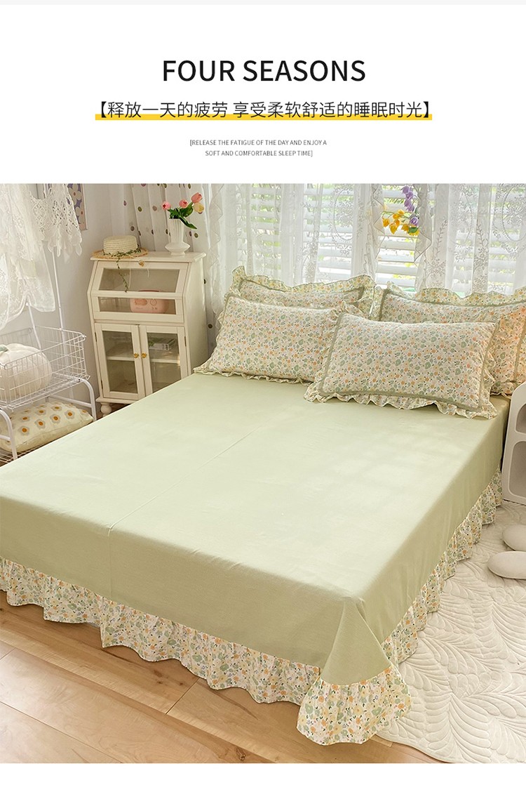 商品名称:艾唯希 2024新款法式花边全棉四件套 春的气息-绿