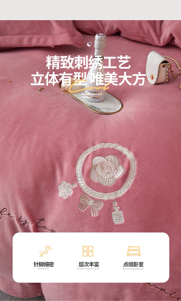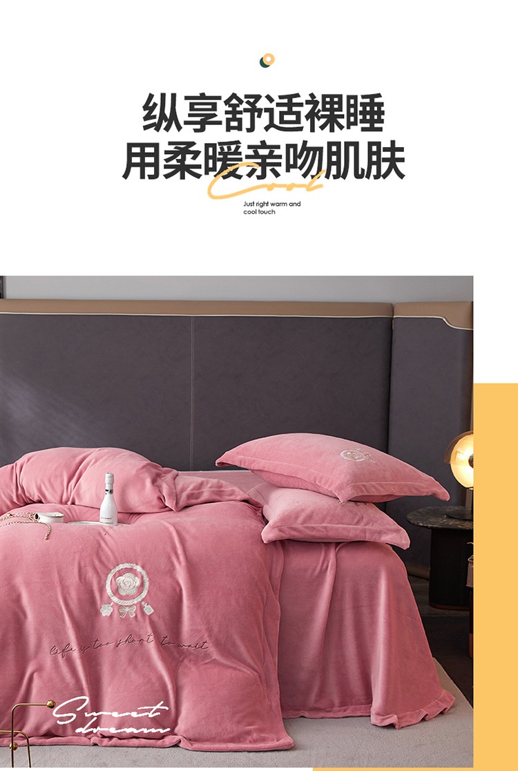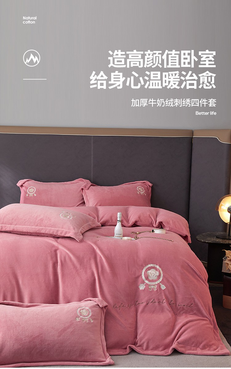 (总)名品优仓 2025新款220克牛奶绒绣花四件套-珊瑚,珊瑚-宝石蓝,珊瑚-粉色,珊瑚-姜黄,珊瑚-米杏,珊瑚-沫粉,珊瑚-杏粉