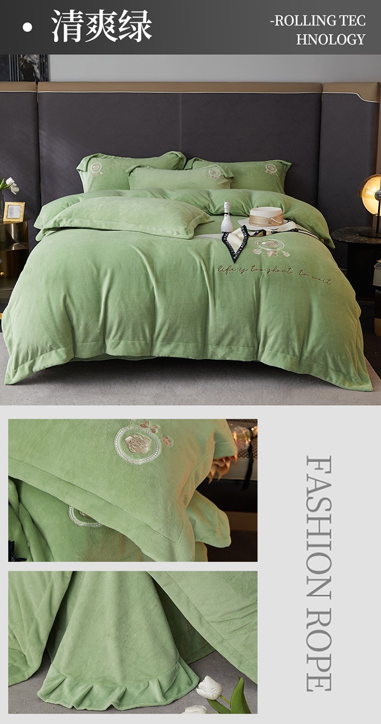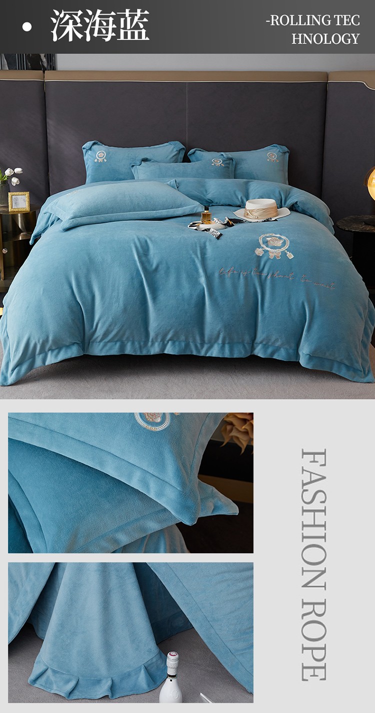 (总)名品优仓 2022新款200g牛奶绒刺绣四件套-唯美