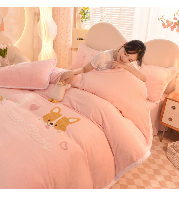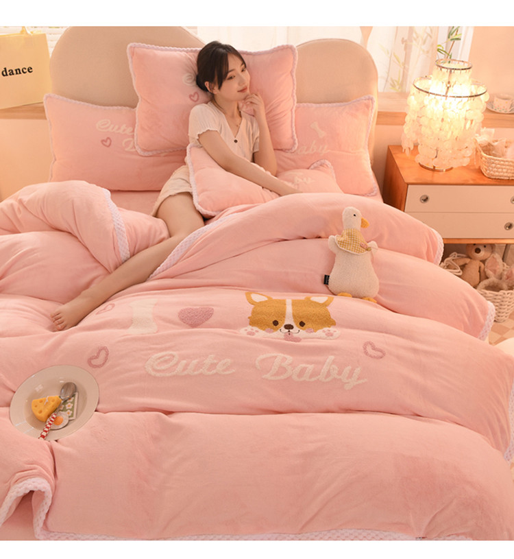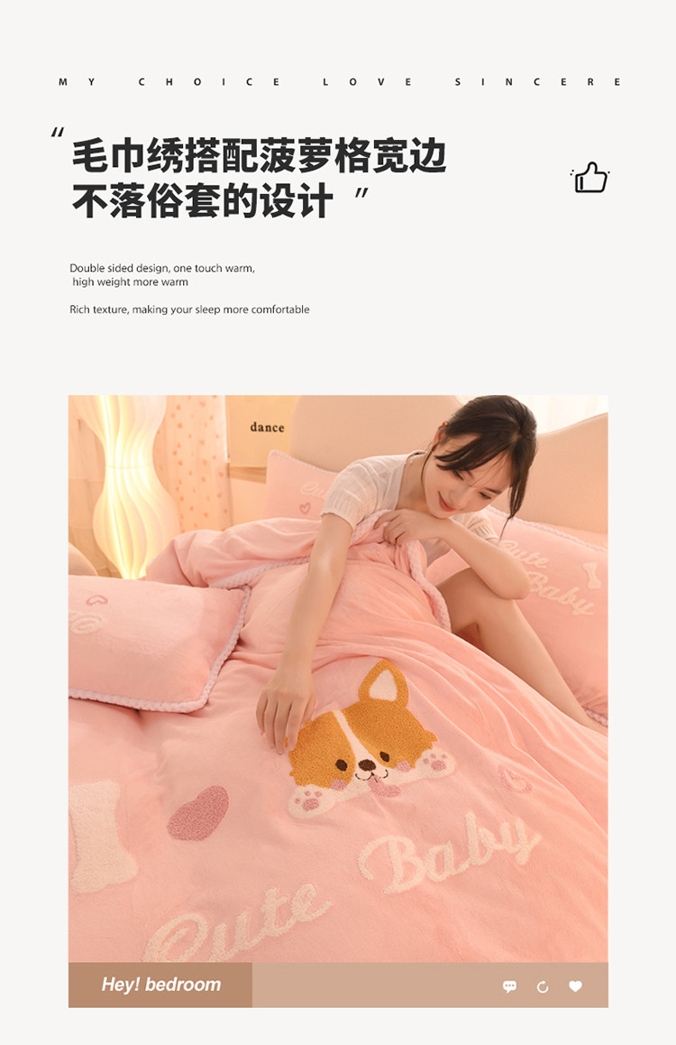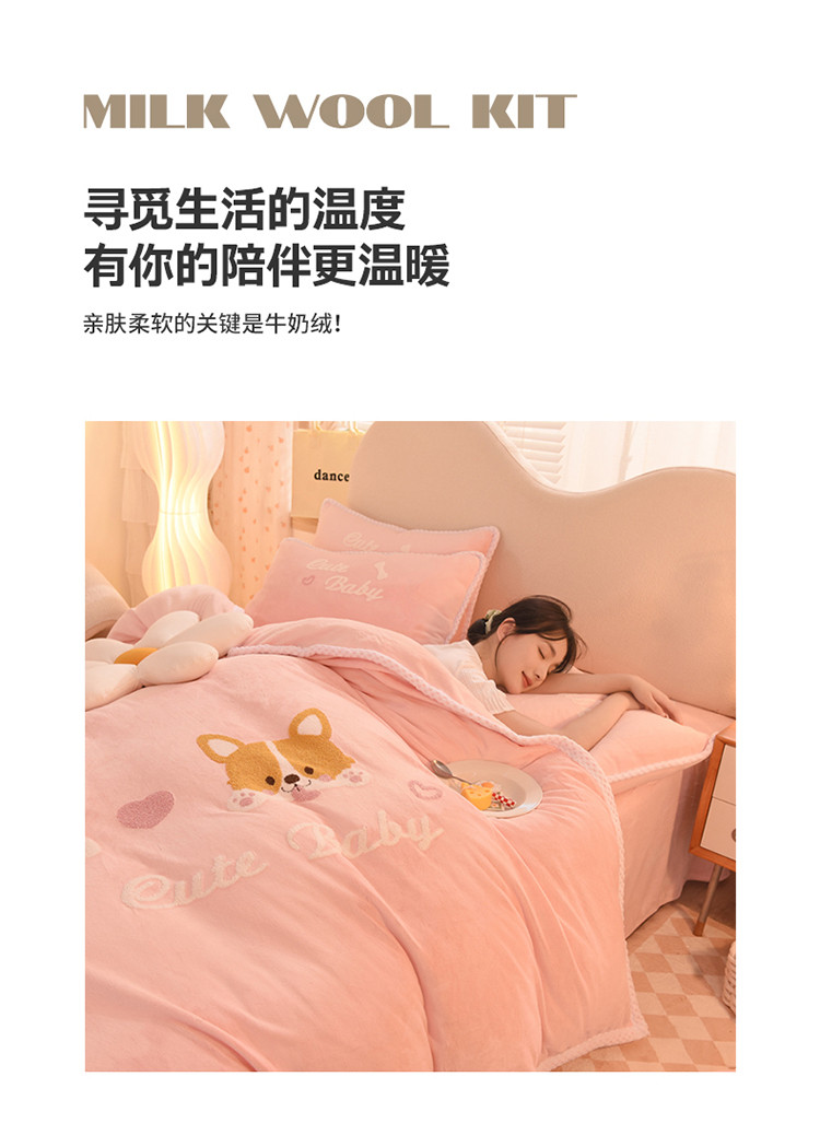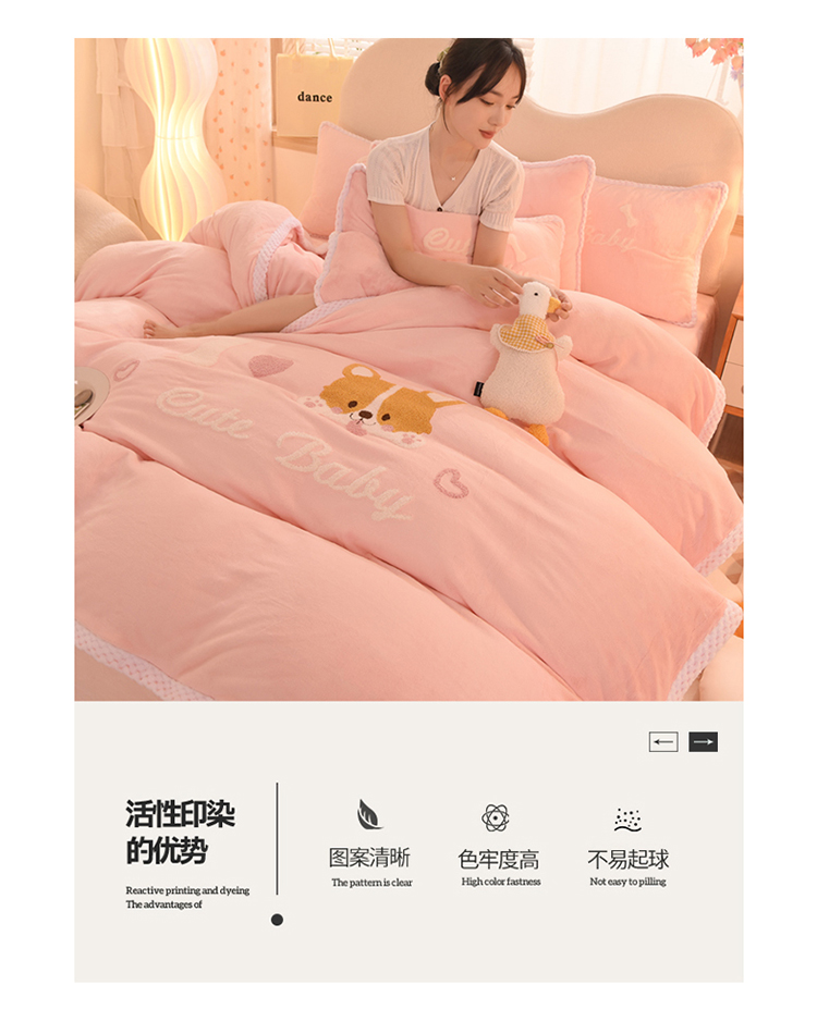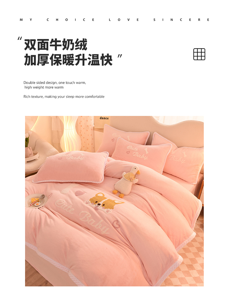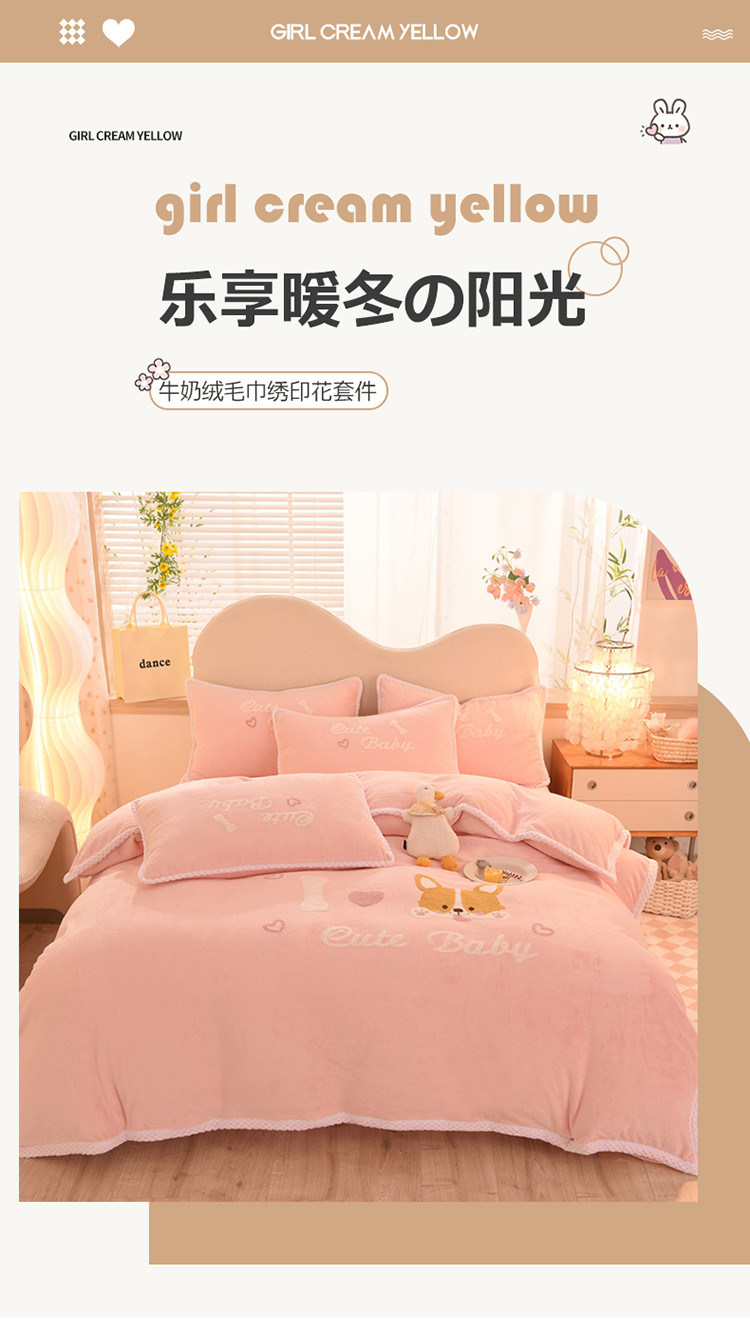 当前位置: 91家纺网 > 商品网购 > 床品套件 > 四件套 > 牛奶绒四件套 > 菲儿 2022新款毛巾绣牛奶绒四件套 旺仔-粉玉