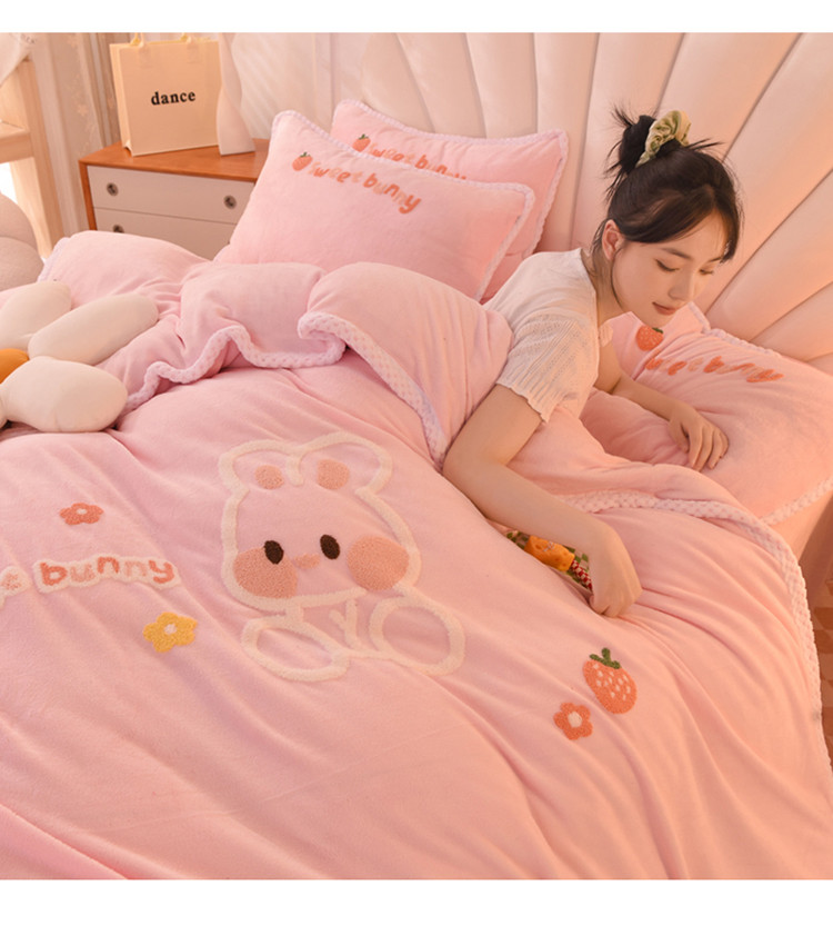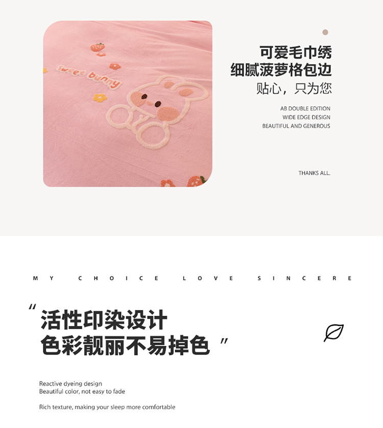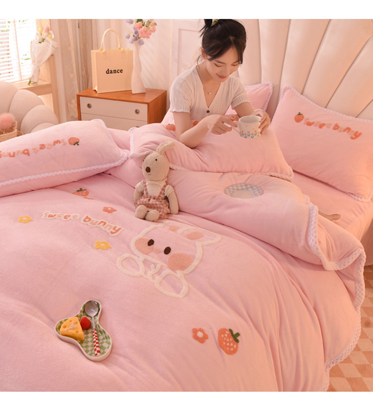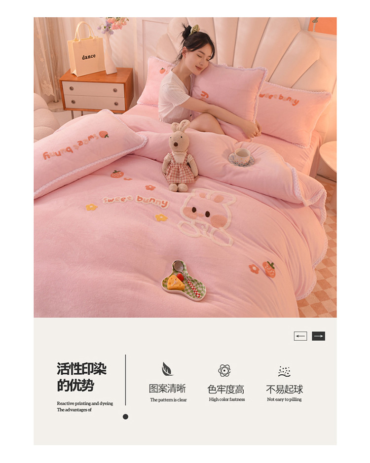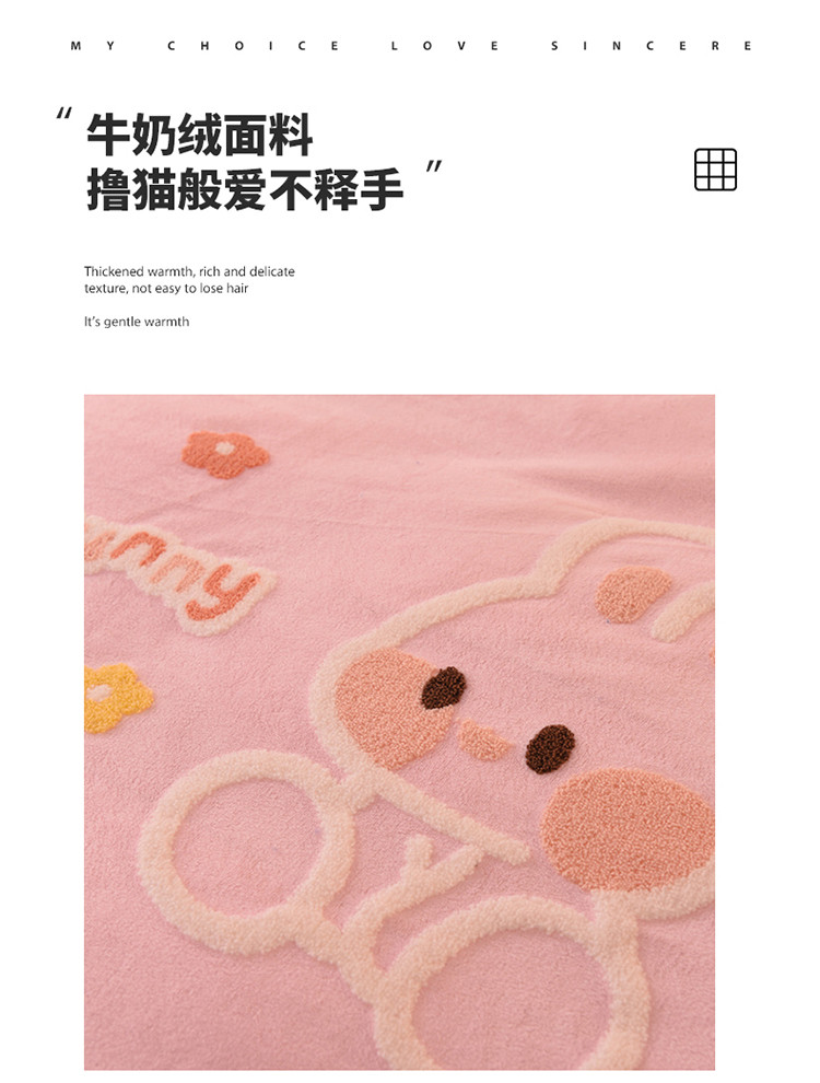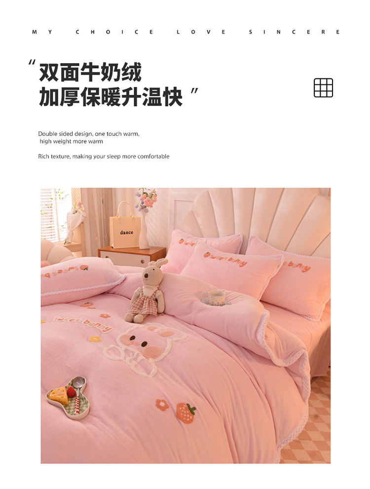 当前位置: 91家纺网 > 商品网购 > 床品套件 > 四件套 > 牛奶绒四件套 > 菲儿 2022新款毛巾绣牛奶绒四件套 甜蜜小兔-仙女粉