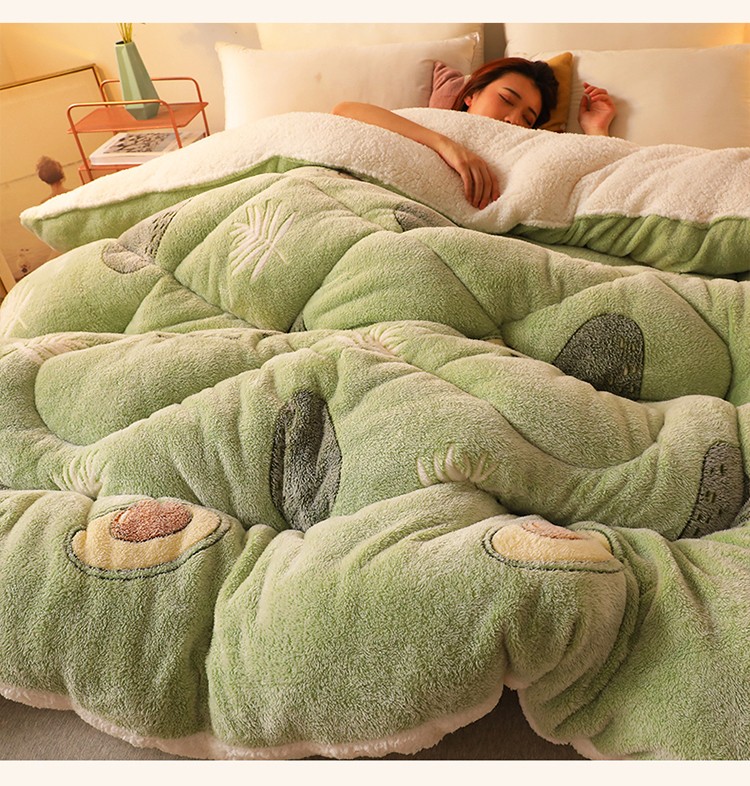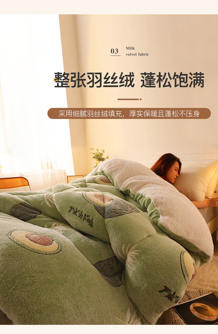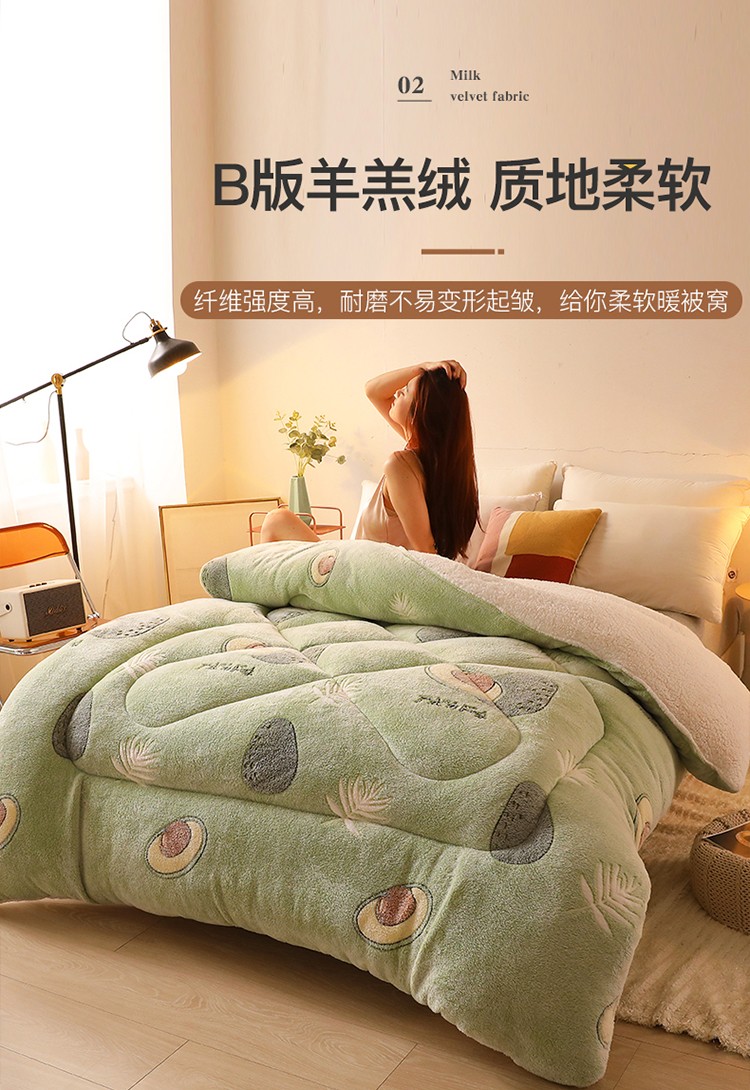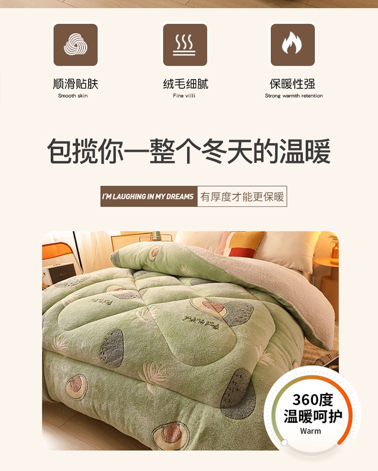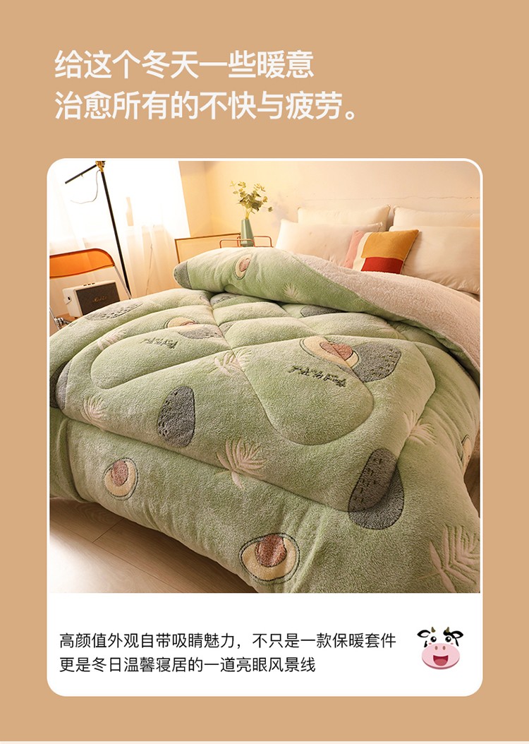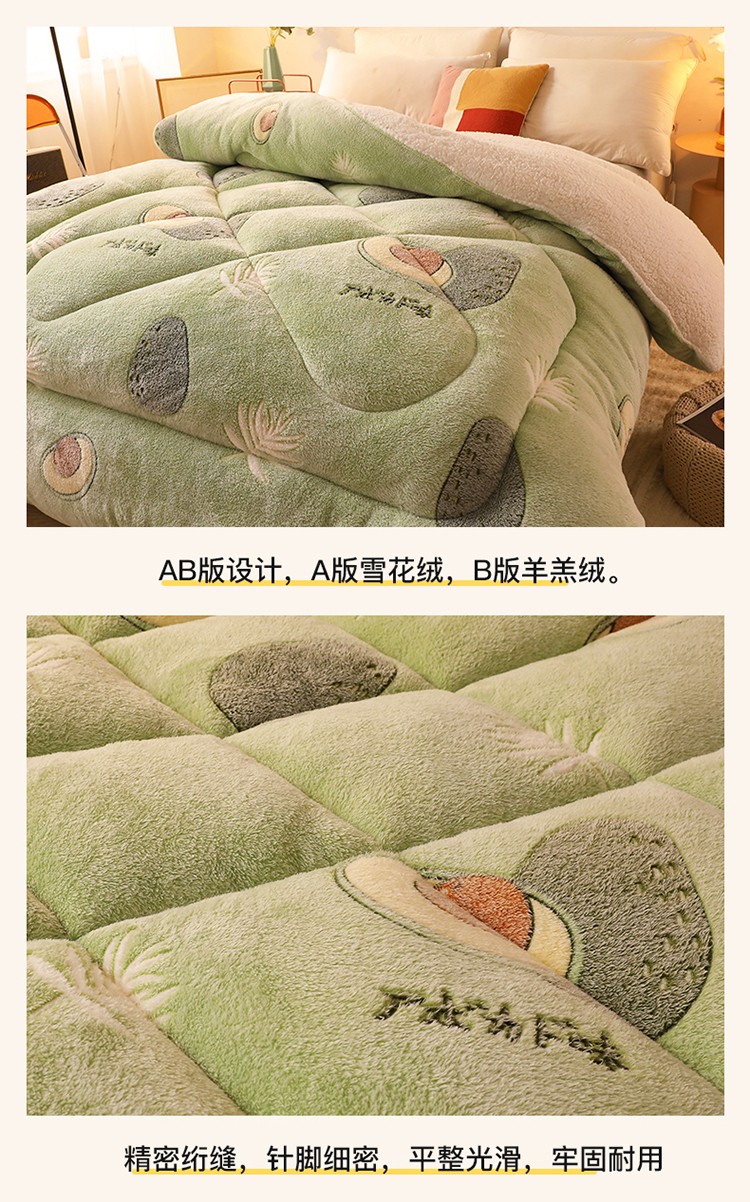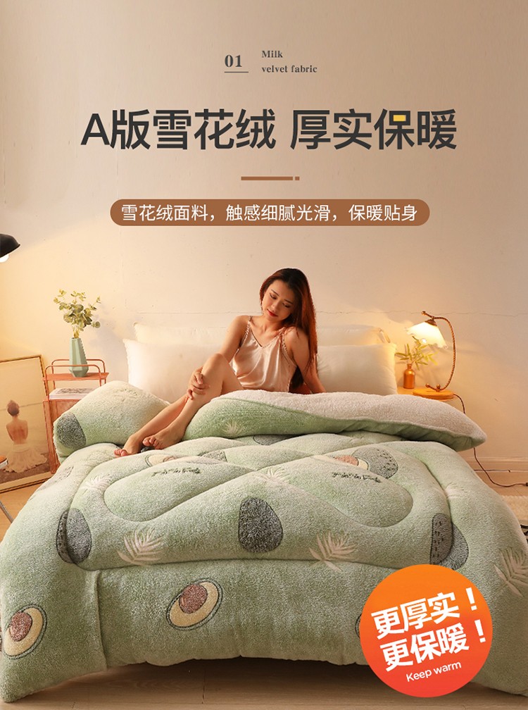 商品名称:梦初语 2022新款加厚保暖雪花绒加羊羔绒冬被 牛油果
