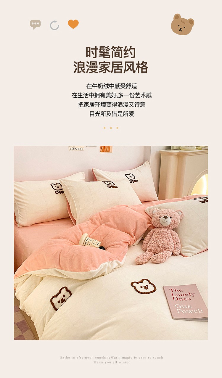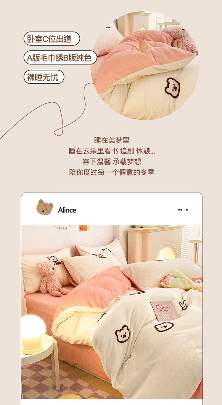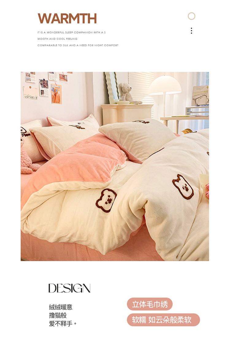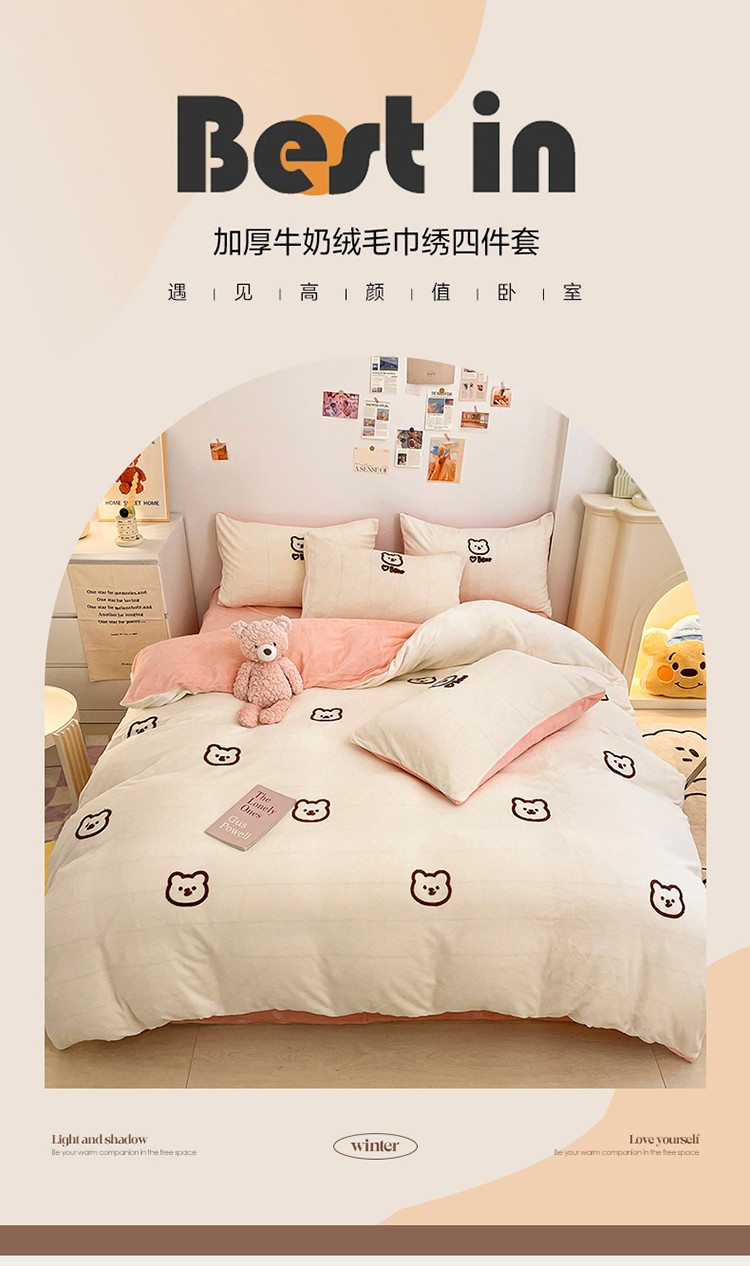(总)雅居坊2022新款毛巾绣小熊 牛奶绒四件套系列