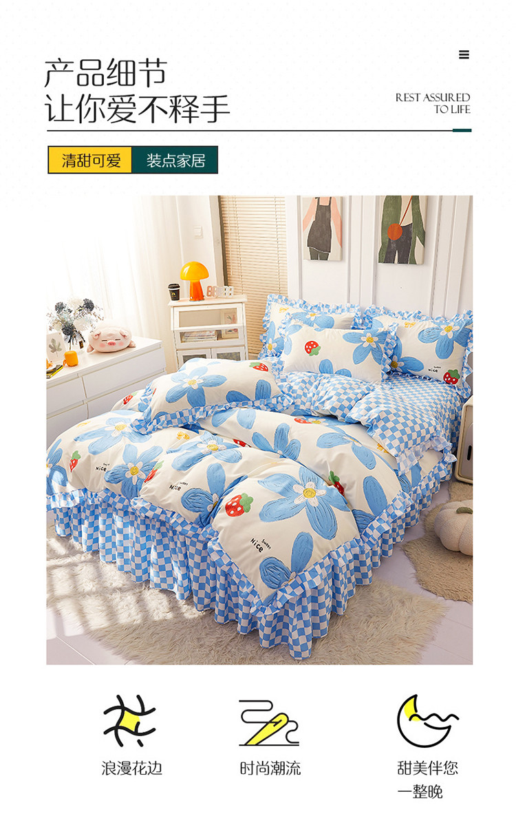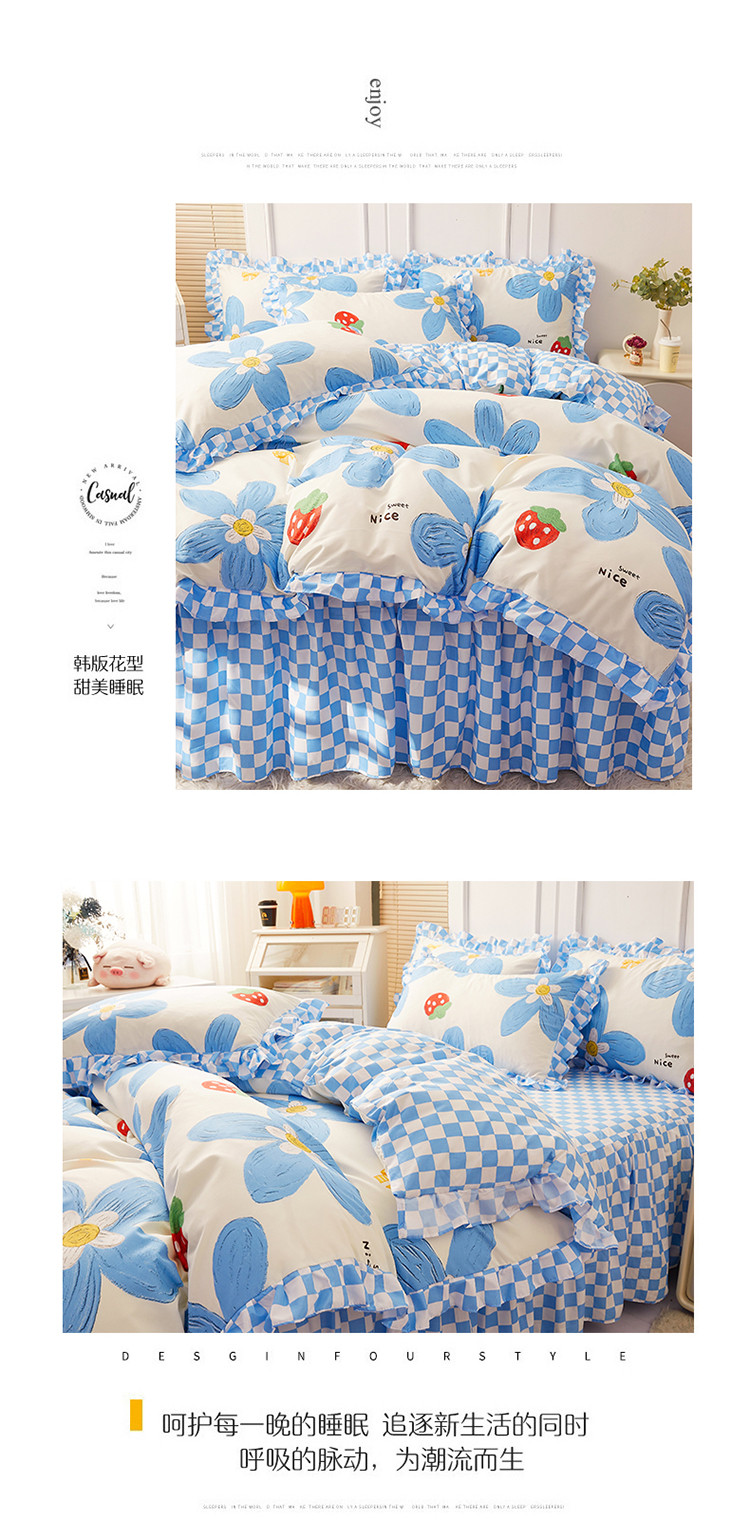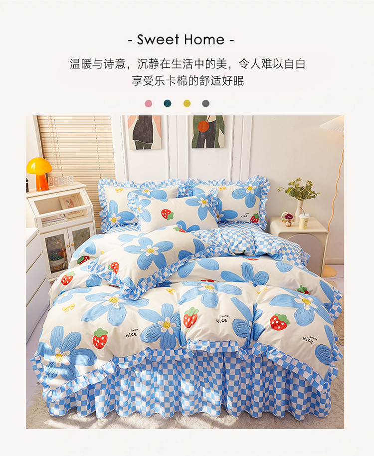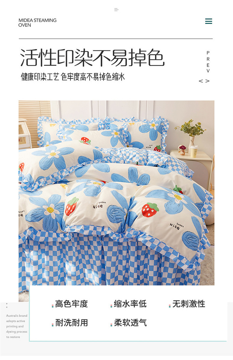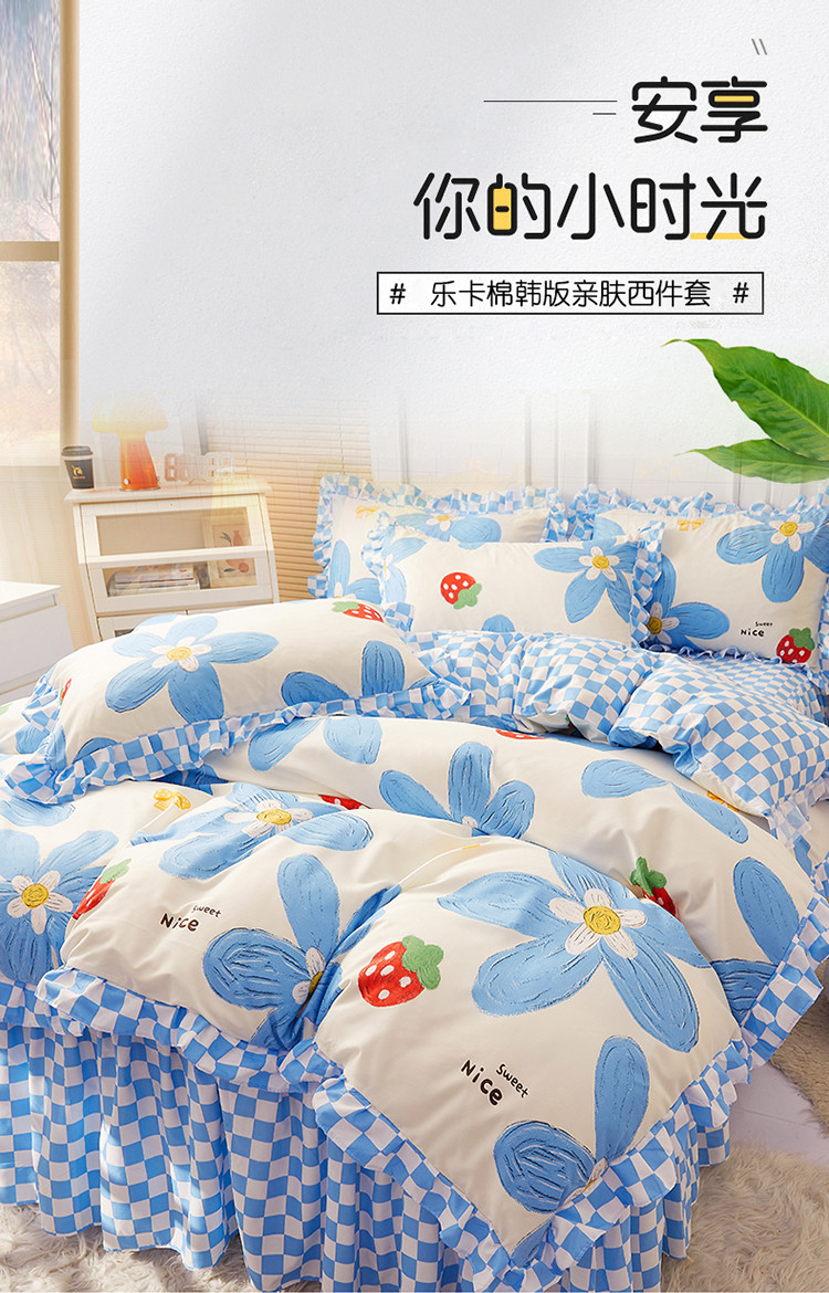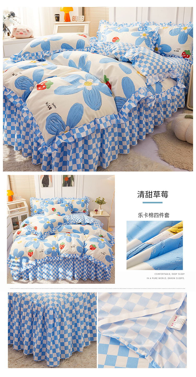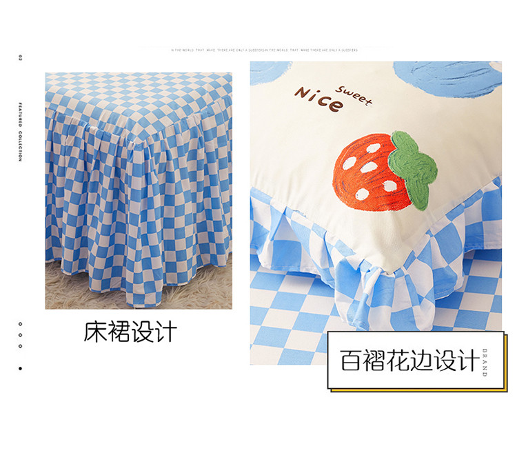 当前位置: 91家纺网 > 商品网购 > 床品套件 > 四件套 > 化纤普通四件套 > 艾裙海床笠 2025新款乐卡棉亲肤韩版小清新四件套 清甜草莓