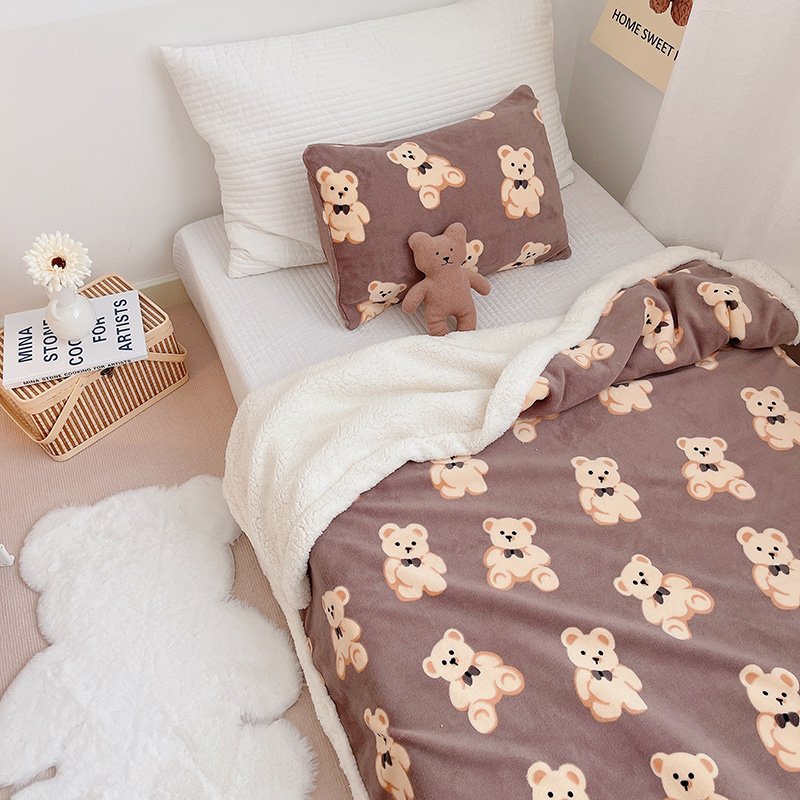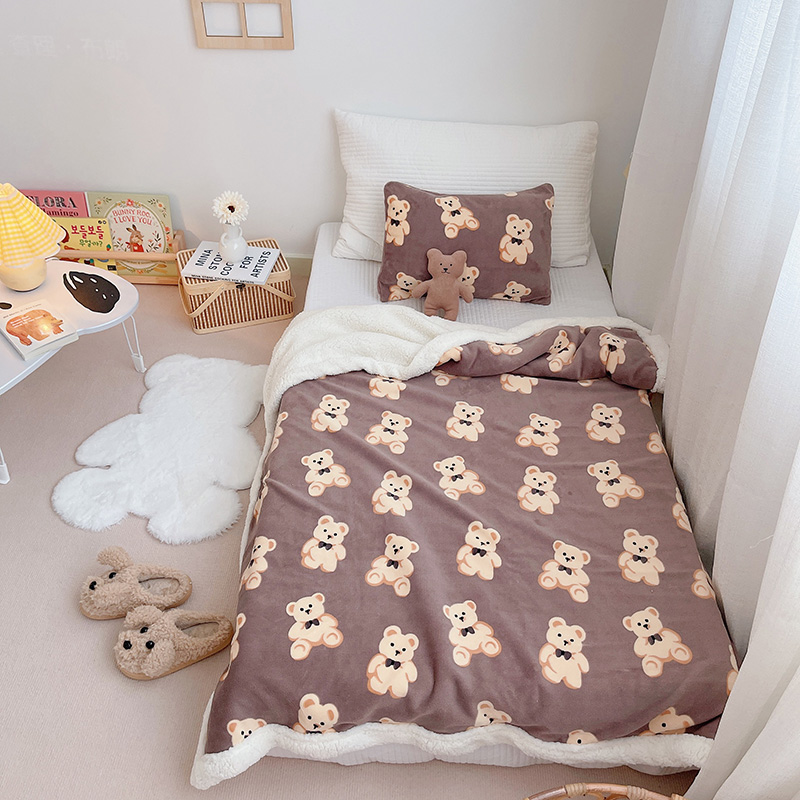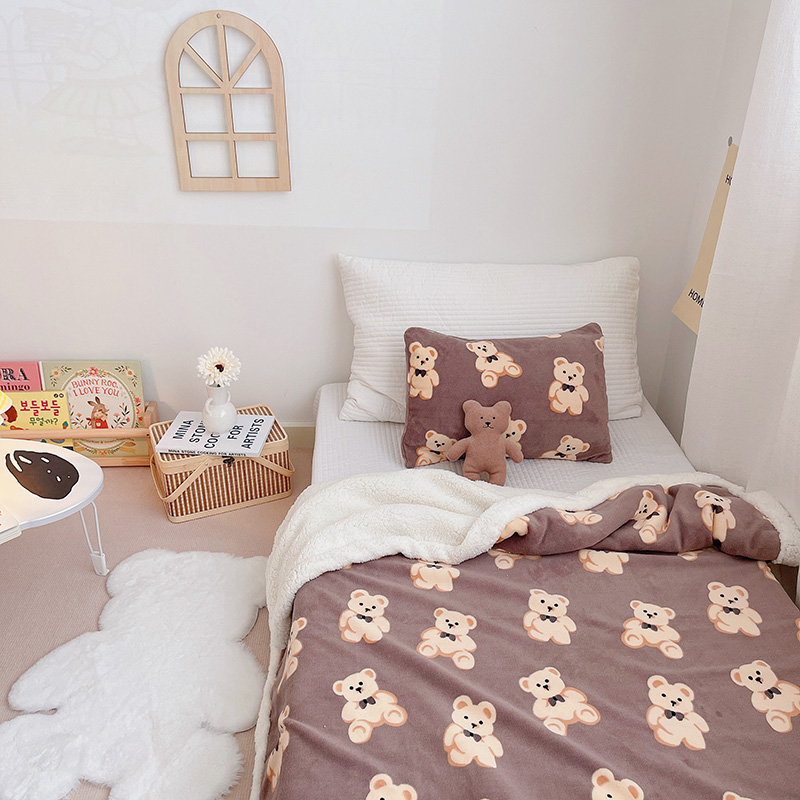 航途席业 20263新款软绵绵牛奶绒羊羔绒毛毯 韩国熊咖