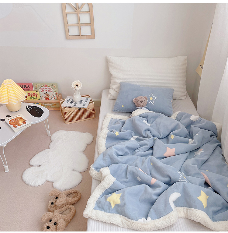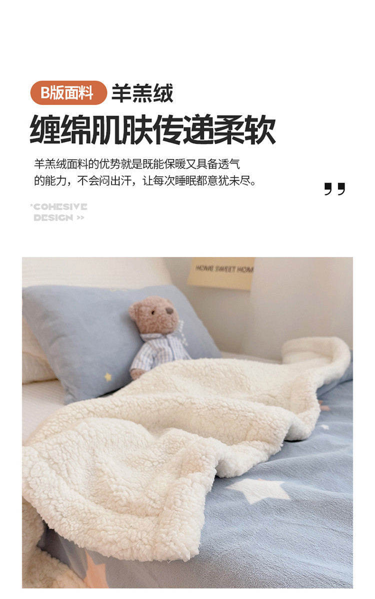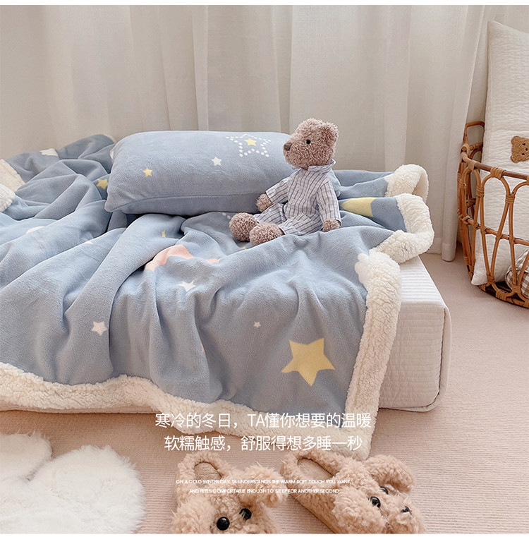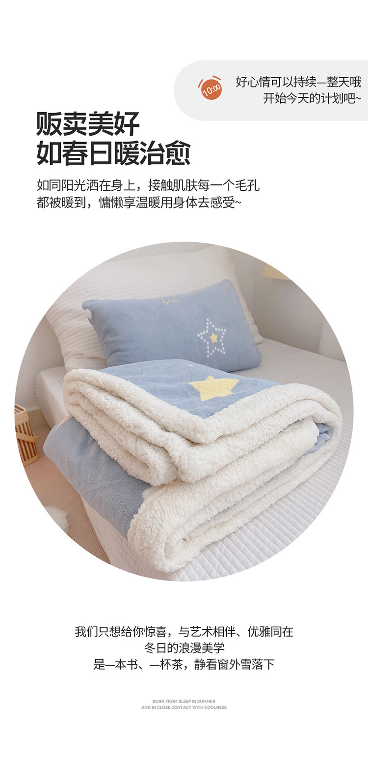 商品名称:航途席业 2023新款软绵绵牛奶绒羊羔绒毛毯 星月蓝