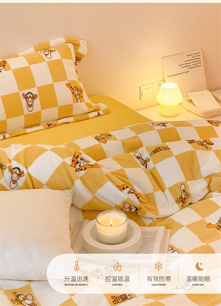 总时光里 230g正宗全消光印花牛奶绒迪士尼棋盘格系列单被套
