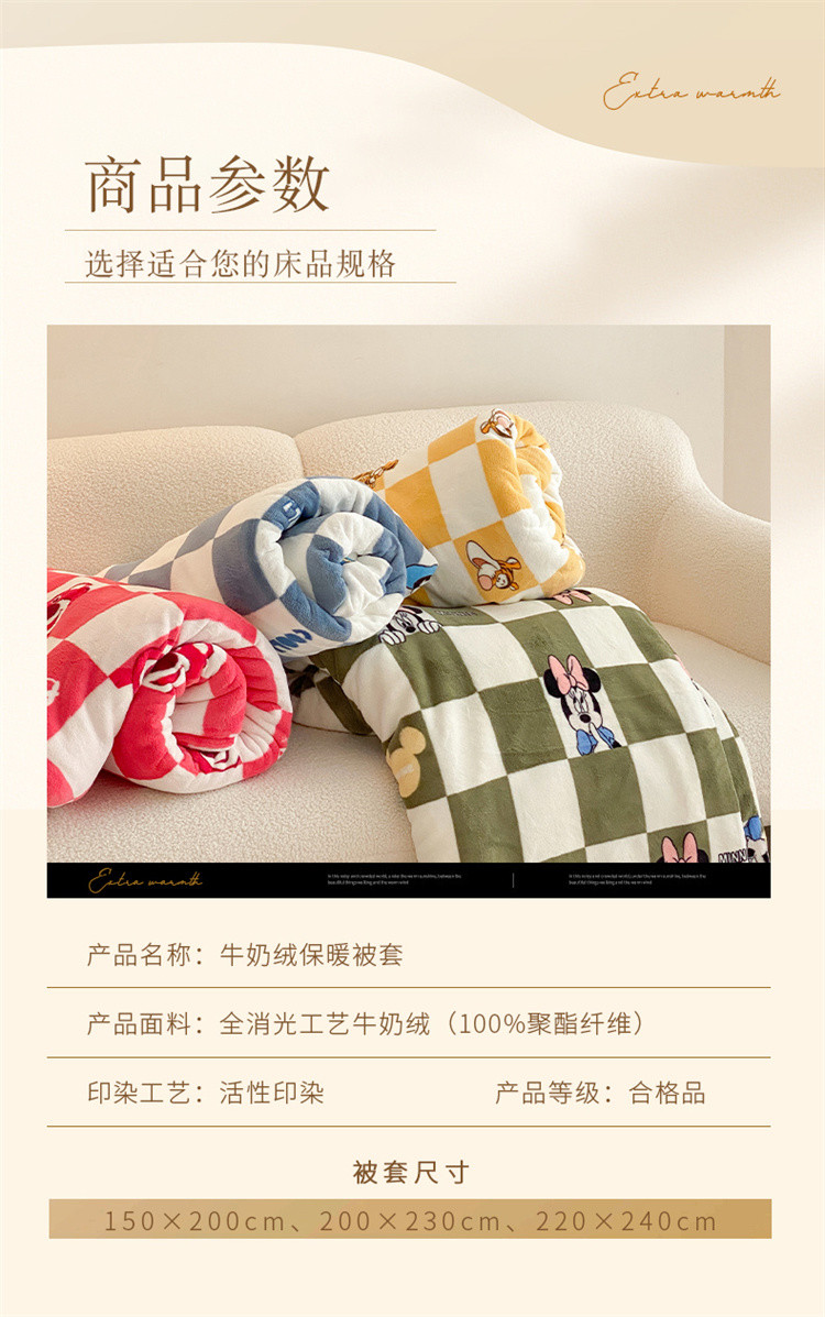 商品名称:总时光里 230g正宗全消光印花牛奶绒迪士尼棋盘格系列单被套