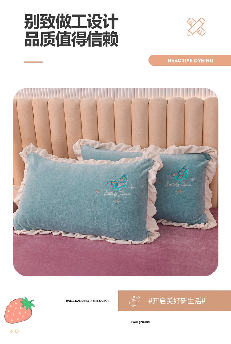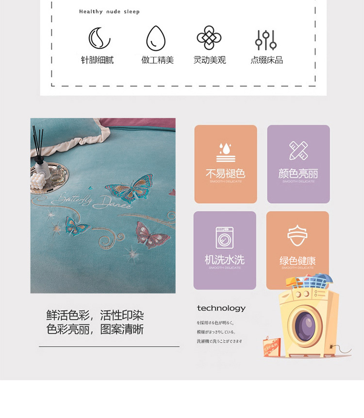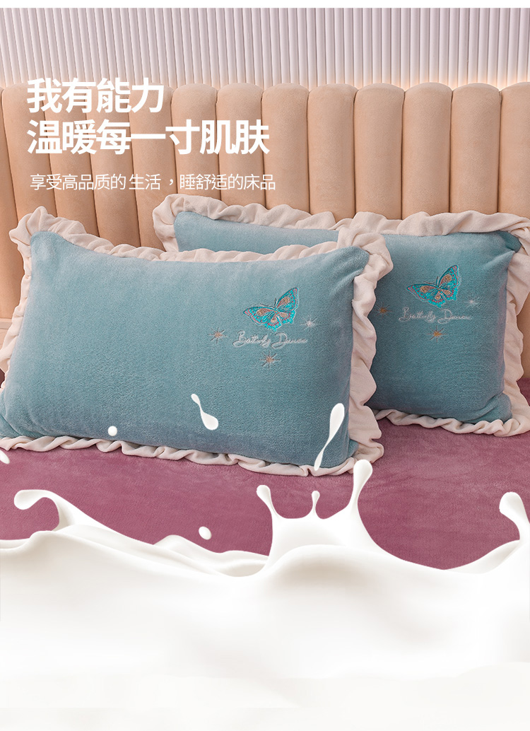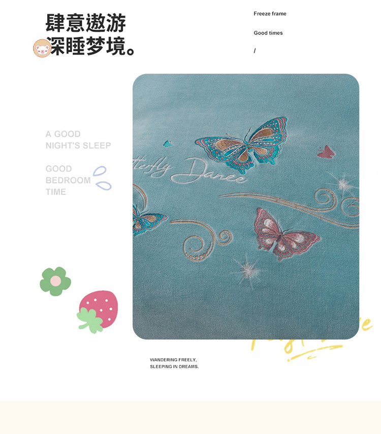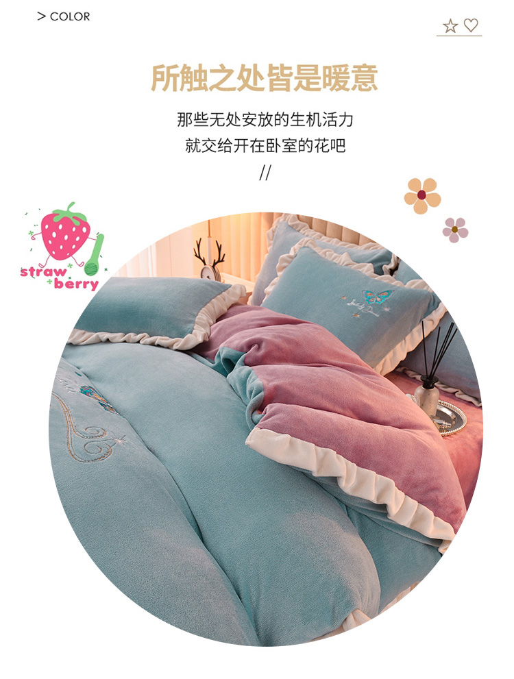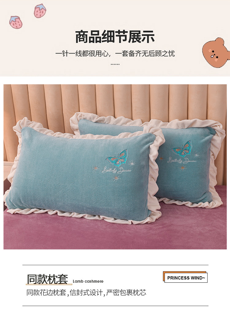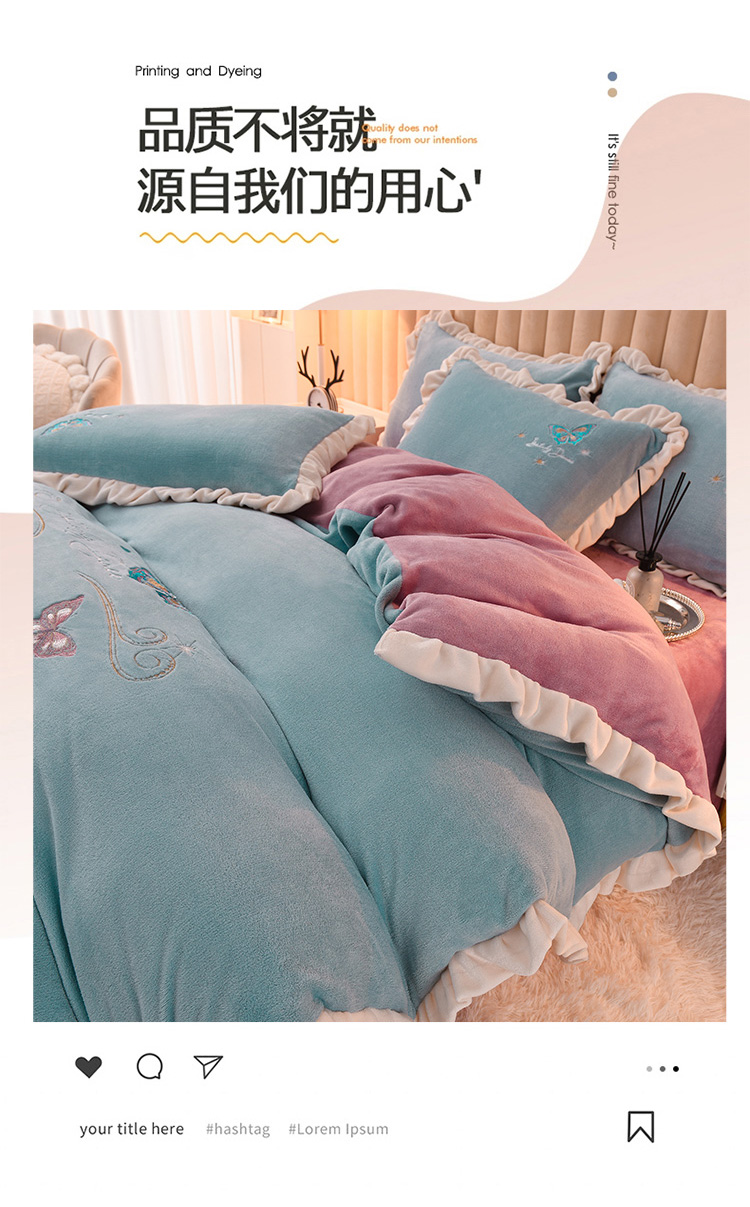 商品名称:芃成 2022新款加厚保暖牛奶绒绣花四件套 蝶舞 湖兰
